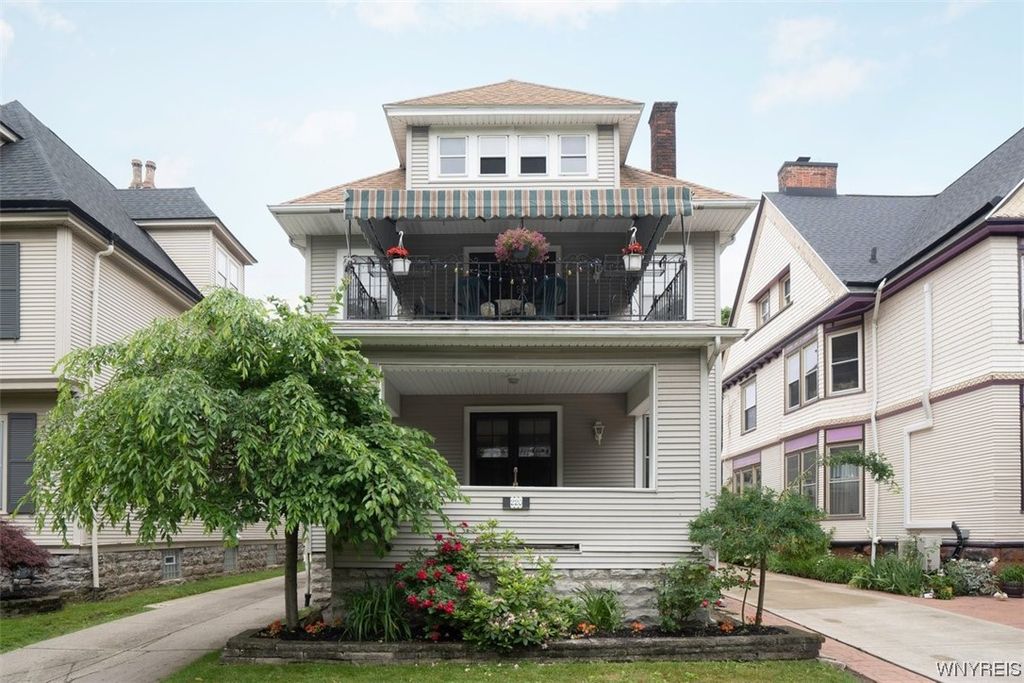 Wonderful two unit in the heart of Elmwood Village with 3 car garage! Each unit has three bedrooms, one bath, large living room with built-in bookcases surrounding decorative fireplace, beautiful dining room, sunny kitchen and bonus room located off bedroom. Enjoy your morning coffee on the lovely front porches. Central air conditioning in both units. Steps to restaurants, coffee shops, shopping and all conveniences. Showings start Saturday, June 24th. Offers, if any, due Wednesday, June 28th at 12PM.