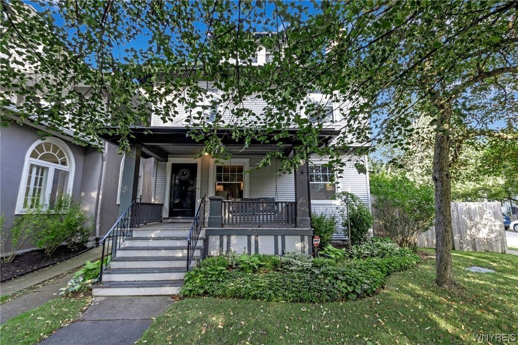 Welcome to 1 Argyle Park. Located a short walk to the Elmwood Village, Bidwell Parkway and Delaware Park, this home offers ease of living and convenience to shopping, restaurants and parks. The traditional first floor welcomes you to a large living and dining room with an open kitchen leading to the massive rear deck and fully fenced yard. Flanking the open second floor landing are four large bedrooms, one with a fireplace currently used as a dressing room. Once on the third floor, you will be once again welcomed by a large landing area directing you to two additional bedrooms and another full bath. Back on the main floor, you will find a convenient flex area/ drop zone with direct access to the multi-level deck via sliding doors making entertaining a breeze! The fully fenced yard leads to the 2 car garage w/ additional parking. Updated mechanicals include complete tear off roof 2022, H/W Tank and central AC 2013.