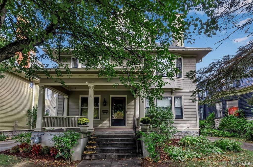 An Elmwood village beauty with magnificent woodwork and amazing architectural design. From the gleaming hardwoods to the gorgeous stained glass, this elegant traditional home needs to be seen. 1st floor showcases a gorgeous foyer, stunning den with leaded glass and built-in bookshelves. The grand liv and din make entertaining a breeze with wonderful windows and a wood burning fireplace. A spectacular sunroom is the perfect place to unwind. Bright white eat-in kitchen is a chef's delight with tons of cabinet and counter space and commercial grade appliances. Pretty powder room completes the 1st floor. 2nd floor boasts 4 large bedrooms and 2 full baths. The primary bedroom has a fabulous fireplace. 3rd floor adds more spectacular space for guests, play area or home office with another 2 nice sized rooms and full bath. Lovely paint colors, butler's pantry and pocket doors. Prime location to shops, schools and dining. I'd like to Welcome you to your home! Tear odd roof 06, garage roof 19, rubber roof over front porch 19, sewer/water main lines 10, tankless water heater, 18. IPE wood front porch/back deck 19. Square footage change is reflected from recent appraisal.