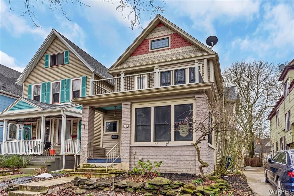 290 Lexington Ave. Stately, charming Elmwood Village colonial with a spacious, yet easy to manage, one bedroom apartment. Younger roof, low maintenance exterior, wood fenced yard and parking. Quaint foyer, wainscoting, grand staircase opens to big living and dining rooms. Flawless walls, ceilings, refinished oak floors and classic moldings, woodwork, French doors and a fireplace. Updated kitchen abundant with white cabinets, granite counters and stainless steel appliances. Three bedrooms with great closets include a second floor master suite and bathroom with a balcony. First floor laundry, updated windows. Spacious yet easy to manage one bedroom apartment from a separate entrance in great condition, currently rents for $900 mos. Modern mechanical systems include central air. House is listed as single family home B1522323 and double B1522330.