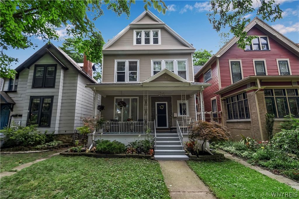 Classic Elmwood Village Victorian with architectural charm and beauty throughout and maintenance free exterior. 4 beds and 2.5 baths, with an incredibly spacious first floor for ease of living and entertaining. Beautiful natural woodwork greets you in the gracious entry and carries through upstairs. Formal living room and dining rooms, plus large, updated kitchen, family room and den. Intricate, original tile on all three decorative fireplaces. Bright, primary bedroom overlooking Richmond with sitting room area. 2nd floor laundry washer/ dryer included and finished third floor with three large additional rooms and full bath. 2 car, tandem garage off of alley that is entered from Rhode Island. New tear off roof 2017, A/C in 2018, furnace in 2019, hot water tank in 2023. Washer/dryer in basement excluded. Many more updates attached. Close proximity to Five Points neighborhood and businesses. This house has been impeccably maintained and cared for- a must see! Offers will be reviewed Thursday April 4th, 2024 at Noon.