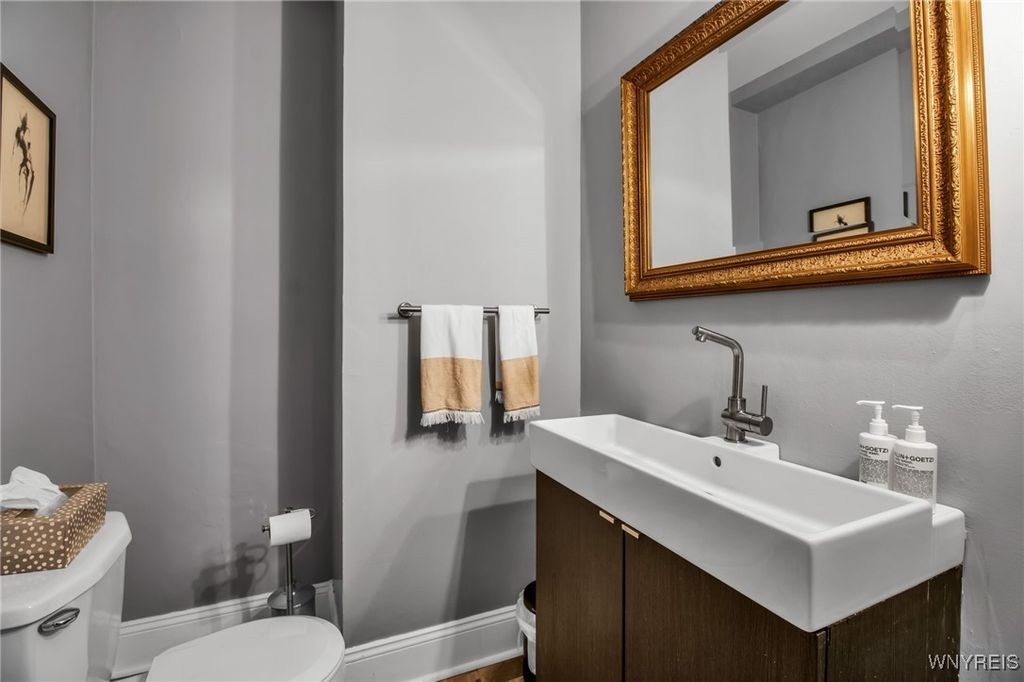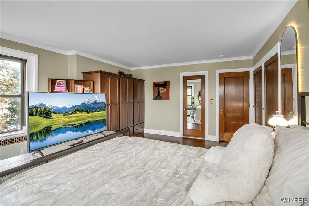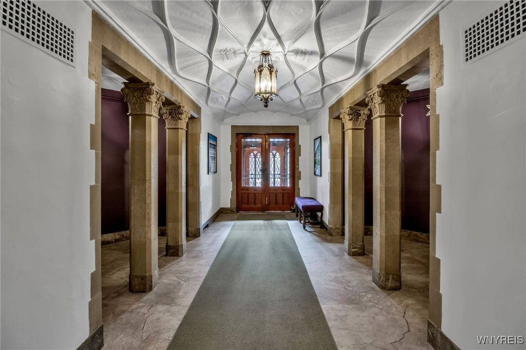 Fantastic condo in one of Buffalo's premier buildings! 800 West Ferry, designed by Duane Lyman, boasts exceptional 1920s architecture, a spectacular lobby with gorgeous details, and convenient walkability to Elmwood Village shops and restaurants. This turn-key one-bedroom unit is a perfect blend of classic features and thoughtful modern updates! Entryway with ample coat nook leads to convenient and modern half bath. Spacious, bright living room boasts gleaming, refinished parquet floors, decorative fireplace centerpiece with mantel, traditional built-in bookshelves, and plenty of natural light! Opens to beautifully upgraded kitchen with granite countertops and breakfast bar, bonus pantry space, stainless appliances, and gorgeous fixtures. Gracious primary suite is a true sanctuary, offering extensive built in storage, and en-suite bath with tub/shower and beautiful vanity. Additional attic storage and designated, off-street parking space included! Enjoy 24 hour security, common terrace space, and all utilities included in HOA. Location can't be beat; great proximity to Delaware Park, Medical Campus, theatre district and more. Building is in a historic district; qualifies for SHPO tax credits for home renovation projects that qualify!