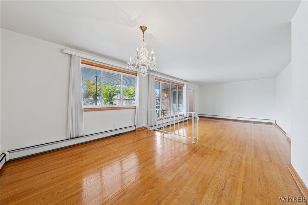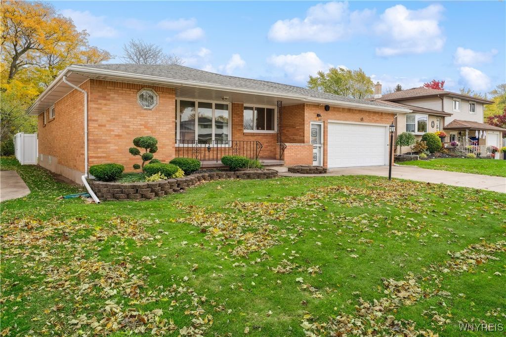 Welcome home to your hard to find 4 sides brick, 3br, 1.5 bth, 2 car garage RANCH in the heart of Town of Tonawanda! Updates include furnace (25) w/existing AC, vinyl windows throughout, some updated PVC and pex plumbing, vinyl fully fenced yard, leaf guard for gutters and more! Bright and airy living room, formal dining room and all 3 br's have beautiful oak hardwoods throughout, partially updated eat in kitchen w/oak cabinets, amazing full bath updated completely w/tile shower, marble top counters, toilet, flooring and lighting, first floor stackable laundry make for easy single floor living, BONUS, dry, poured finished full basement area adds over (35x15) 500 sq ft of living space, freshly painted, epoxy flooring, 1/2 bath, workshop area, as well as dry bar, glass block windows for security, so many places to chill outside that include Relaxing on your covered front porch, or on your open concrete porch in the fully fenced yard, or pour yourself some drinks in the 17x8 3 season room, storage shed for convenience, This one won't last!! Offers due Monday, November 10th by 7pm.
