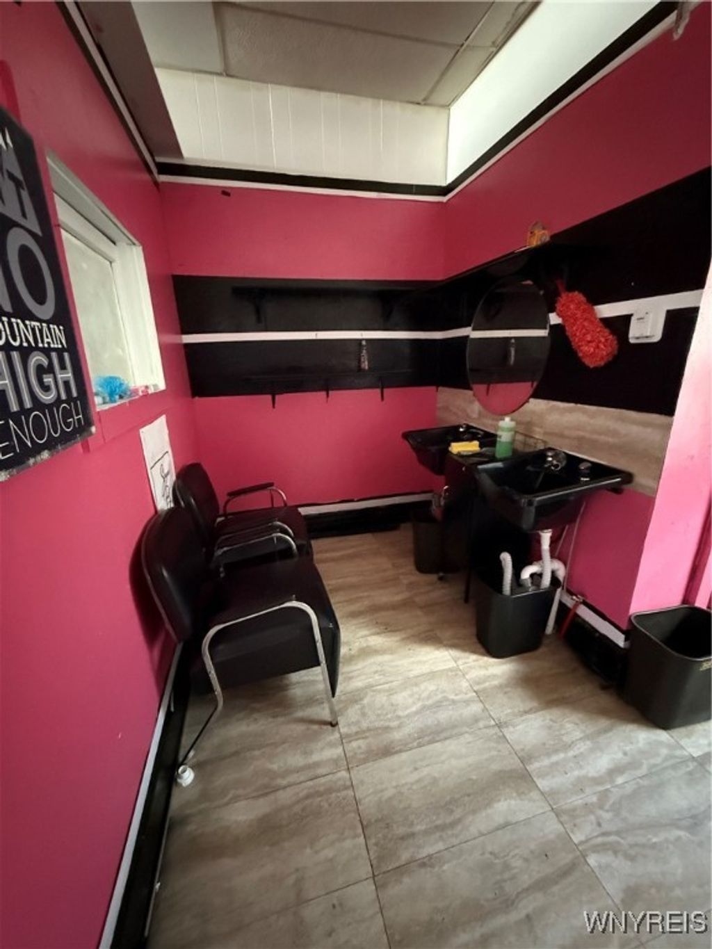 This lower space is for lease only. Not for sale. This was formally a beauty salon and currently a large open space for your business adventure. Available immediately