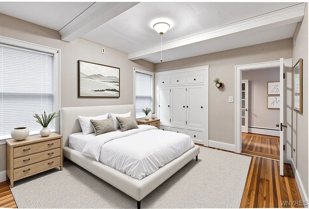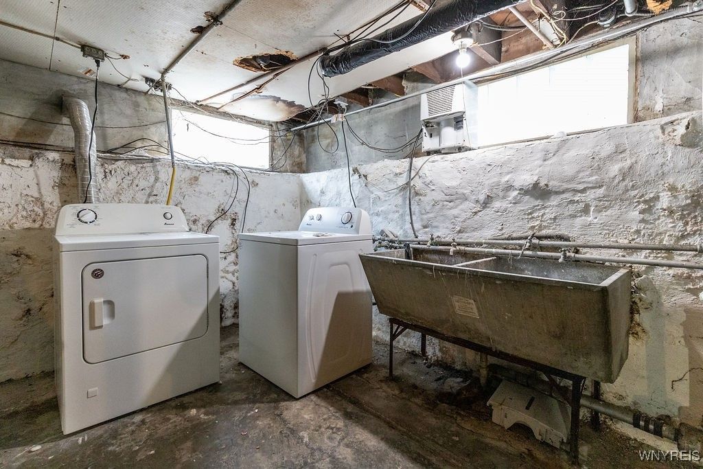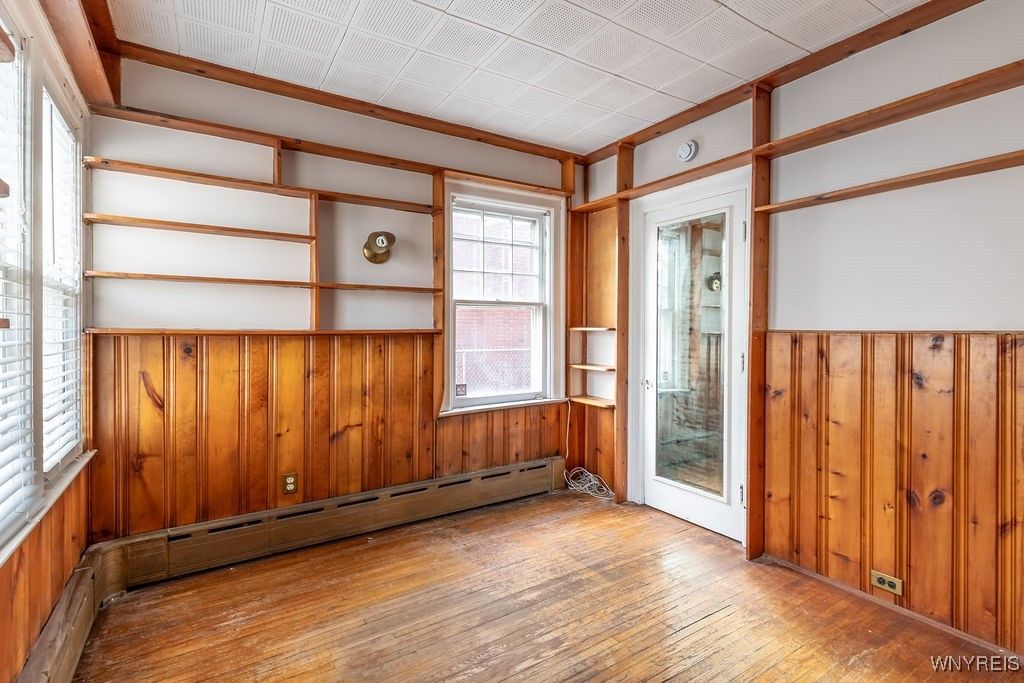 Welcome to 1199 Elmwood! This freshly painted bungalow offers an unbeatable location steps away from the AKG and Burchfield Penney art galleries, blending classic architectural details with modern updates. Entering from the private front porch you are met with a formal entryway with original, built-in storage, tile floor and French doors into the inviting living room. The spacious living room features a gas fireplace (NRTC) and inlaid hardwoods floors. The space flows into the formal dining room also featuring inlaid floors, updated sconces, window seat, wainscotting and coffered ceilings. An efficient kitchen includes ample cabinet space, all the kitchen appliances plus a dishwasher. Completing the first level are two bedrooms and a full bath, which features an original stained-glass window for both ample natural light and privacy. On the second level the upstairs opens into a bonus living space with a second-floor laundry room. Both bedrooms are equal-sized and share a spacious common full bath with an original clawfoot tub. The basement features a second laundry and ample storage. The long driveway is complete with a one-car garage, and a private paver patio. With its proximity to numerous neighborhood amenities, this great-priced home is a perfect opportunity to live in one of the city's most desirable areas. Showings begin Saturday, 12/6 at 11 am. Join us for our open houses: Saturday and Sunday, 12/6 and 12/7 from 11 am - 1 pm.