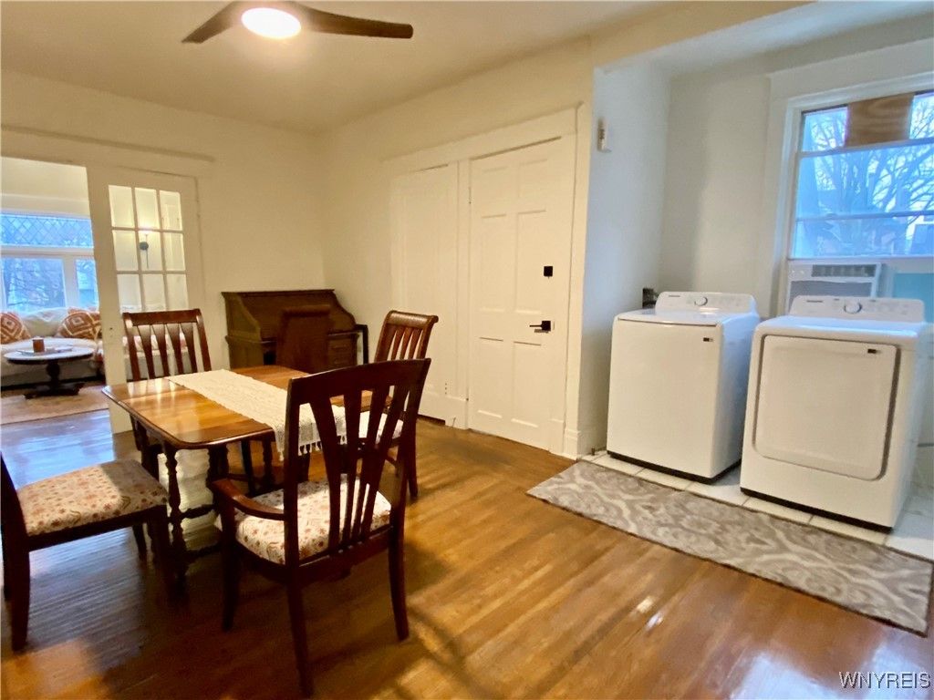 Spacious upper unit in an owner-occupied 2-family home on Ashland Ave near Lexington in the Elmwood Village. Features include original hardwood floors and many updated windows. A large formal dining room with coat closet opens through glass French doors to a bright living room with vaulted ceiling, leaded-glass windows, and decorative fireplace. The updated kitchen includes an oven, dishwasher, and refrigerator. Recently remodeled full bath with updated tub/shower and modern fixtures. Two well-sized bedrooms plus a second-story loft overlooking the living room provide excellent additional living space. In-unit laundry. Water and garbage/recycling included. Listing includes recently taken updated photos. Vacant photos are from a prior turnover but accurately represent the same layout, fixtures, and overall appearance. ***Tenant Occupied 24Hour Notice required to show**Available Feb 1, No Smoking, No Porch Access, Minimum Credit Score Required. Tenant is responsible for paying gas and electric,