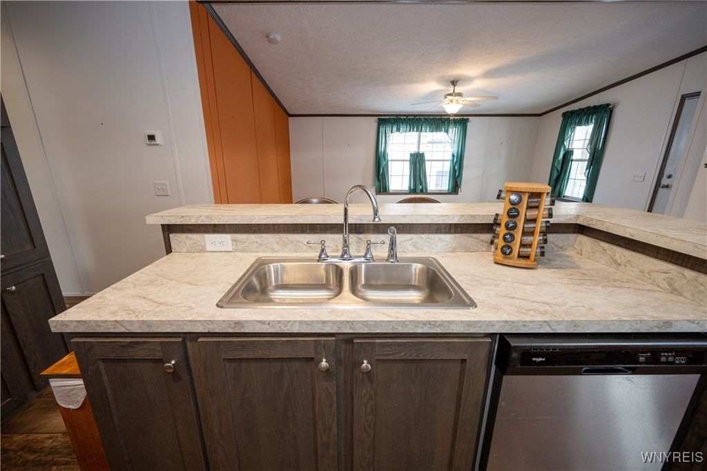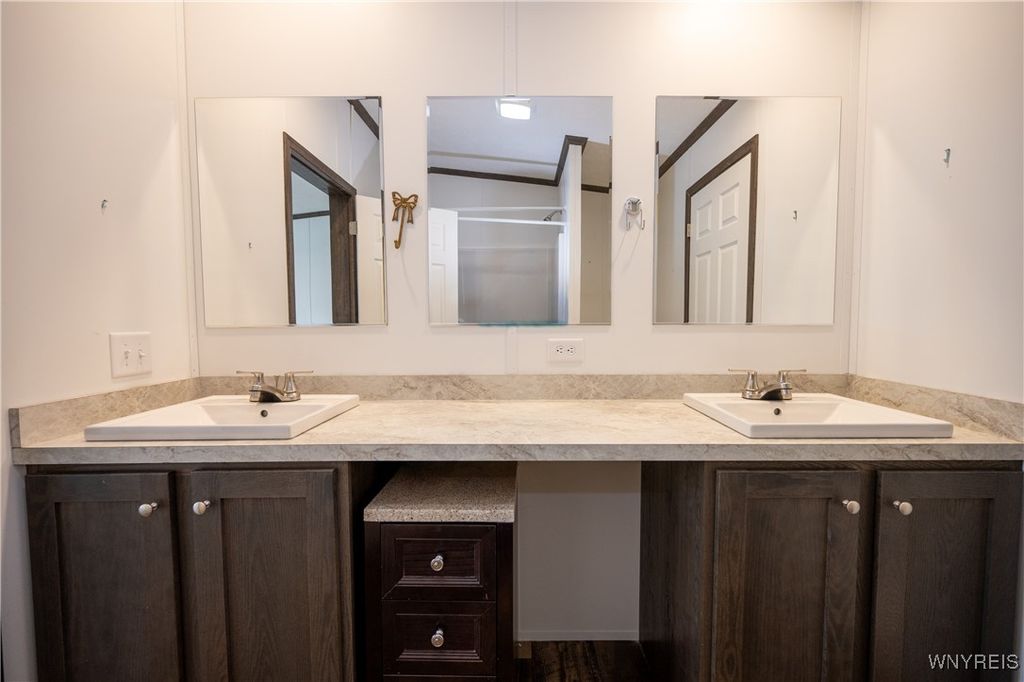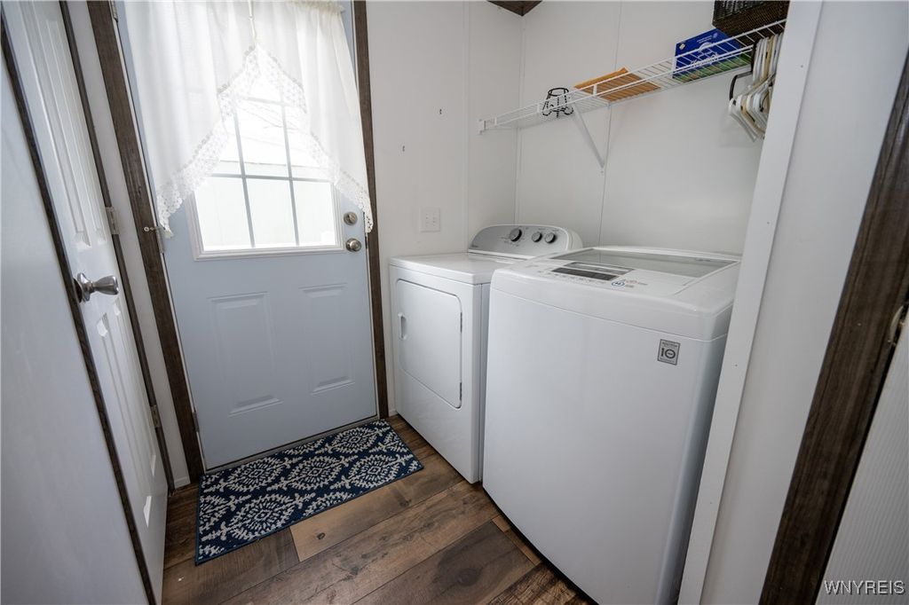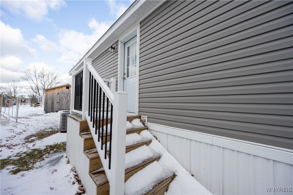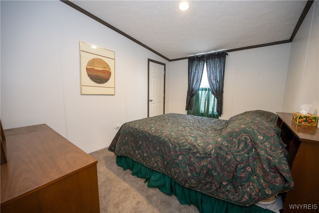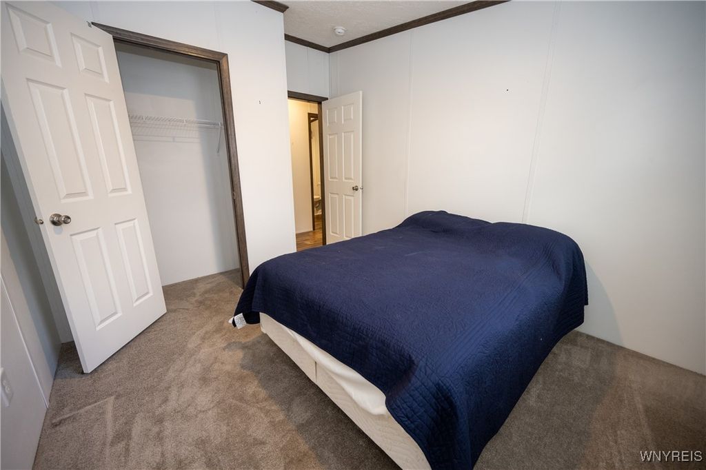 Like brand NEW! 2022 Double Wide Mobile Home is in great condition. Open Kit/Din/Liv combo for easy entertaining with all kitchen appliances included "as is". Kitchen island with sink, dishwasher & stools for seating. As well as space for a dining table. Nice vinyl planking floor & WW carpet throughout. There is a separate laundry room/side entrance with W&D included " as is" with furnace/HWT area. Full guest bath, 2 nice size bedrooms and a master bed with master bath. Master bath offers his & her vanity & tub/shower surround. Walk in closet. The exterior boosts a double wide concrete driveway & and a very nice covered front porch. Large shed in rear of lot for extra storage. Minutes drive to the Beautiful Lake Erie, approx 30 mins to Downtown Buffalo. Nothing to do but move in!!