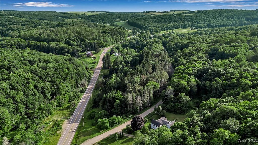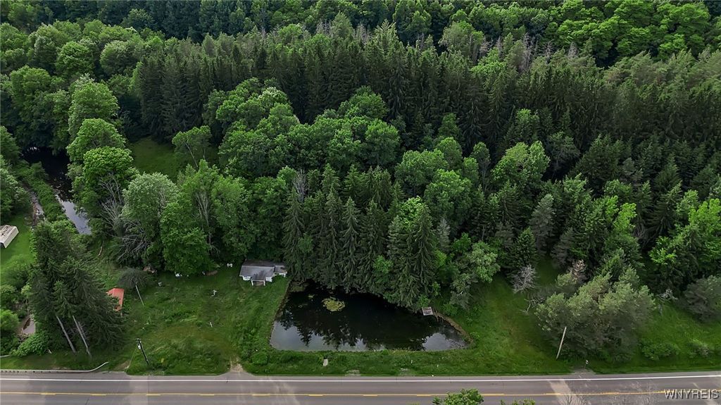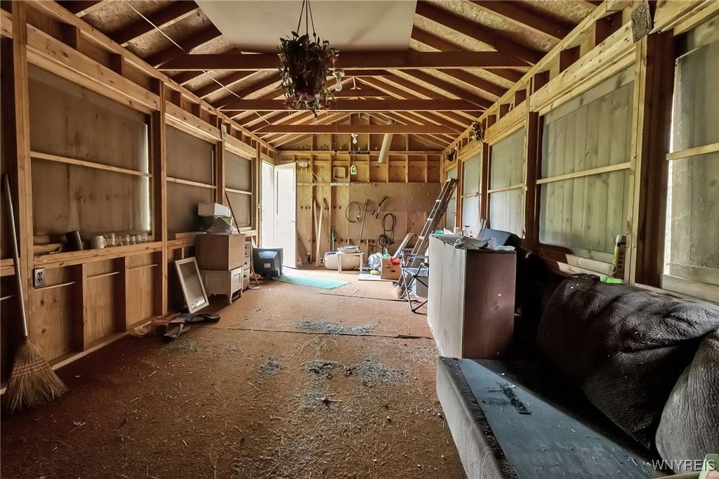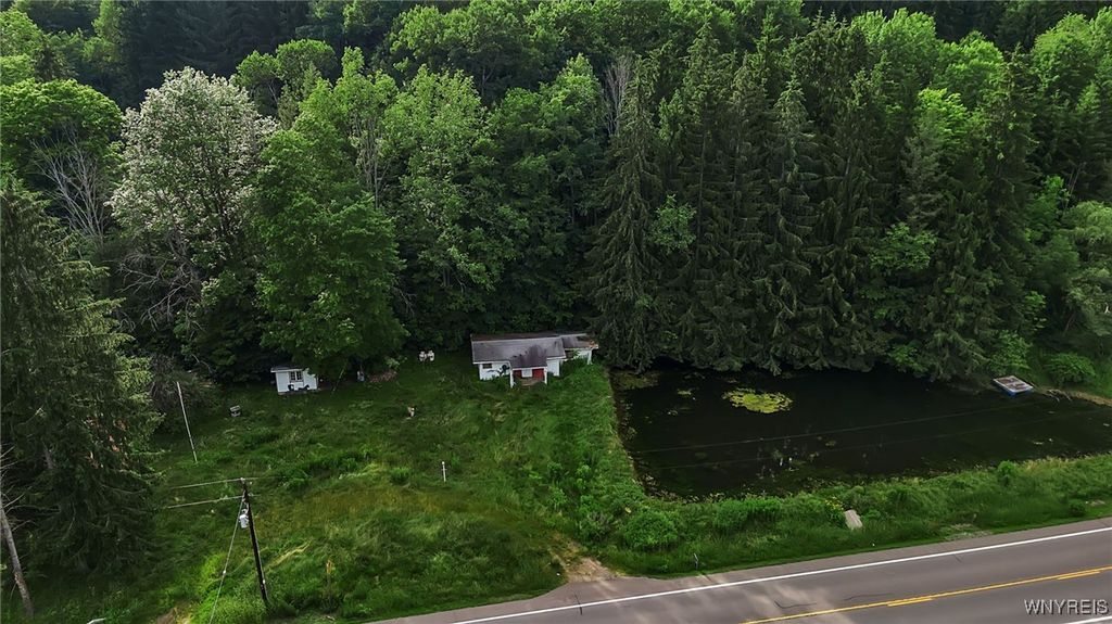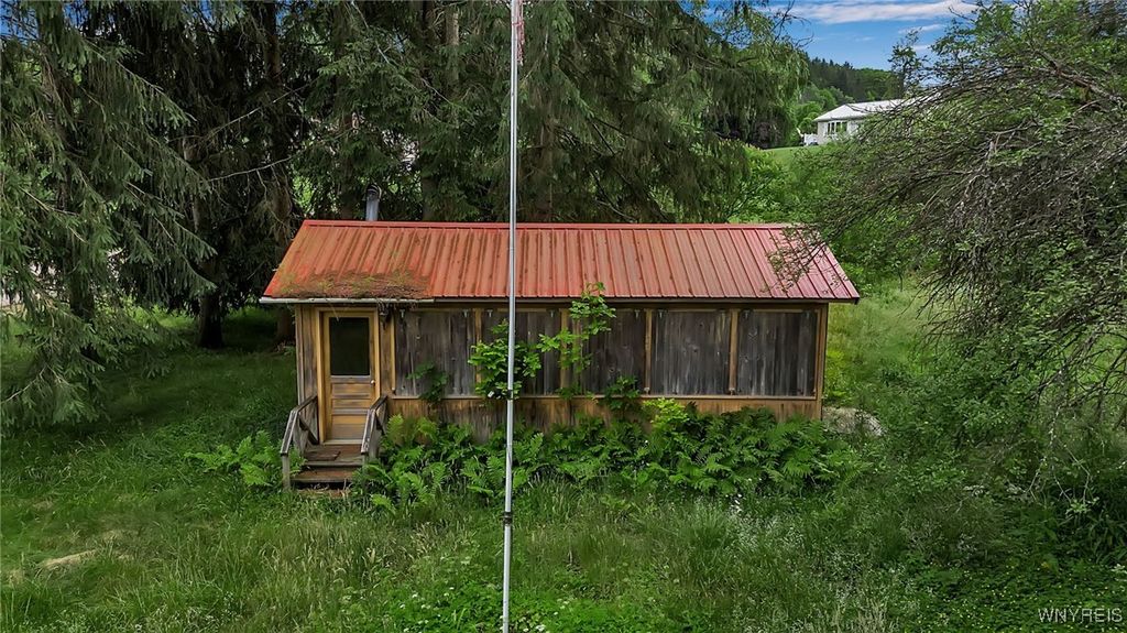 9023 State Route 21 is the perfect get away, whether you're looking for a hunting cabin, a summer home, or easy living, this land offers the avenues to fit your needs. The main cabin features 2 bedrooms, a kitchen, and a mudroom perfect for storage and a great add on as to not track dirt or snow through the living area. Coming with heat, this cabin is sure to help you get warm after a long day outside in the cold. These 8 acres come with 2 additional structures, a smaller unit that was outfitted for 2 cots, and a shed with wooden shutters, perfect for your mower, snow mobile, four wheeler, and or all your outside needs! This property currently is connected with propane and electric. There is also a pond on the land right outside the main cabin with a dock! Showings start immediately and offers to be reviewed as they come in.