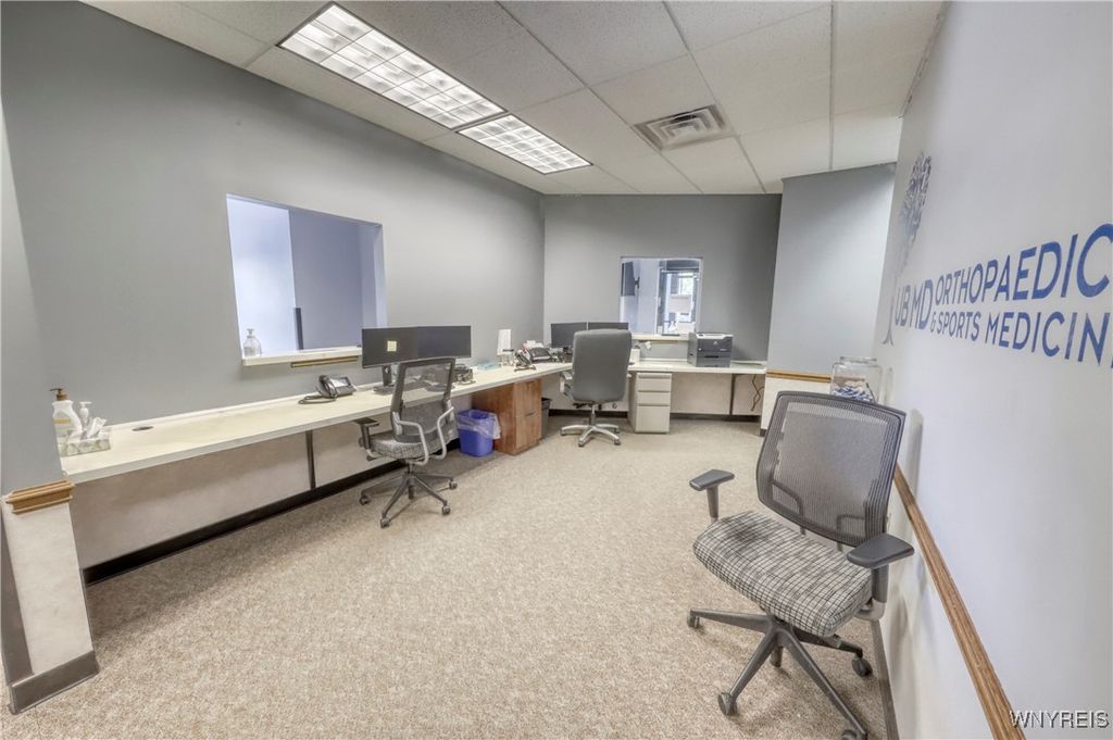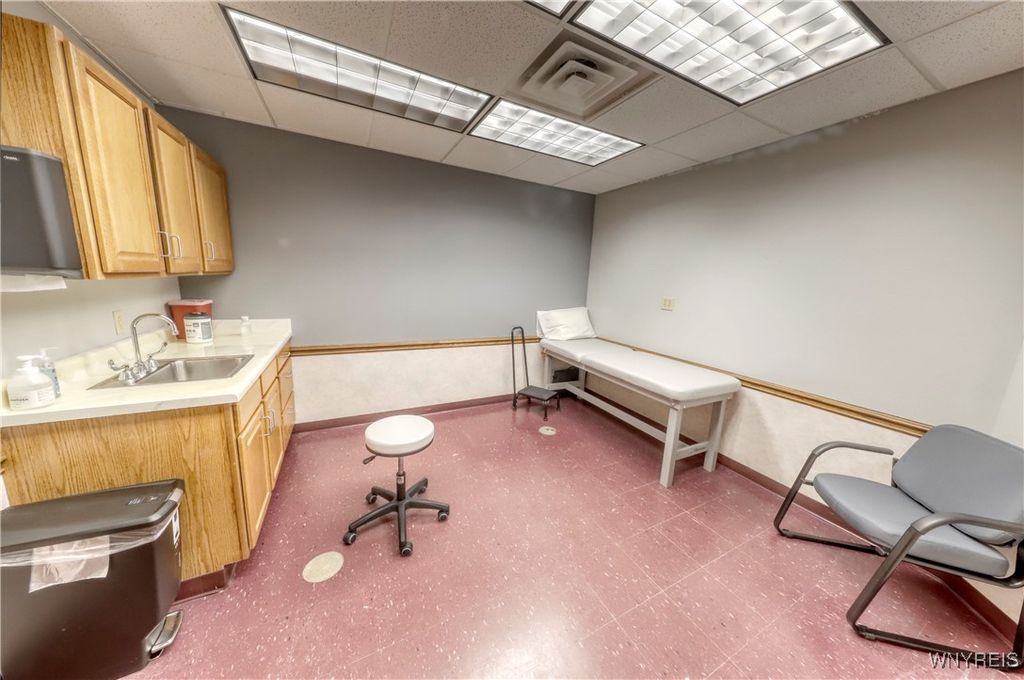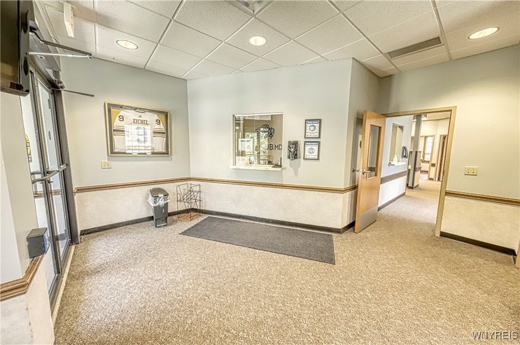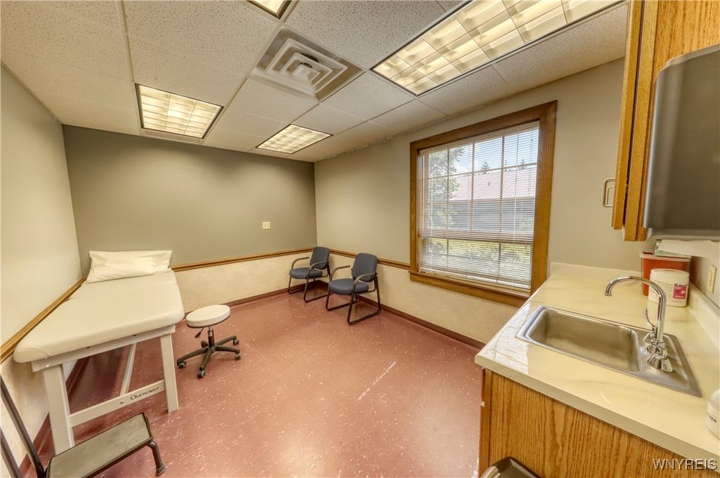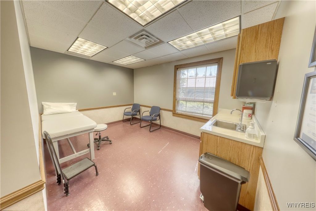 Suite #1-Prime medical or office space. Current set up is orthopedic clinic oriented but optimal for like kind business, urgent care service or veterinarian service, etc. High traffic on a main thoroughfare on superior site next to pharmacy in Ellicottville in between Holiday Valley Resort and downtown Ellicottville. Space includes: vestibule, waiting room, receptionist area, patient bathroom, trauma door entry, four exam rooms with individual sinks, x-ray room, storage room or office area and kitchenette/breakroom plus separate shower stall bathroom. Plenty of parking in front and back of property with signage above entrance door and on the street side of building. Emergency entrance on southside of building. Property interior floor plan has been added to attachments.