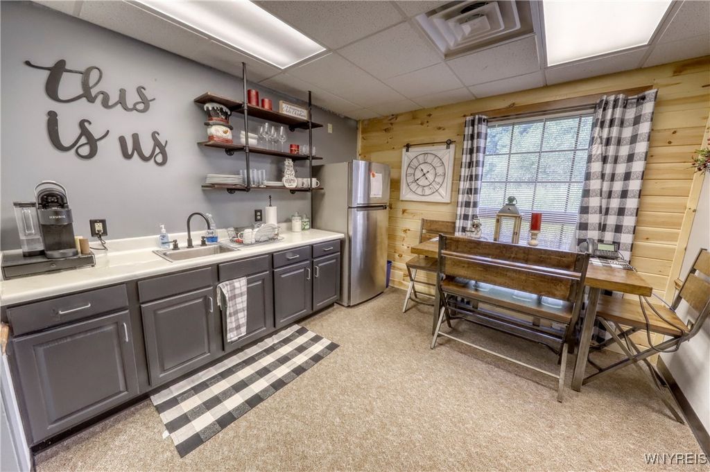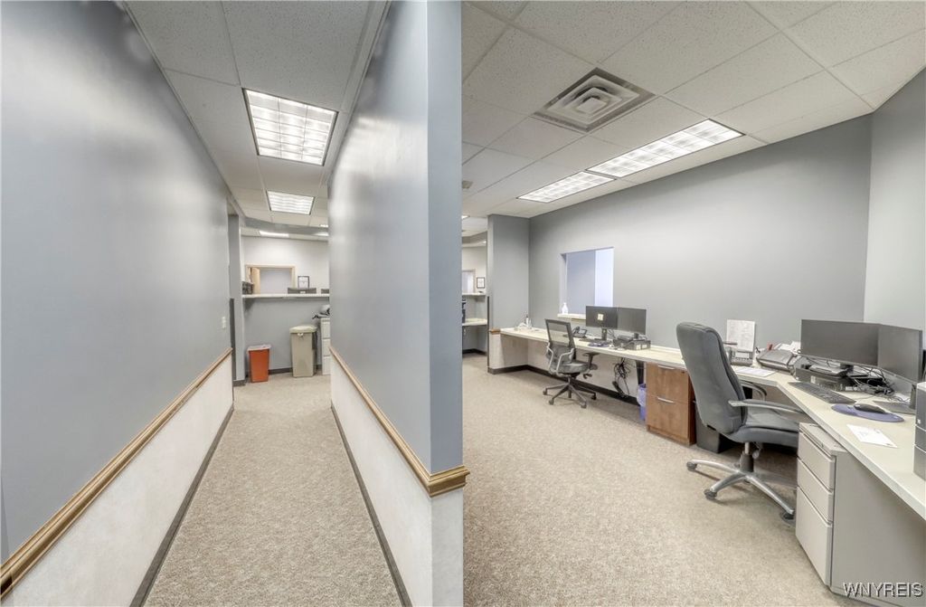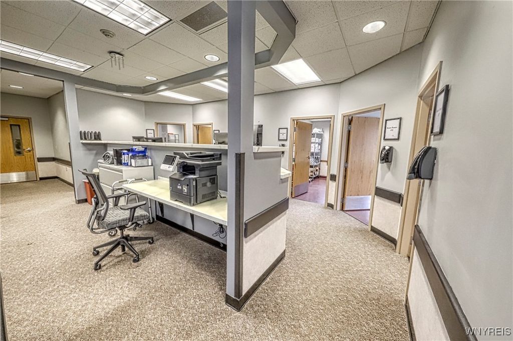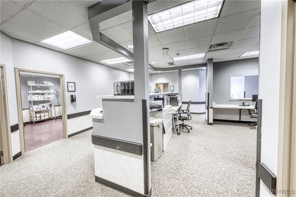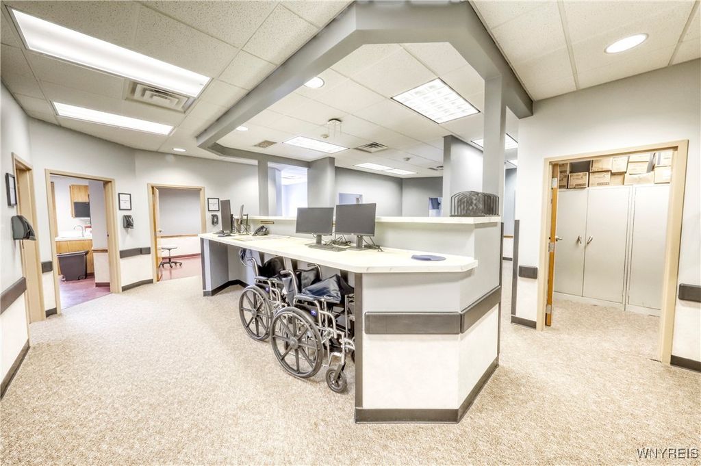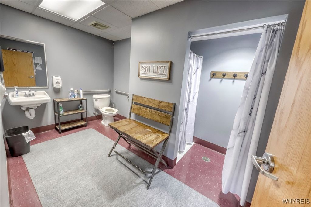 Suite #1-Prime medical or office space. Current set up is orthopedic clinic oriented but optimal for like kind business, urgent care service or veterinarian service, etc. High traffic on a main thoroughfare on superior site next to pharmacy in Ellicottville in between Holiday Valley Resort and downtown Ellicottville. Space includes: vestibule, waiting room, receptionist area, patient bathroom, trauma door entry, four exam rooms with individual sinks, x-ray room, storage room or office area and kitchenette/breakroom plus separate shower stall bathroom. Plenty of parking in front and back of property with signage above entrance door and on the street side of building. Emergency entrance on southside of building. Property interior floor plan has been added to attachments.