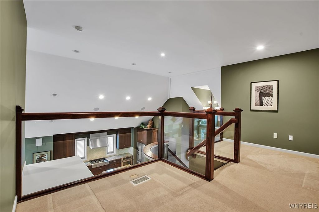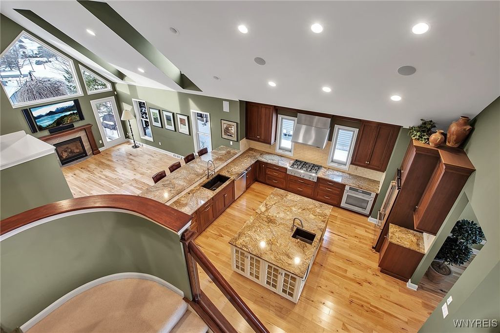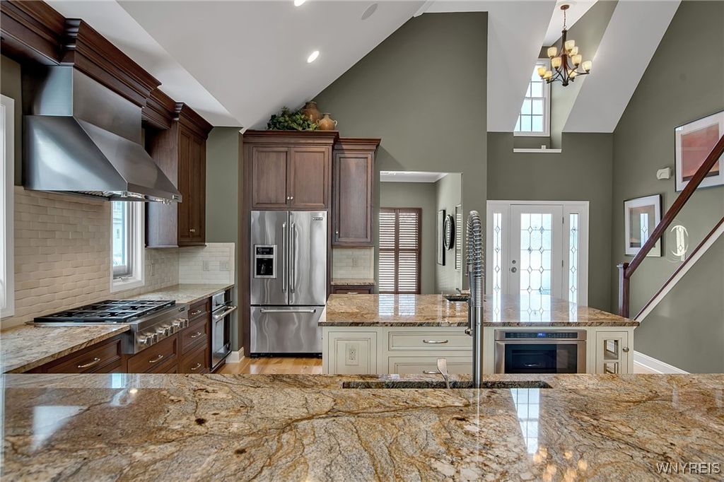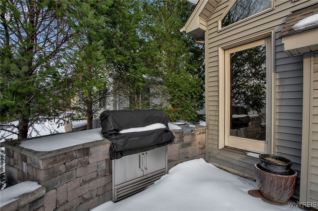Spectacular, one-of-a-kind custom patio home featuring exquisite, high-end finishes throughout. Ideally located in prime Amherst within Nottingham Village, this one-owner residence is truly exceptional. Upon entry, you are welcomed by soaring volume ceilings and an expansive, open-concept layout. The stunning kitchen is updated to perfection and showcases artisan cabinetry, granite countertops, premium stainless-steel appliances, dual sinks, tile backsplash, beverage center, recessed lighting, and hardwood floors. An enormous island plus peninsula provides abundant workspace and seating. The oversized family room adjoins the kitchen and features custom windows and a gas fireplace. Just off the kitchen is a versatile office or dining room accented by a coffered ceiling. Custom millwork is found throughout the home. An exquisite glass staircase leads to the second floor, offering two generously sized bedrooms, a full bath, and a bonus loft space ideal for a home office. The first-floor primary suite is a true retreat, complete with an updated en-suite bath and a walk-in closet with custom shelving. Over 800 sq ft in the finished lower level (puts overall sq ft at nearly 3000 sq ft) adds expansive living space with polished concrete floors, a secondary kitchen area, workout space, and a gathering area perfect for entertaining. Notable updates include custom window treatments (motorized and plantation-style), built-in speakers, sprinkler system, Culligan water softener, HE furnace and AC (22), central vac, water back up sump pump, tankless hot water tank, and updated paint and flooring. Outdoor living is equally impressive with an expansive patio, extensive landscaping, and a fully equipped outdoor kitchen. A truly unique opportunity to own a special, custom patio home. Offers due Tuesday, December 23rd at 8pm.