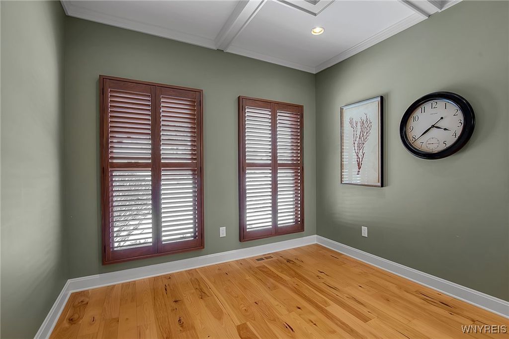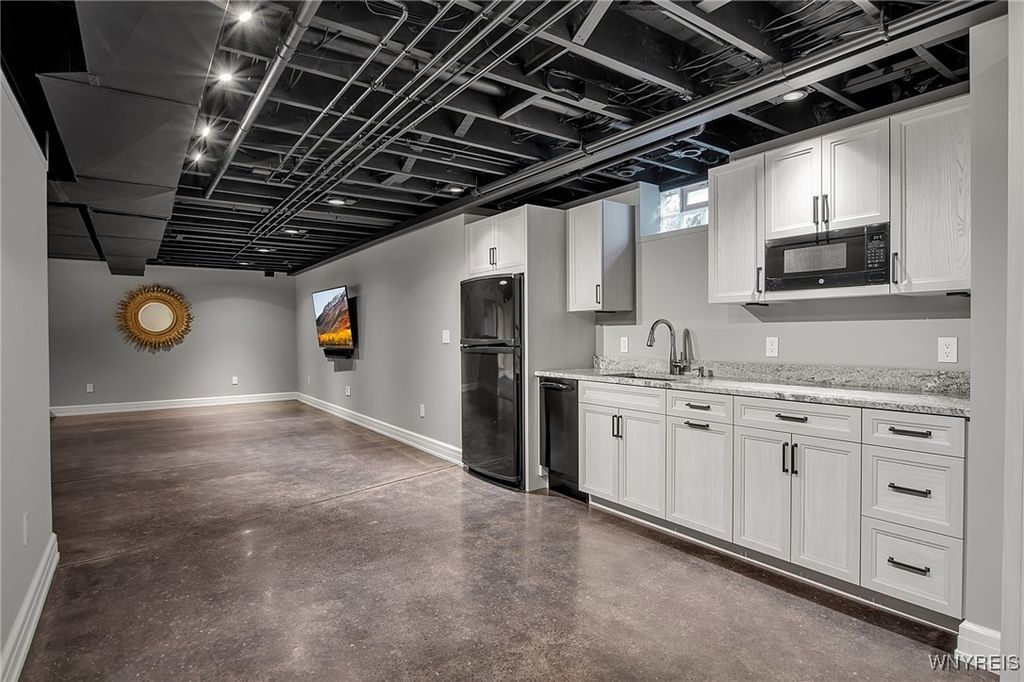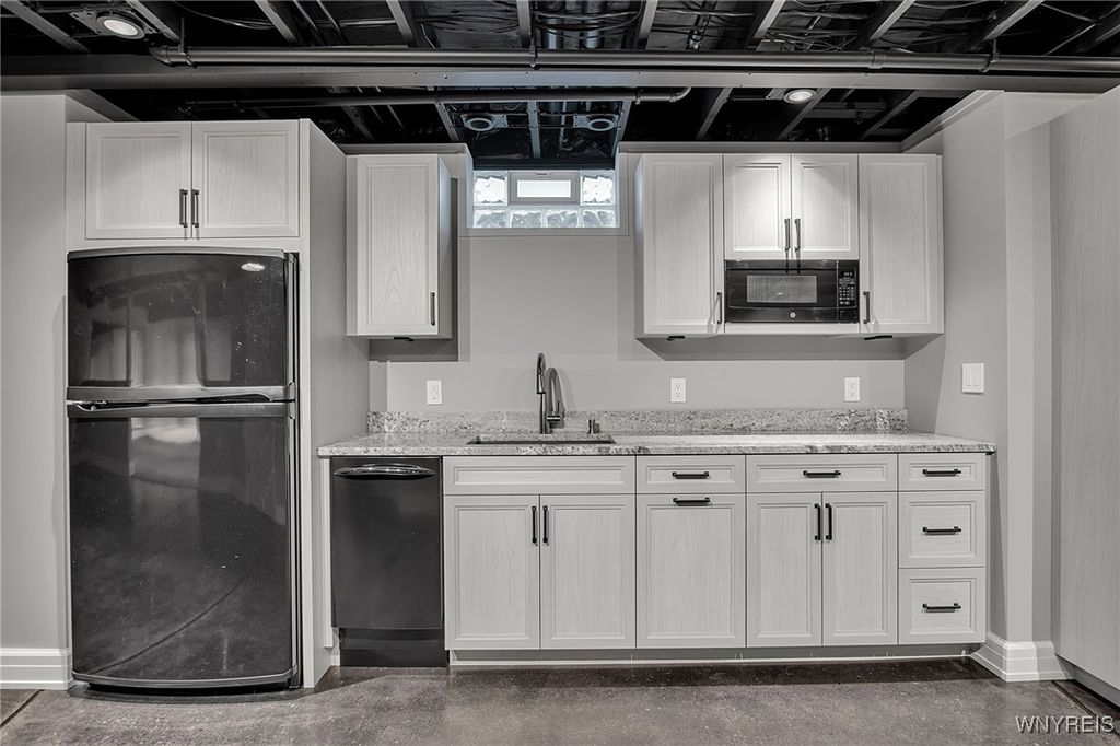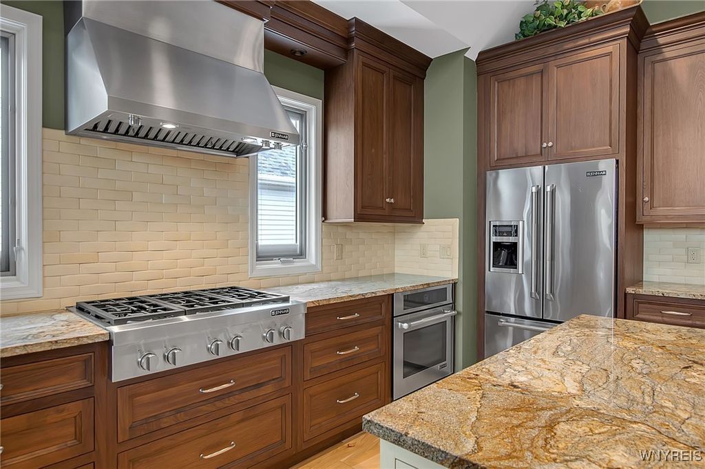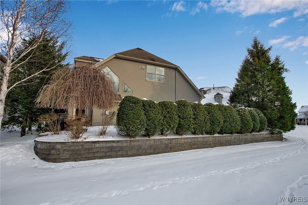 Spectacular, one-of-a-kind custom patio home featuring exquisite, high-end finishes throughout. Ideally located in prime Amherst within Nottingham Village, this one-owner residence is truly exceptional. Upon entry, you are welcomed by soaring volume ceilings and an expansive, open-concept layout. The stunning kitchen is updated to perfection and showcases artisan cabinetry, granite countertops, premium stainless-steel appliances, dual sinks, tile backsplash, beverage center, recessed lighting, and hardwood floors. An enormous island plus peninsula provides abundant workspace and seating. The oversized family room adjoins the kitchen and features custom windows and a gas fireplace. Just off the kitchen is a versatile office or dining room accented by a coffered ceiling. Custom millwork is found throughout the home. An exquisite glass staircase leads to the second floor, offering two generously sized bedrooms, a full bath, and a bonus loft space ideal for a home office. The first-floor primary suite is a true retreat, complete with an updated en-suite bath and a walk-in closet with custom shelving. Over 800 sq ft in the finished lower level (puts overall sq ft at nearly 3000 sq ft) adds expansive living space with polished concrete floors, a secondary kitchen area, workout space, and a gathering area perfect for entertaining. Notable updates include custom window treatments (motorized and plantation-style), built-in speakers, sprinkler system, Culligan water softener, HE furnace and AC (22), central vac, water back up sump pump, tankless hot water tank, and updated paint and flooring. Outdoor living is equally impressive with an expansive patio, extensive landscaping, and a fully equipped outdoor kitchen. A truly unique opportunity to own a special, custom patio home. Offers due Tuesday, December 23rd at 8pm.