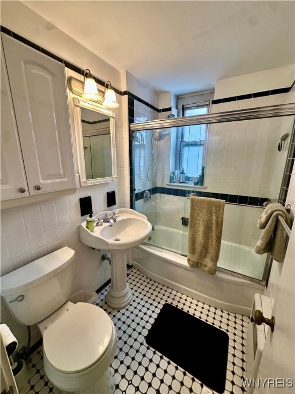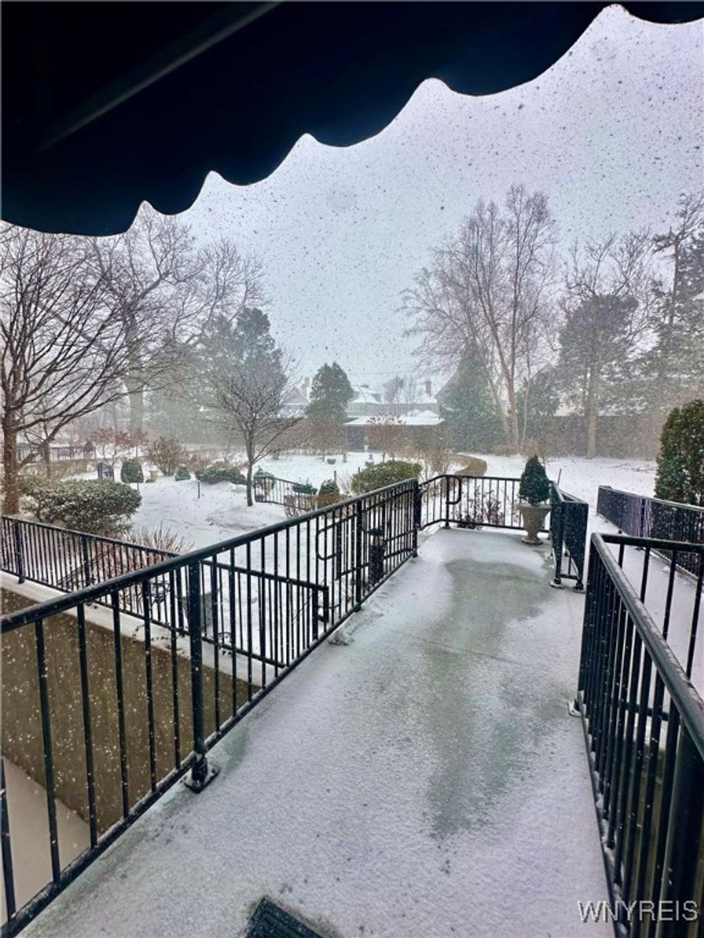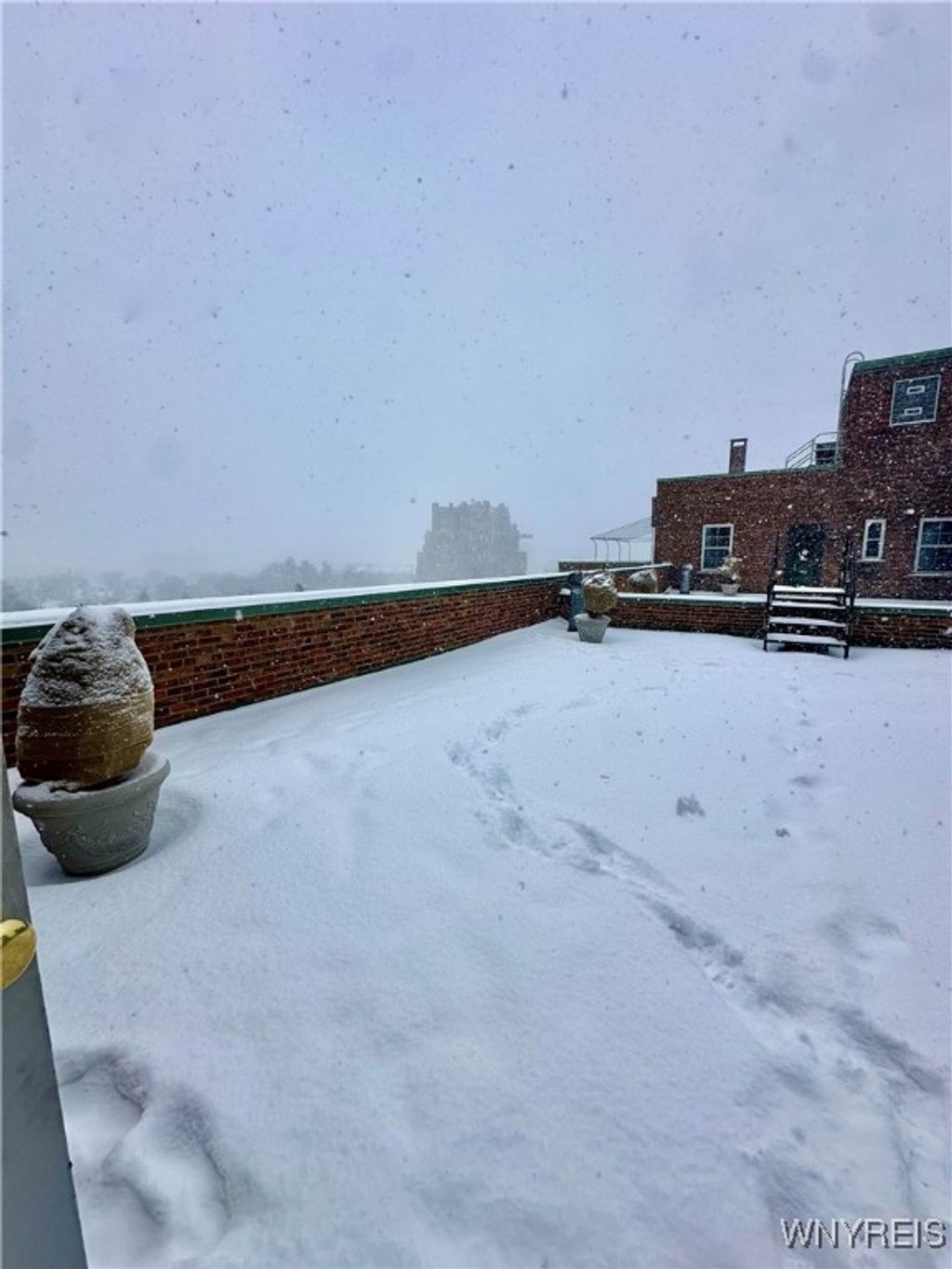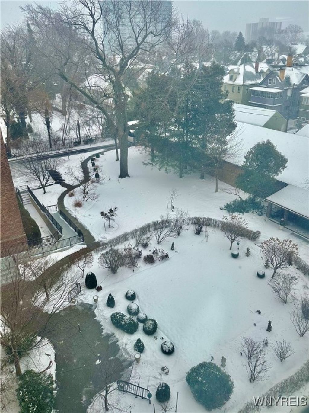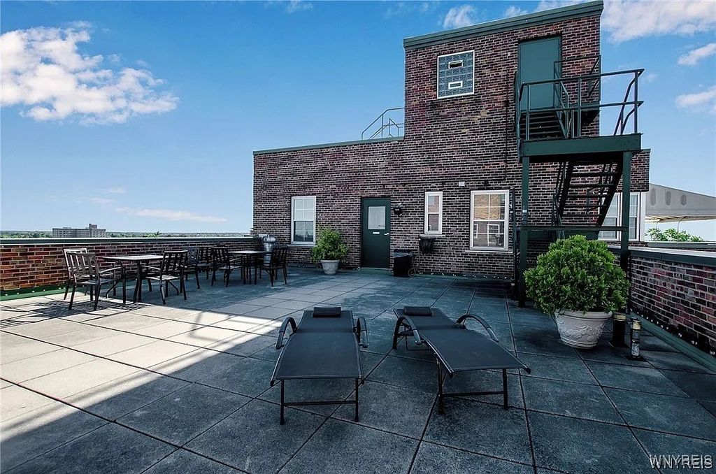 Welcome to one of Buffalo's few beautiful and unique co-op living opportunities. Tudor Plaza offers a care free lifestyle; all taxes, utilities (including internet & cable), and exterior maintenance are included in the monthly fee; Enjoy the rooftop patio with amazing views and a private courtyard oasis with outdoor furniture & covered grill areas (available for private events). This upscale building offers a secure entry with elevator, mail room, laundry and an individual storage unit. 6J also comes with a parking space in the enclosed garage. The unit itself boasts dark wood floors throughout, a fully applianced white kitchen with marble countertops and plenty of cabinets; updated bath with original subway tile design; a spacious bedroom with large closet; the hallway also offers additional closet and pantry space. The placement is fantastic with beautiful views of the courtyard from every room. Guest parking is available at the rear of the building on both sides. No pets or rentals allowed. All applicants must meet with the Board for a brief interview for approval. $858.01 monthly fee covers: gas, electric, water, trash, cable, internet, parking, building maintenance insurance and reserve fund. There will be no open houses.