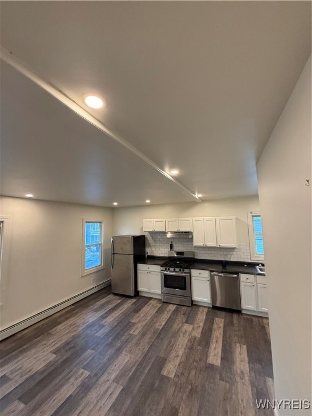 Spacious 2-bedroom upper apartment located at 193 Vermont Street - Upper. This second-floor unit is the only apartment on the top level, offering added privacy and separation. Features a large living room/dining room combination and an oversized kitchen with ample space for cooking and storage. Both bedrooms include closets for convenient storage. The bathroom has been fully updated with stylish tile and modern finishes. Well-maintained flooring throughout provides a clean, finished feel that fits the character of the home and neighborhood. Conveniently located on Buffalo's Lower West Side with easy access to downtown, the waterfront, and nearby shops, dining, and transit. Available for a 1-year lease.