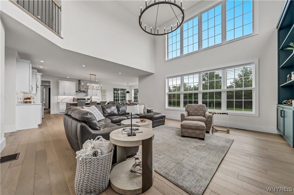 Located on a secluded cul-de-sac within the highly sought-after Clarence School District, this is a rare and highly exclusive opportunity to build a luxury custom residence on 1 of only 5 estate-style homesites designed to showcase exceptional craftsmanship and architectural detail. Presented by Brownstone Homes, one of Western New York's premier custom builders with nearly 40 years of building experience and over 100 custom-built homes in WNY, this proposed residence offers approximately 5,400 square feet of finished living space, including approximately 900 square feet of finished lower-level living area. The featured floor plan includes 4 bedrooms and 4 full bathrooms, with each bedroom offering its own private ensuite, a dramatic two-story great room, expansive entertaining spaces, 10' first-floor ceilings and 9'ceilings on the second level, and a 3 car garage, all within a flexible layout well-suited for modern lifestyles. The design allows for a possible 1st floor, 5th bedroom or private home office, along with a spacious primary suite featuring a spa-inspired bath, generously sized bedrooms, and multiple gathering areas throughout the home. The finished lower level provides additional living and recreational space ideal for entertaining, fitness, or media use. Interior finishes are designed to reflect Brownstone's elevated standard of quality and craftsmanship, featuring custom cabinetry, premium millwork, wide-plank hardwood flooring, quartz surfaces, designer lighting, and thoughtfully curated architectural details throughout. Exterior elevations will showcase a high-end blend of materials and detailing consistent with Brownstone's custom portfolio. This home is to be built, offering the buyer the ability to proceed with the featured floor plan, select from one of Brownstone's already completed custom designs, or collaborate directly with the builder's design team to create a fully customized residence tailored to their vision. Photos are digital renderings and/or examples of previously completed Brownstone Homes and are for illustrative purposes only. A rare opportunity to bring a true luxury vision to life in one of Clarence's most desirable settings.
