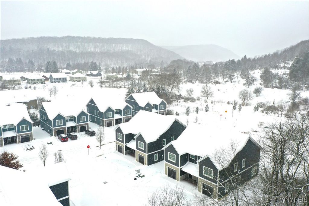All new and ready for you in early 2026- Elicottville's most prestigious new townhouse development! If you are looking for a place with no maintenance that allows you to have 4 seasons of pure enjoyment with all that Ellicottville has to offer, Glen Burn Trail is for you. Enter the foyer where you'll see the open concept of the main living area. Smart-designed kitchen has a larger eat-at island with storage cupboards. Gather round the living room with a gas fireplace that blends with the dining & kitchen. Step outside to the beautiful patio to relax, read or grill (natural gas connection). Upstairs is the primary bedroom with ensuite bath with walk in shower and double sink vanity. Two more bedrooms & full bath with tub/shower. There's a den for extra hangout space/tv area. Sleeps 10 comfortably by adding a pull-out couch in the upstairs den. Hall closet for a stackable washer/dryer. The attached 1 car garage is big enough to add storage areas. Sale includes furniture (couch, coffee table, dining table/chairs) and appliances (gas stove, refrigerator, dishwasher) Easy walk to the Village for shopping/dining. This is a preferred end unit and is set back off the main road for a quiet setting. A townhouse community that is well managed & maintained! Short term rentals allowed. Compare a brand new Glen Burn Trail to other townhouses that are on the market or have sold recently and you'll appreciate the great value in buying one of these fabulous units!