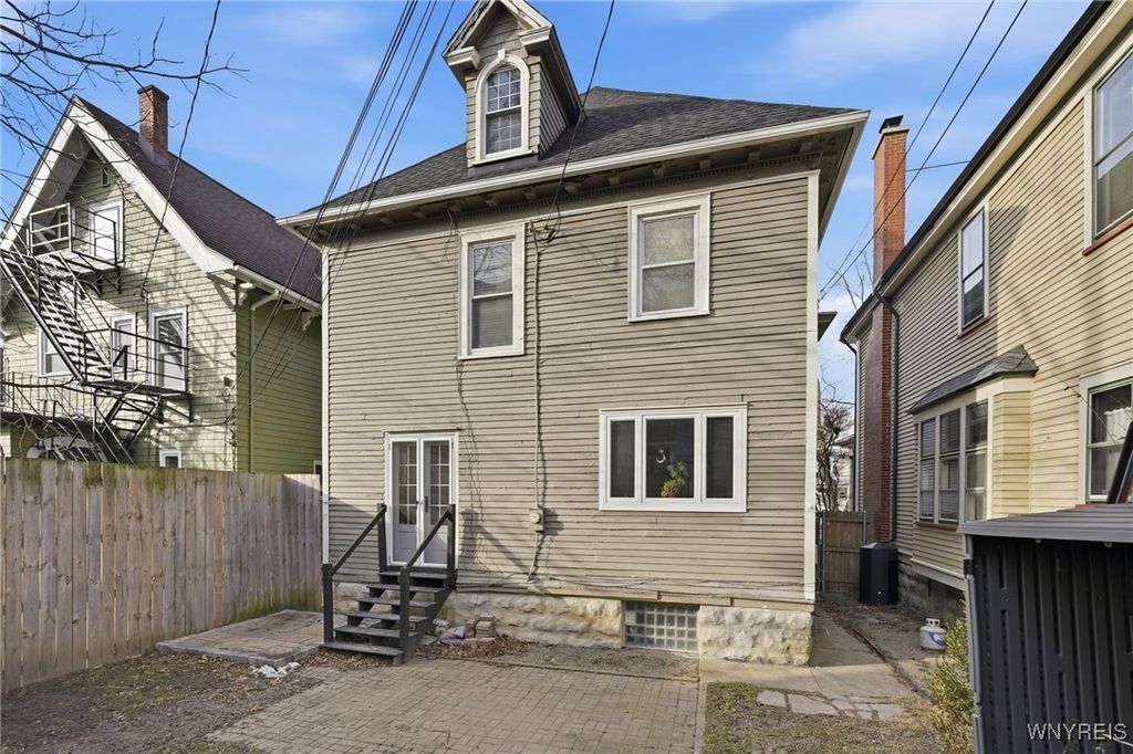 Welcome to 699 Richmond Avenue "” a truly spectacular Elmwood Village residence where historic charm meets modern elegance. Ideally located just moments from Elmwood Village shopping and dining, Delaware Park, Bidwell Parkway, Buffalo State College, and the farmers market, this home offers the lifestyle buyers dream of. Step inside to find sun-filled living spaces highlighted by rich hardwood floors, stunning original woodwork, and timeless architectural details. The inviting living room features custom built-in bookcases and a beautiful fireplace (not currently in use). French doors added in 2023 provide access to the backyard and enhance the home's natural flow. The thoughtfully updated kitchen was completely gutted and remodeled in 2020 and now features stainless steel appliances, quartz countertops, a farmhouse sink, breakfast bar seating, wired Sonos ceiling speakers and an exposed brick accent "” all opening seamlessly into the formal dining area with coffered ceilings, creating an ideal space for everyday living and entertaining. This home offers 4 bedrooms and 1.5 baths, including a conveniently located half bath installed on the staircase landing. A fully finished third floor provides abundant additional living space with the potential for a 5th bedroom. Major upgrades include drain tiles in the basement (2019), kitchen renovation (2020), sump pump (2020), front porch (2021), complete tear-off roof (2023), backyard fencing (2019), stone pavers (2024), living room window (2025) and forced-air heating with central air conditioning. The sale also includes city-approved parking pad "” a rare benefit for urban living. Warm, light-filled, and full of character, this residence blends period craftsmanship with modern comfort in one of Buffalo's most beloved neighborhoods. Showings begin immediately "” don't miss your chance to call 699 Richmond Avenue home.