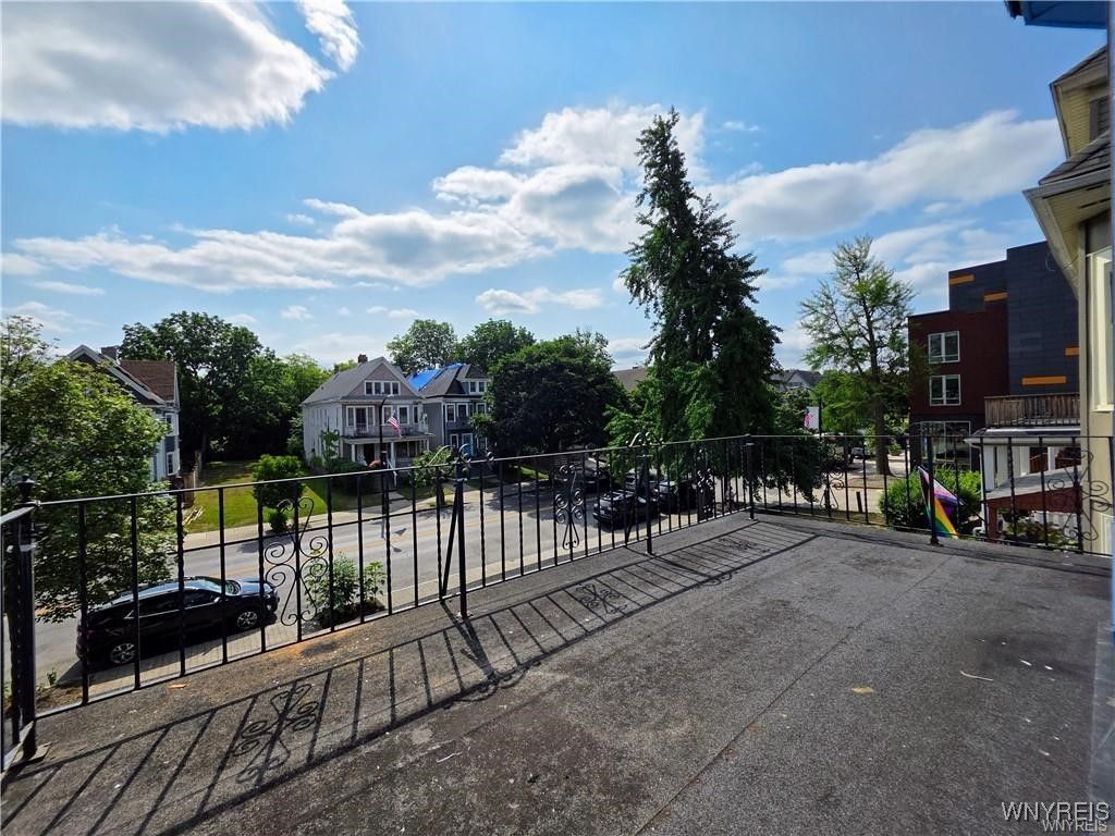Turnkey 4 unit investment property in the heart of Buffalo's highly desirable Elmwood Village, offering strong rental demand, mixed use zoning and good income. Located close to Delaware Park, Bidwell Parkway, and some of Buffalo's best shops, dining, and cultural attractions, this property benefits from one of the city's most stable and sought-after rental markets. The building consists of a 1st floor studio with updated kitchen and bath, hardwood floors, decorative fireplace, and front porch access, along with a recently renovated 2nd floor 1 bedroom that is currently vacant and ready to lease or owner occupy. Renovations include refinished hardwood floors, fresh paint, updated lighting, new outlets and ceiling fans, a second decorative fireplace, leaded glass window, and a private porch overlooking Elmwood Ave. Two additional 1 bedroom units at the rear feature identical layouts with full baths, large living rooms, and spacious kitchens. A full walk-up attic provides potential for future value-add or additional income, while the basement offers a shared laundry area with washer and dryer included. Each unit has its own forced-air furnace and tenants pay their own utilities with the exception of Unit 3, keeping operating costs low. Refrigerators & stoves included in the sale, the tear-off roof is approximately five years old and the fenced backyard adds additional tenant appeal. Whether you are seeking immediate cash flow, a low-maintenance asset in a prime location, or a property with long-term upside, this Elmwood Village 4 unit represents a rare opportunity in a proven rental market.