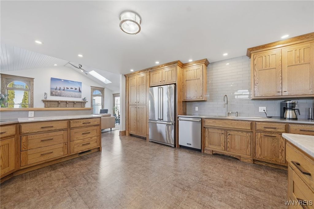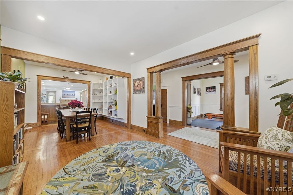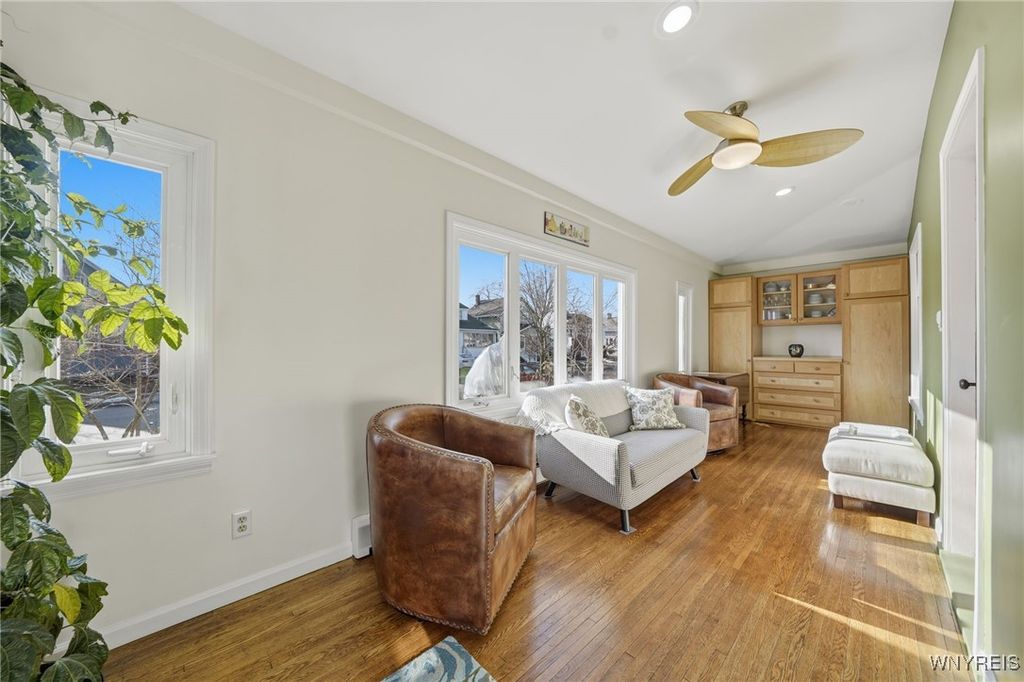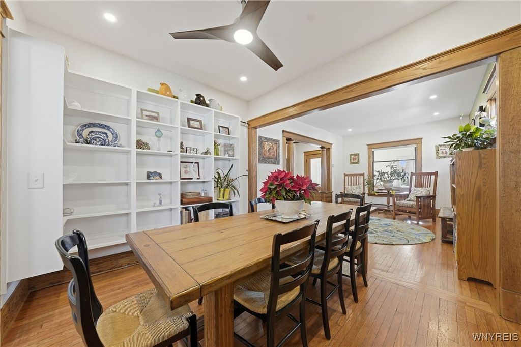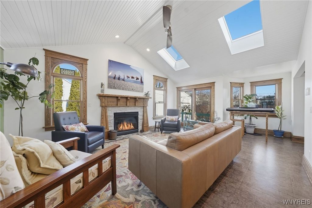 93 North End. Showings begin at an Open House Thursday 1/15 @ 5-7:00 PM. Offers will be reviewed starting Wednesday 1/21 at the end of the day. This architecturally significant Kenmore home offers a layout unlike anything else in the Village"”designed with intention, scale, and connection at its core. Originally conceived as a luxury in-law suite and later reimagined as a grand entertaining wing, the expansive addition was thoughtfully transformed into a space built for real life: family gatherings, meaningful celebrations, and effortless everyday living. The remarkable addition flows seamlessly from front to back, using intentional sightlines and framed views to draw the outdoors in. At the heart of the space is a true cook's kitchen"”professional-grade and purpose-built"”with a Viking appliance suite, dual sinks, reverse osmosis water system, custom spice and knife storage, and stainless steel sinks and countertops crafted for durability and cleanliness. Custom cabinetry, handcrafted by artisans from Fort Erie, anchors the space with timeless design inspired by early 20th-century architecture and subtle Frank Lloyd Wright influences. Designed to entertain 4 or 40, the adjoining living area features a striking fireplace, vaulted ceilings enhanced with warm wood detailing, preserved skylights, and radiant heated floors"”an undeniable luxury during Buffalo winters. Every material choice was made with comfort, longevity, and authenticity in mind, from the industrial-style flooring selected for comfort while cooking to the rough-cut ash wood bar counters sourced from a local tree. The addition was carefully designed to enhance"”not compete with"”the original home. Existing and new windows were framed to match the home's classic character, maintaining architectural integrity throughout. This is more than a home"”it's a once-in-a-generation Village property where thoughtful design meets meaningful living. A rare opportunity to own a Kenmore classic that blends historic charm with 21st-century luxury, scale, and soul. Built for dinner parties, holidays, and memories that last a lifetime"”welcome to the ultimate Village entertainer's home.