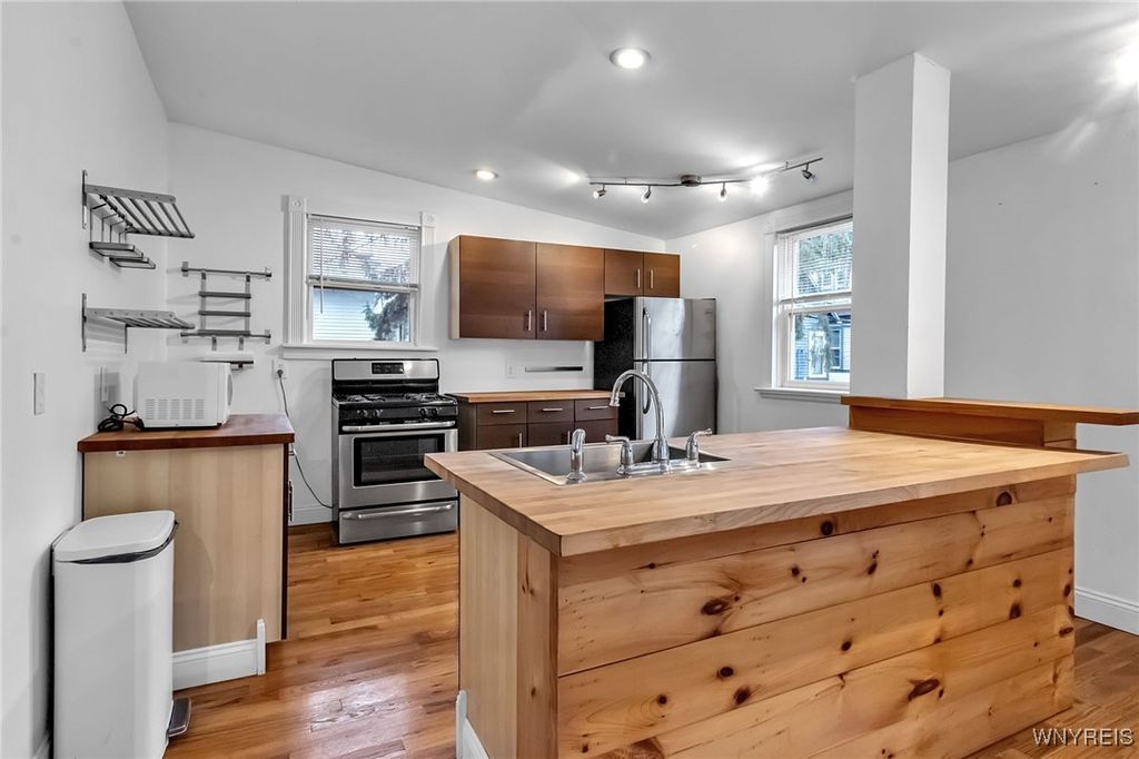Spectacular, two-story 4-Bedroom apartment in prime Elmwood Village location! Located on one of Elmwood Village's most desirable streets, this apartment is just steps from the Lexington Co-op, cafes, restaurants, and local shops. Very well maintained 4-bedroom, 2-bath apartment spans the 2nd and 3rd floors. Stunning open floor plan with modern kitchen includes artisan cabinetry, stainless steel appliances, island with seating, and a generous eat in area. Large family room with bay window! Beautiful hardwood floors throughout. Upper level includes carpeted bedrooms and tile bathroom. Abundant natural light fills the entire space! Updated windows throughout provides efficiency and comfort. On-site laundry and dedicated basement storage. Professionally cleaned and ready for immediate occupancy!