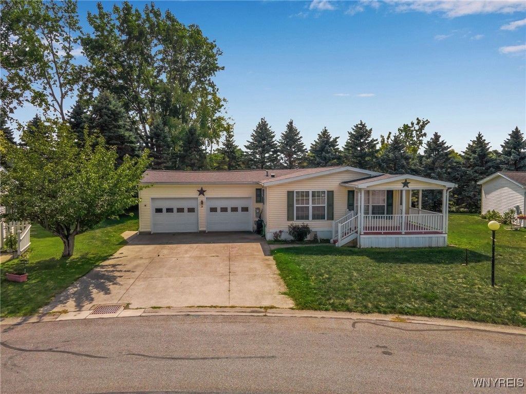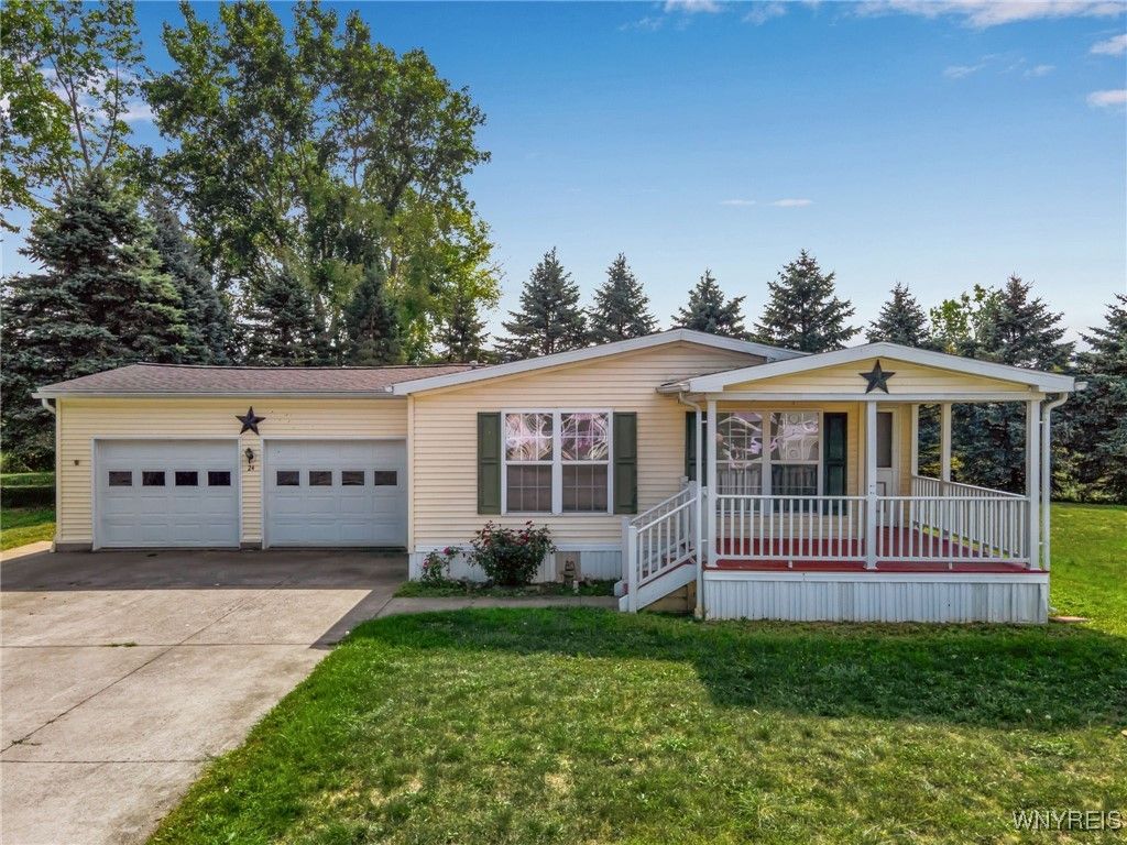 66 W Main St, Lot #24 - Genesee Heights 55+ Community Beautifully maintained 3 bedroom, 2 full bath ranch style manufactured home in the desirable Genesee Heights 55+ community. This move-in ready home features a bright, spacious layout designed for comfort and convenience. Enjoy the ease of maintenance-free vinyl siding, a newer roof, and a welcoming covered front porch perfect for relaxing. The property includes a 2-car attached garage with a rear workshop space, providing plenty of room for storage or hobbies. Inside, the open floor plan creates a warm and inviting atmosphere, ideal for both daily living and entertaining. Don't miss this opportunity to own a low-maintenance, move-in ready home in one of the area's most sought-after communities!
