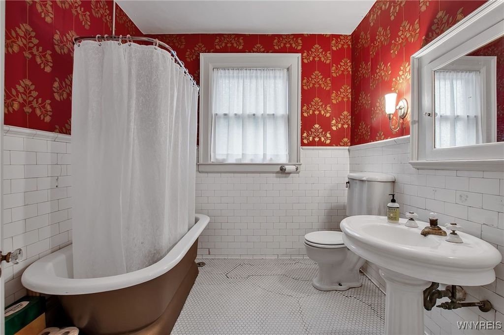 Truly spectacular Victorian home in the heart of the Elmwood Village. A welcoming front porch leads to an elegant foyer with classic wainscoting, a window seat, and stained-glass detail at the stairway landing. Glass-front French doors open to a gracious living room featuring a gas fireplace, custom built-ins, and large front windows offering abundant natural light. The formal dining room showcases built-in corner cabinets and beveled glass doors, opening to a bright and versatile sunroom or den overlooking the private backyard. The eat-in kitchen offers timeless cabinetry, tiled countertops, and all appliances included. An expansive primary suite features built-in storage, double closets, and an en-suite bath with tub/shower. Three additional bedrooms offer ample closet space, complemented by a full hallway bath with vintage tile and a classic tub. The finished third floor adds two bonus rooms plus additional storage, providing exceptional flexibility. Recent improvements include a hung sewer with pump system, new piping, sump pump, tear-off roof (2024), and significant electrical upgrades. Additional highlights include central air, a fully fenced yard, and a 1.5 car detached garage. An unbeatable location just steps from Elmwood shops and restaurants, Delaware Park, the theatre district, medical campus, and more. No showings or negotiations in advance of Open House, Saturday January 31 from 1-3pm. Seller reserves the right to set an offer deadline at the date and time of their choosing.