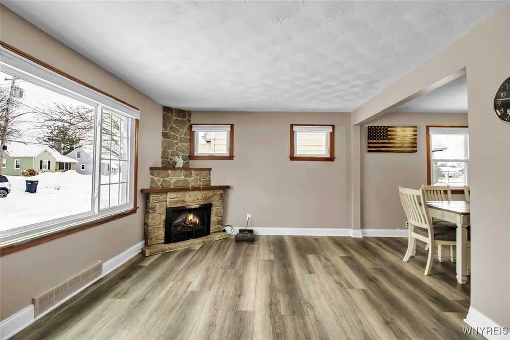 Welcome to this spacious and beautifully updated home in the heart of Niagara Falls! Offering 1,854 sq ft of living space "” this 3-bedroom, 2-full-bath property blends modern updates with functional living. Step inside to a bright and open first floor featuring brand-new LVP flooring throughout, a large living room, family room, and formal dining room, perfect for entertaining or everyday comfort. The renovated kitchen boasts new cabinetry and granite countertops, providing a clean, contemporary look with ample storage and workspace. Upstairs, you'll find three generously sized bedrooms and two full bathrooms, including a private en suite bath off the primary bedroom. The spacious primary suite showcases a vaulted ceiling and its own balcony porch, creating a unique retreat. Additional highlights include all new windows, a poured foundation, and an efficient layout throughout. Outside, enjoy a fully fenced yard and a large one-car detached garage with loft storage above, perfect for tools, hobbies, or seasonal items. Conveniently located near Hyde Park, Niagara Falls State Park, local shopping, dining, and major roadways, this home offers easy access to outdoor recreation, schools, and everyday amenities while being just minutes from the Falls and the Canadian border. A rare combination of space, updates, and location "” this move-in ready home is a must-see!