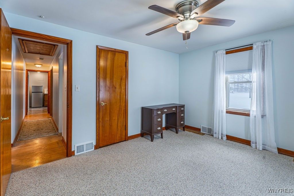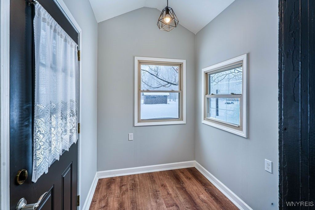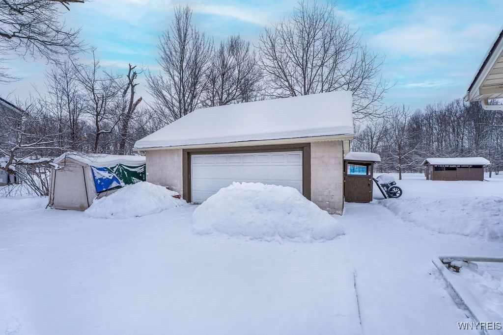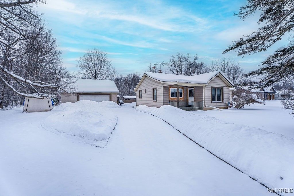 Check out this rare find! Welcome to this 3-bedroom, 1-bath home in Starpoint School District that offers 1,212 sq ft of living space set on a spacious 2-acre lot. The property features a wooded backdrop with no rear neighbors and a small man-made pond at the back of the lot, adding to the picturesque, park like landscape. Inside, the open floor plan creates a comfortable flow between the living and dining areas. New flooring in these spaces along with fresh paint throughout give the interior a clean, updated feel. In addition you will find hardwood floors under the existing carpets in 2 of the 3 bedrooms. Several key updates have already been completed, including replacement windows within the past 15 years and a full tear-off roof completed during that time as well. The home also offers a dry basement with glass block windows for added comfort and security. A notable feature is the oversized 3.5+ car garage with loft space, providing substantial room for vehicles, storage, or hobby use. Located in the Starpoint School District, this property offers a combination of land, privacy, and functional space both inside and out.