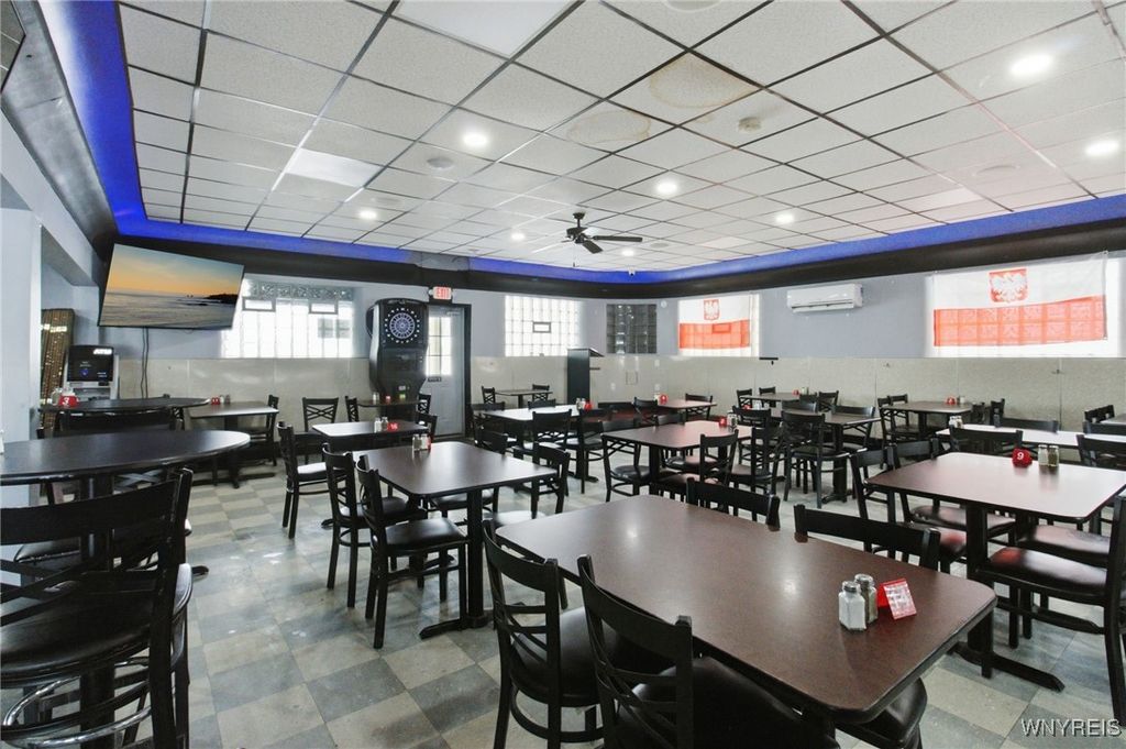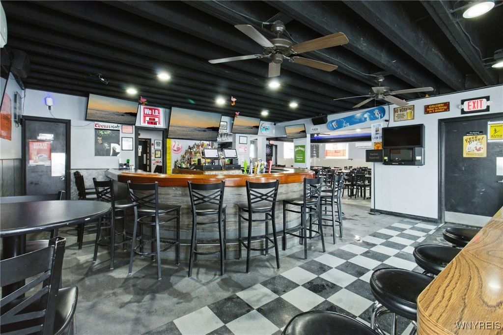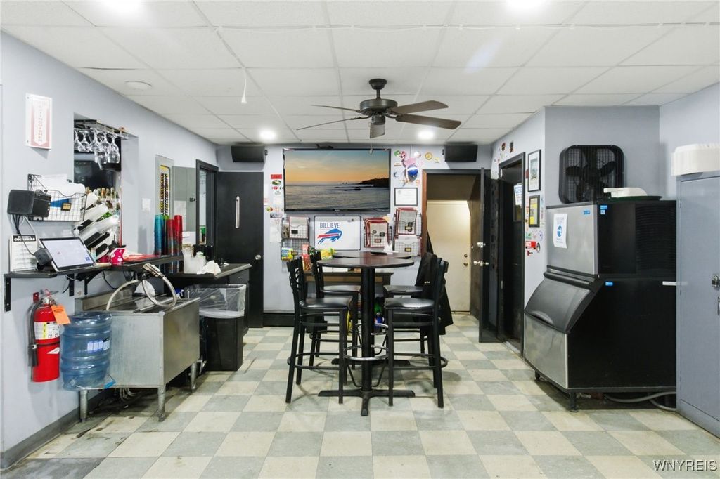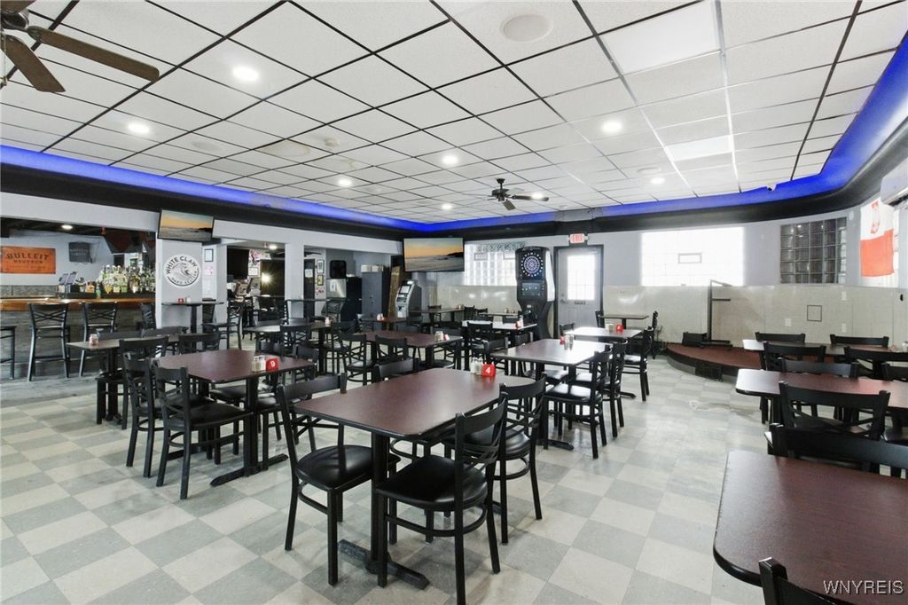 If you ever wanted to own your own business and generate rental income, here is your chance! Well-established neighborhood, Location on a visual corner, The dining room seats 140 people (48x40), two restrooms, and a Full Bar. There is a full Kitchen area, 25x20, with a 7x6 office area. The 1st upper unit was the old owner's residence. It has a 15x10 retro-style kitchen. The large living room is 22x16, and the dining area is 13x5. The master bedroom is 18x12 with a full wall closet. The second bedroom is 12x11 and has access to the rear stairs. The unit also has access to the full attic above the Bar. Unit 2 has a separate entrance, featuring a sunroom 24x10 that overlooks the backyard, an updated kitchen 12x11 with an 11x11 dining area, a spacious 21x11 living room, and two bedrooms 14x11 and 11x9. The property is a fully fenced yard with a 2-car garage and a backyard patio area!