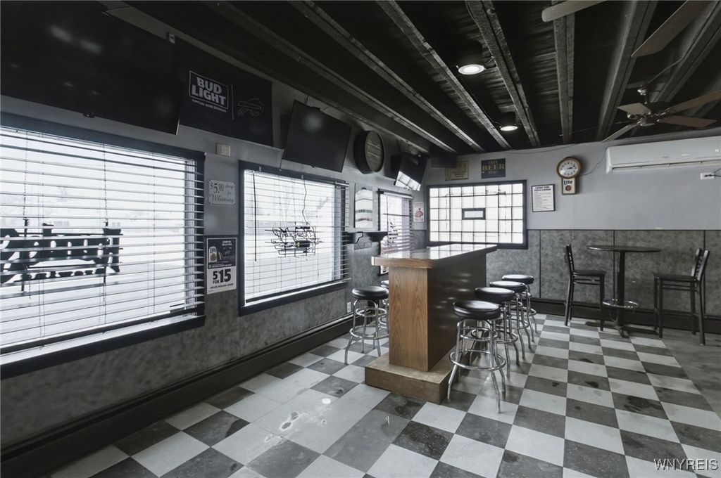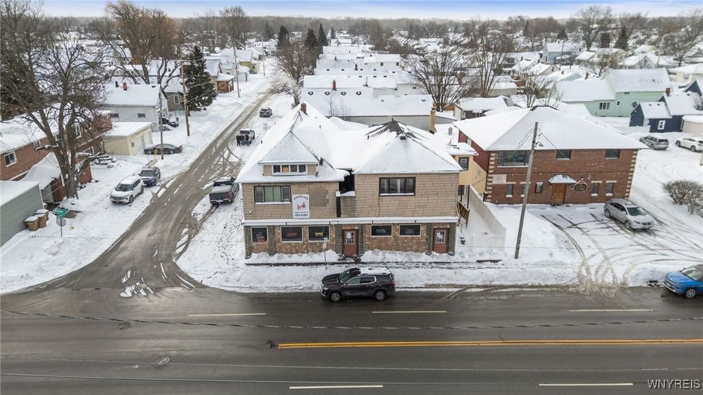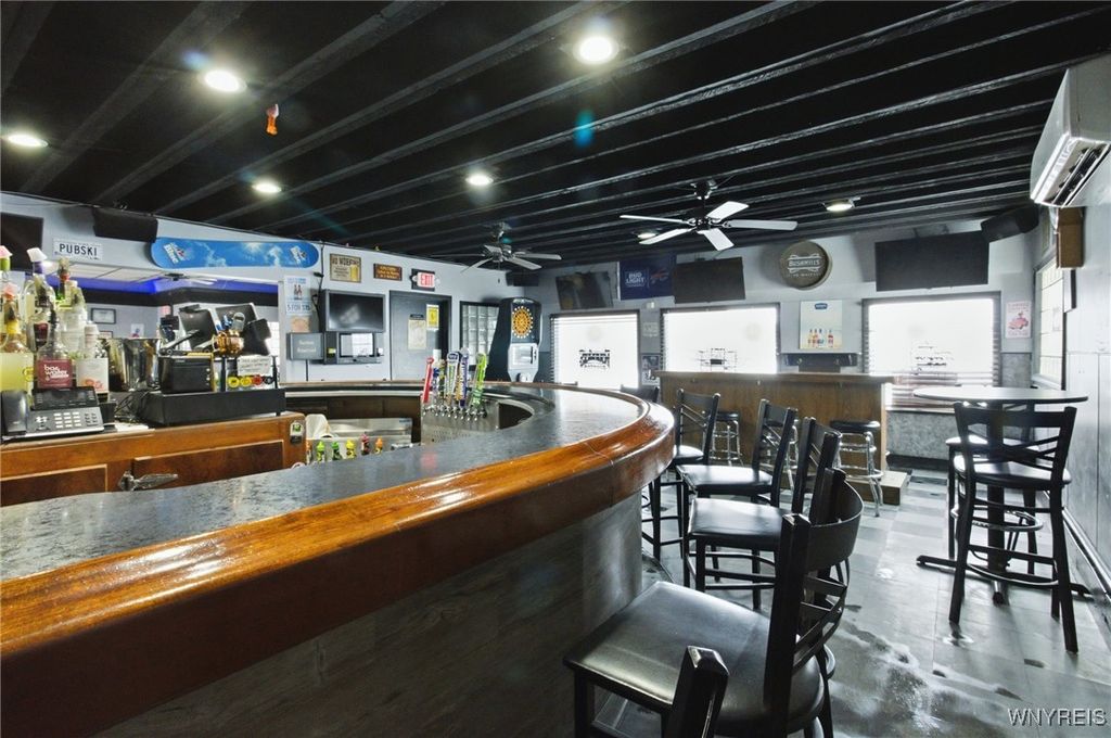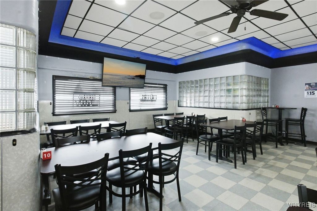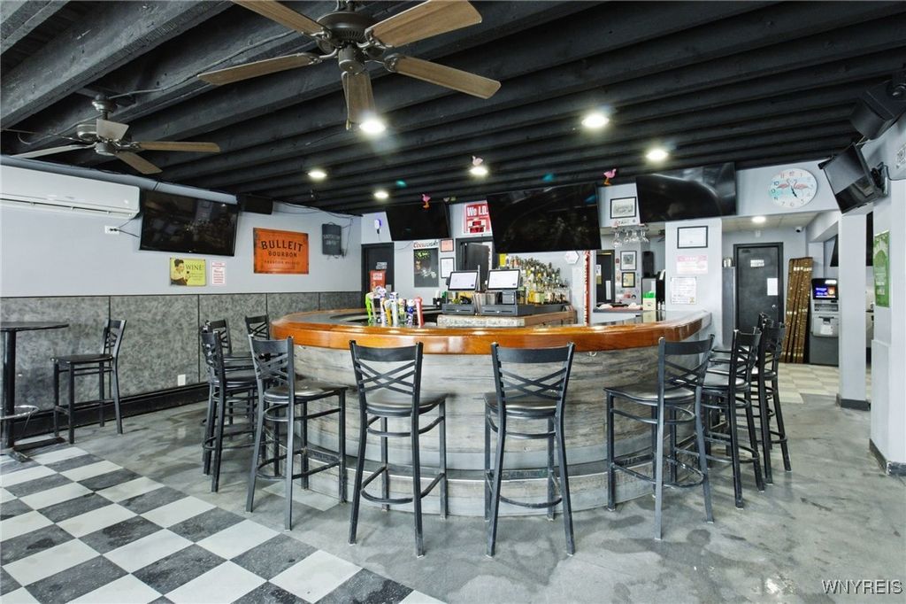 If you ever wanted to own your own business and generate rental income, here is your chance! Well-established neighborhood, Location on a visual corner, The dining room seats 140 people (48x40), two restrooms, and a Full Bar. There is a full Kitchen area, 25x20, with a 7x6 office area. The 1st upper unit was the old owner's residence. It has a 15x10 retro-style kitchen. The large living room is 22x16, and the dining area is 13x5. The master bedroom is 18x12 with a full wall closet. The second bedroom is 12x11 and has access to the rear stairs. The unit also has access to the full attic above the Bar. Unit 2 has a separate entrance, featuring a sunroom 24x10 that overlooks the backyard, an updated kitchen 12x11 with an 11x11 dining area, a spacious 21x11 living room, and two bedrooms 14x11 and 11x9. The property is a fully fenced yard with a 2-car garage and a backyard patio area!