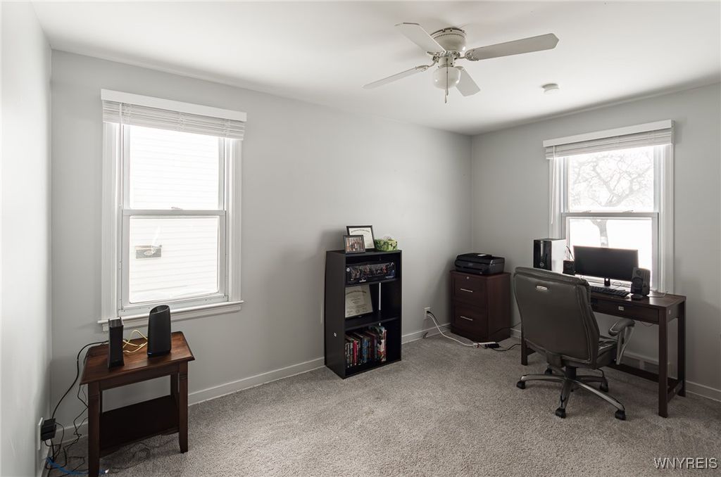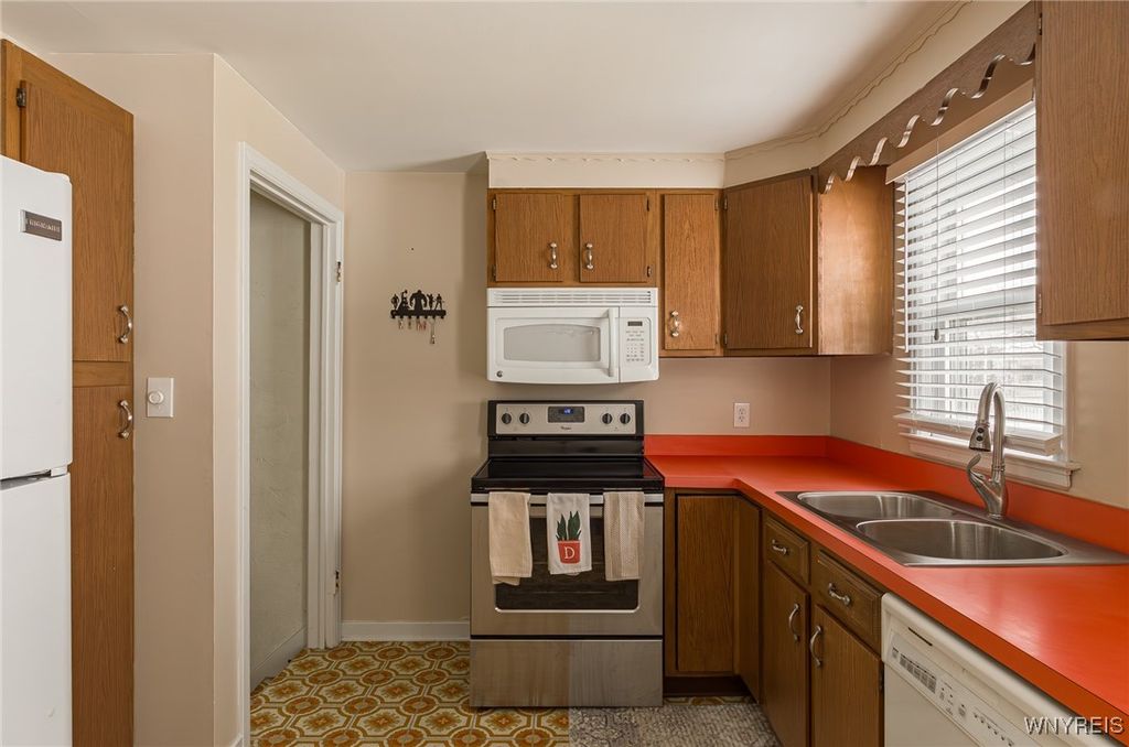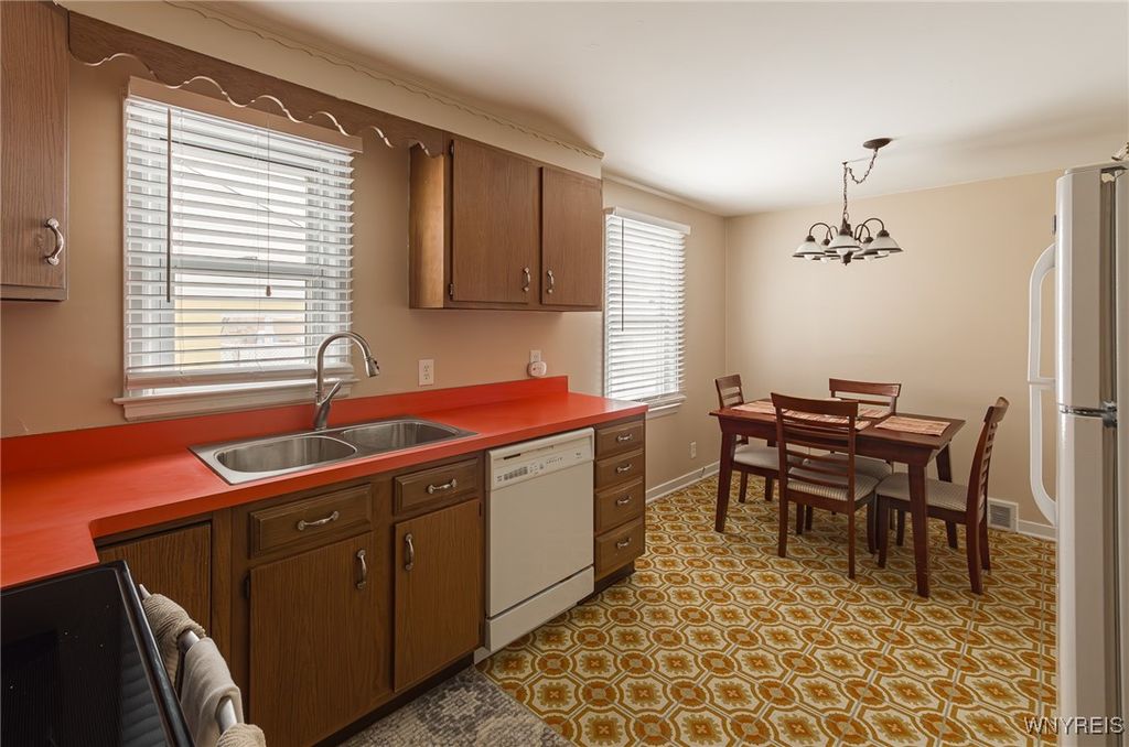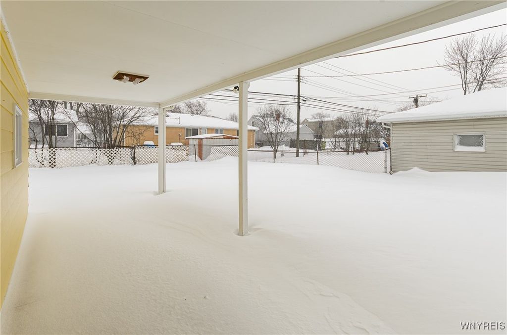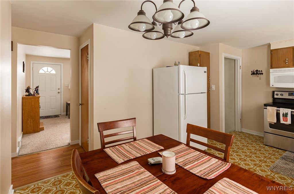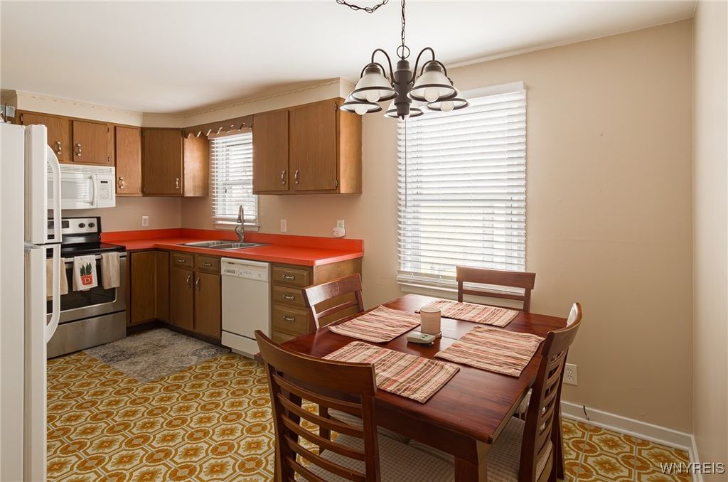 Well-maintained ranch in the Town of Tonawanda, located on a quiet street with numerous improvements throughout. The low-maintenance exterior features vinyl siding, vinyl windows, and a full tear-off roof completed in 2018. A long driveway leads to a 1.5-car garage, and the fully fenced yard offers a covered patio alongside the garage and a gravel fire pit"”ideal for outdoor entertaining.The eat-in kitchen showcases cheerful color accents and plenty of personality. The bright, modern bathroom was fully gutted and updated in 2017. Three carpeted bedrooms provide ample closet space, and the cozy living room completes the main level. The basement rec room adds valuable bonus space to suit a variety of lifestyles.Major mechanical improvements include a furnace and central air (2018) and a hot water tank (2019). Move-in ready"”showings begin immediately- Negotiations will begin Tuesday Feb 10th at 1pm.