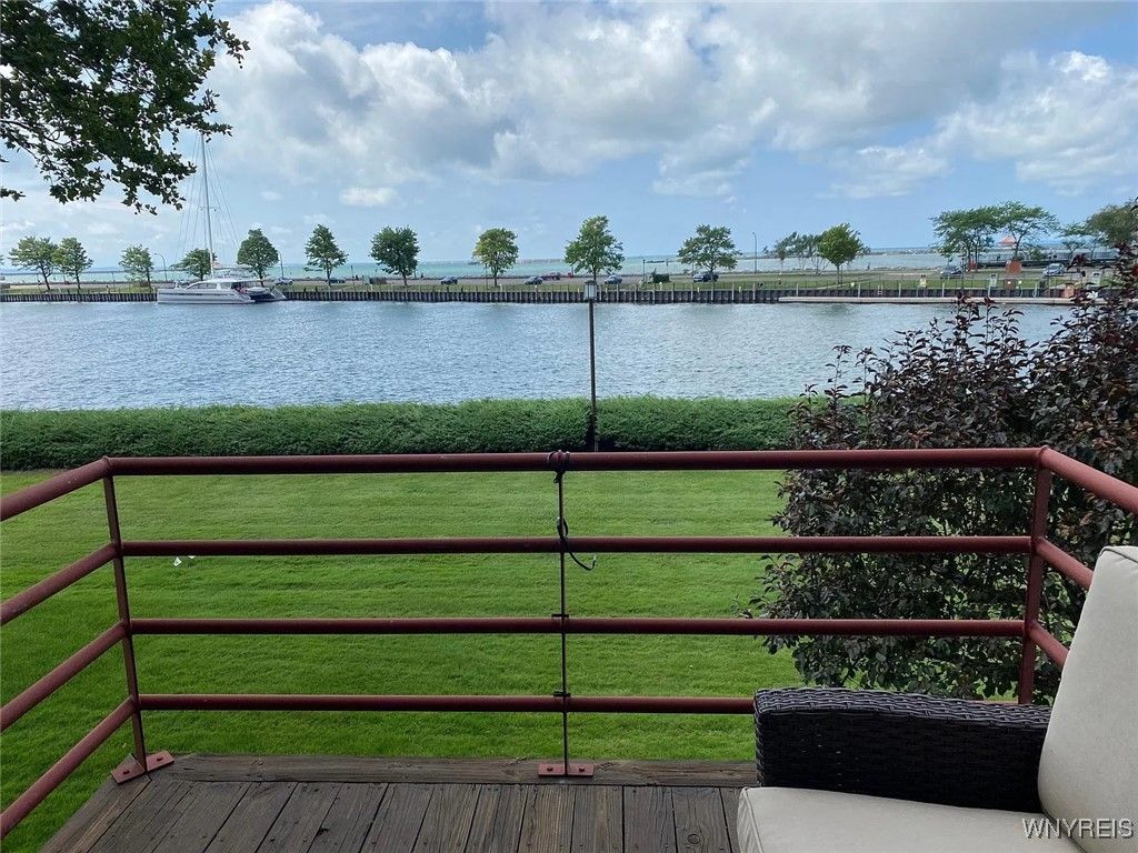 Sophisticated waterfront living awaits in this exceptional, 3-bedroom, 2.5-bath residence in highly sought-after Waterfront Village. Designed for comfort and style, the home features an open-concept layout, a chef's kitchen with premium appliances, and generous living and dining spaces ideal for everyday living or entertaining. Living Room has built-ins and a gas fireplace to savor the year-round gorgeous Lake Erie sunsets. Enjoy three private balconies, including two with sweeping views of the Erie Basin Marina and Lake Erie, and a third with a city view! The spacious primary bedroom has an en-suite bath with a balcony overlooking the Lake and Marina as well. Partial hardwood floors and custom California Closets. Additional highlights include garage parking, in-unit laundry, and direct access to waterfront paths and neighborhood amenities. Close to sporting events, restaurants and the new Ralph Wilson Park! Freshly painted. For security and comfort, there is a smart lock and Ring doorbell. A Nest thermostat monitors your comfort. Rent includes cable, internet, water, trash removal, snow removal. Tenant only responsible for gas and electric. Located in Marina Park Condominiums, there is a private tennis/pickleball court on the property; ample parking and a great lawn facing the marina and Lake Erie with views of Canada! Pets considered on a case-by-case basis. Weight limit of 30 pounds. Requires Board approval. One-year lease. No smoking. Tenant must complete application. Board approval of rental is required by the HOA. A very rare opportunity to lease a beautifully finished home in Buffalo's premier waterfront communities.