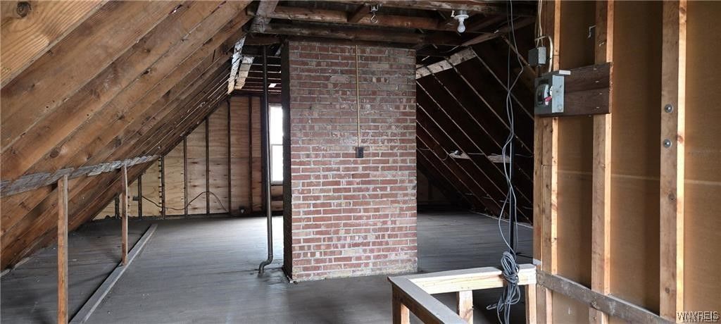 The possibilities are almost endless! This 2-unit building with full walk-up attic has been gutted to the studs. All ceilings, walls, bath fixtures, and flooring have been removed. Water is off. The only electric "on" is for the sump pump. Best to view during daylight hours. Both units can be 2 bedrooms and 1 bath each with "in-unit" laundry hook-ups. Owner had architectural plans drawn. Since 2019: Building was gutted, installed new vinyl windows throughout, exterior vinyl siding and complete (4 layer) tear-off roof with new decking, gutters and downspouts. Also, exterior perimeter drain tile installed.