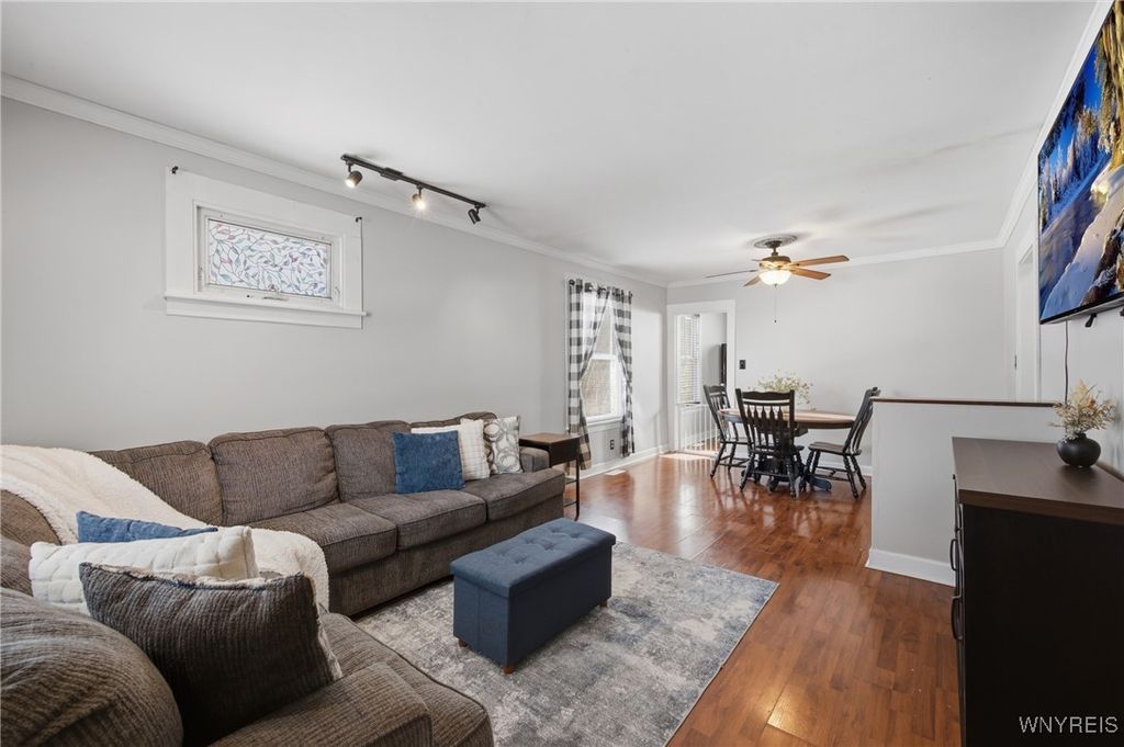Welcome to this well-maintained, move-in-ready home located on a quiet dead end street in the City of Tonawanda, offering a flexible layout and comfortable living spaces throughout. The main level features a bright living room with updated flooring and neutral finishes, flowing into a dedicated dining area ideal for everyday living and entertaining. The kitchen offers ample cabinet space, durable countertops, and includes appliances, with room for additional storage. The lower level features a private primary bedroom suite, providing separation from the main living areas and offering a spacious retreat with convenient access to the laundry and mechanicals. Additional bedrooms on the main level are well-sized and adaptable for guests, home office, or nursery use. Exterior features include a covered front porch, low-maintenance vinyl siding, and a attached garage with additional storage potential. The yard provides space for outdoor enjoyment in all seasons. Conveniently located near shopping, dining, parks, schools, and major commuter routes, this home presents a strong opportunity for owner-occupants or investors alike. Showings begin immediately.