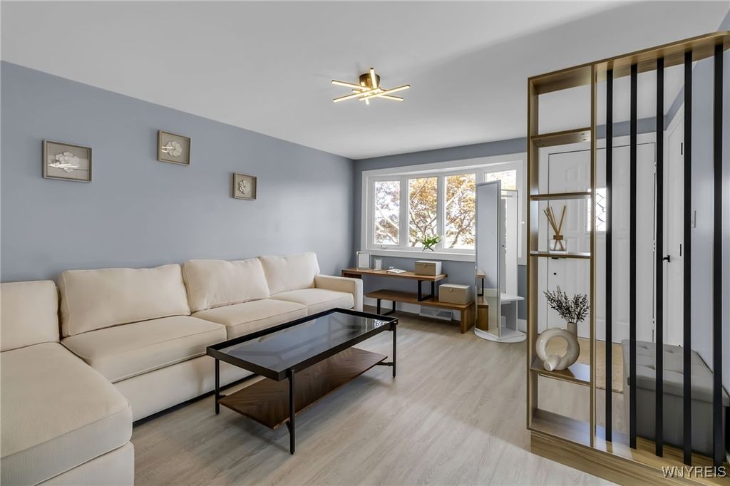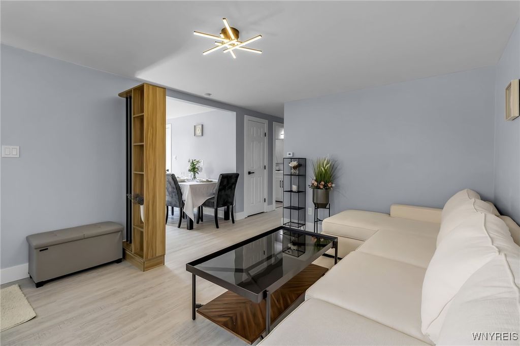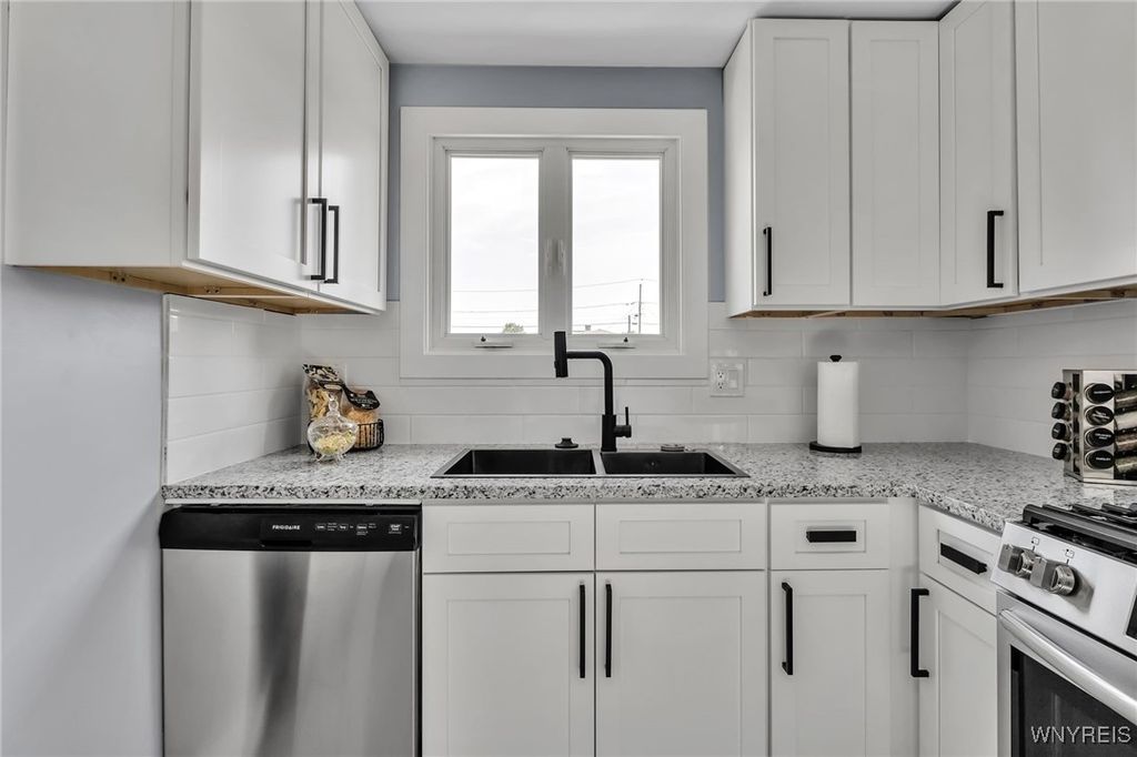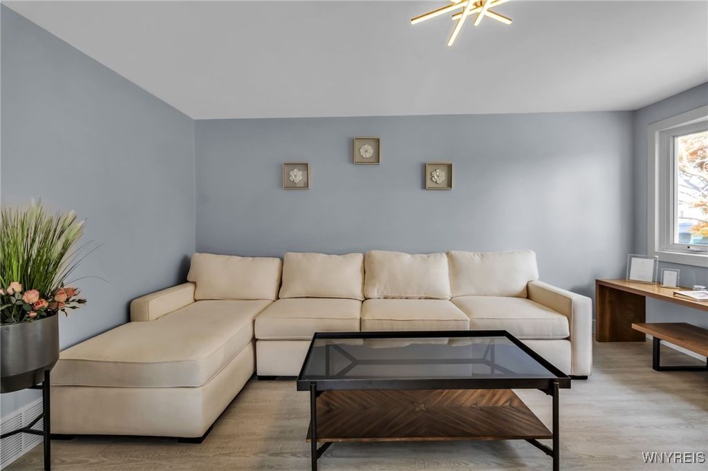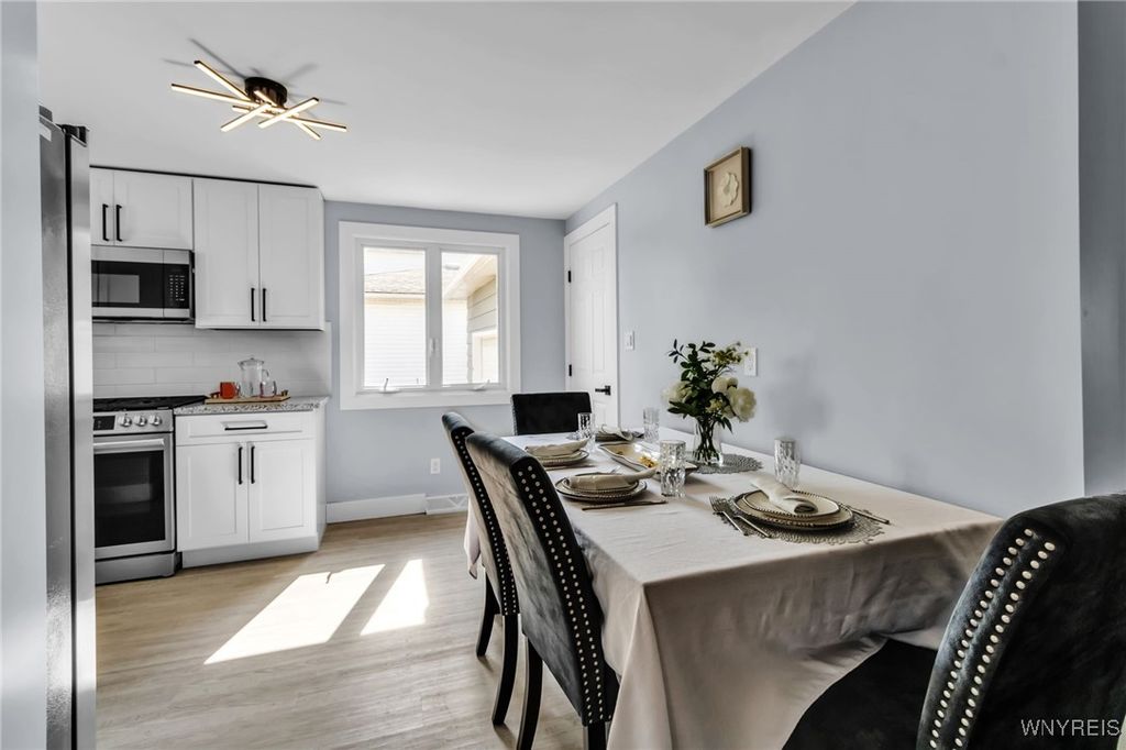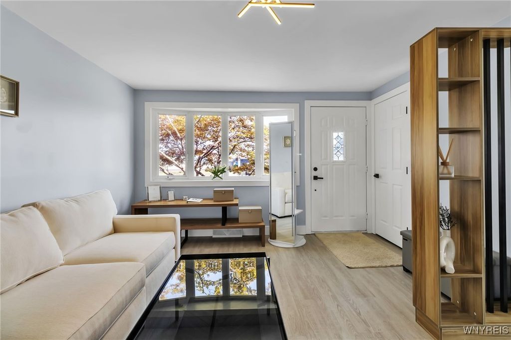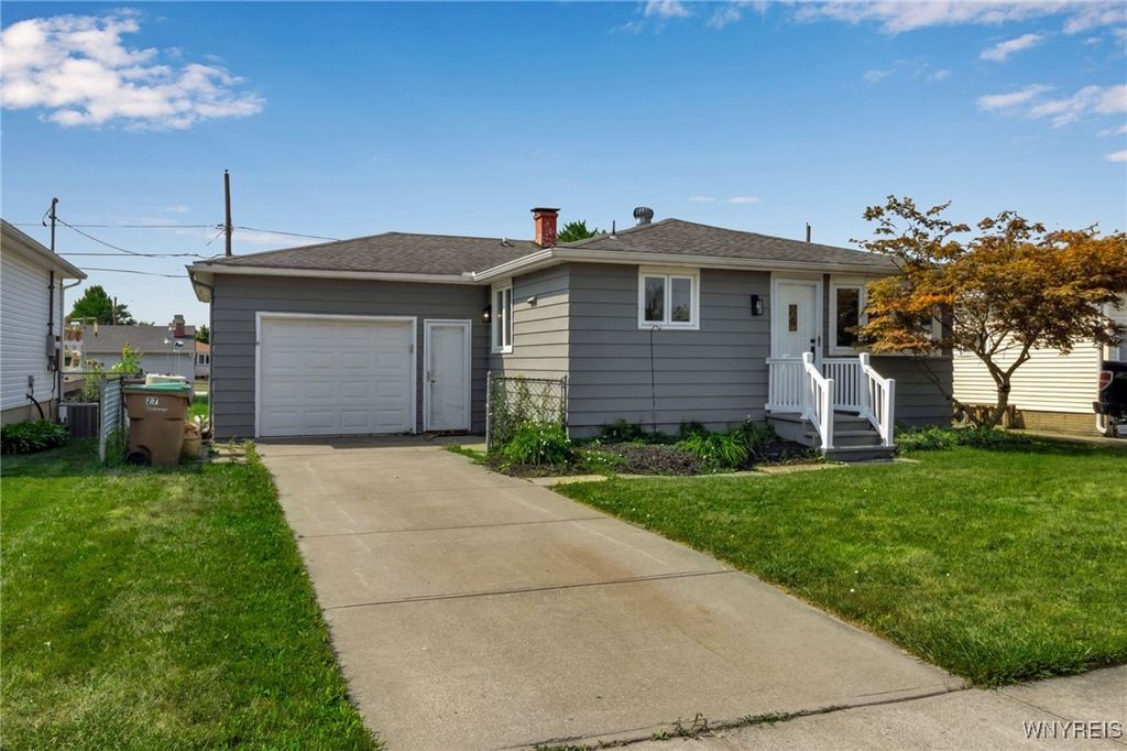 Welcome to 27 Basswood Drive in the Depew School District. This meticulously updated 3 bdrm 1 bath home is ideal for the first time home buyer or those looking to downsize. The front door welcomes you to the expansive living room that opens to the modern, eat-in kitchen, ideal for hosting. The kitchen showcases brand new white cabinets, a stylish tiled backsplash, granite counters and stainless steel appliances. Three spacious bedrooms each with ample storage space. Glamorous full bath with modern tile, LED mirror and double vanity. Enjoy outdoor living in the fully fenced backyard. Notable updates include a 2025-installed hot water tank, furnace, central A/C, electrical service fresh exterior paint, new vinyl front railings as well as ALL cosmetics. NO OFFER DEADLINE