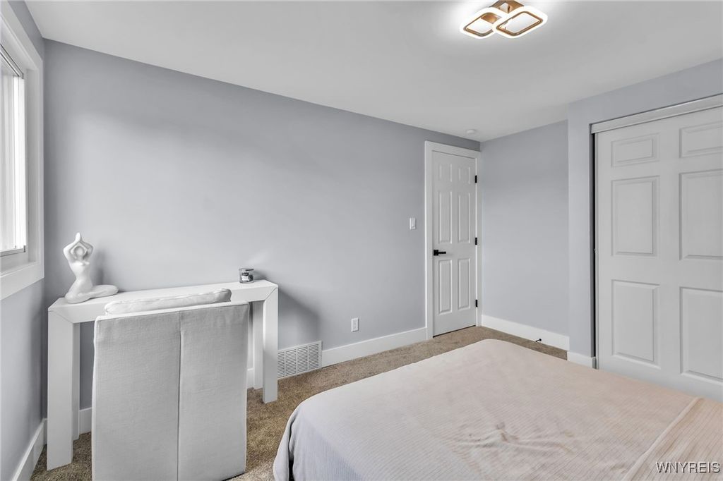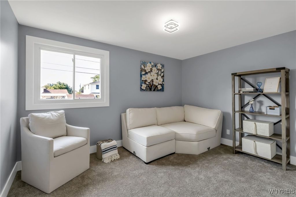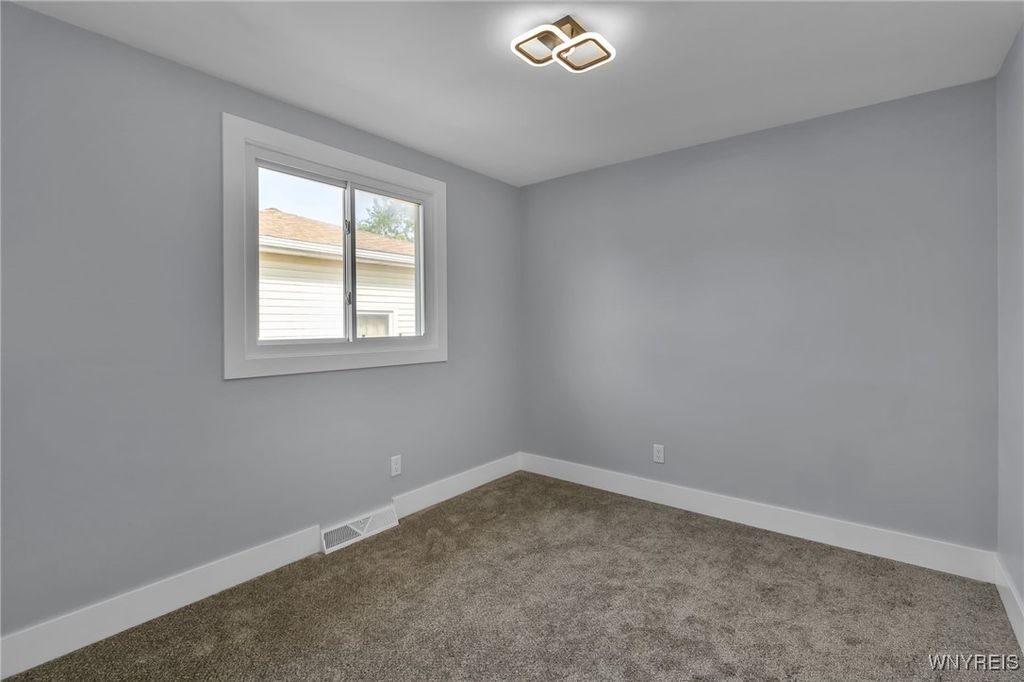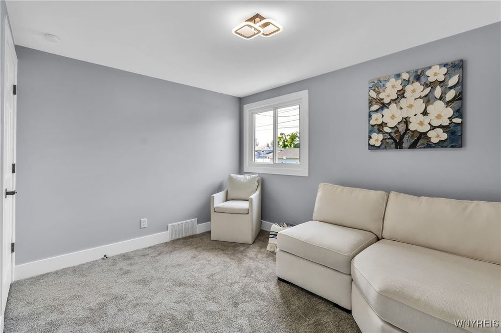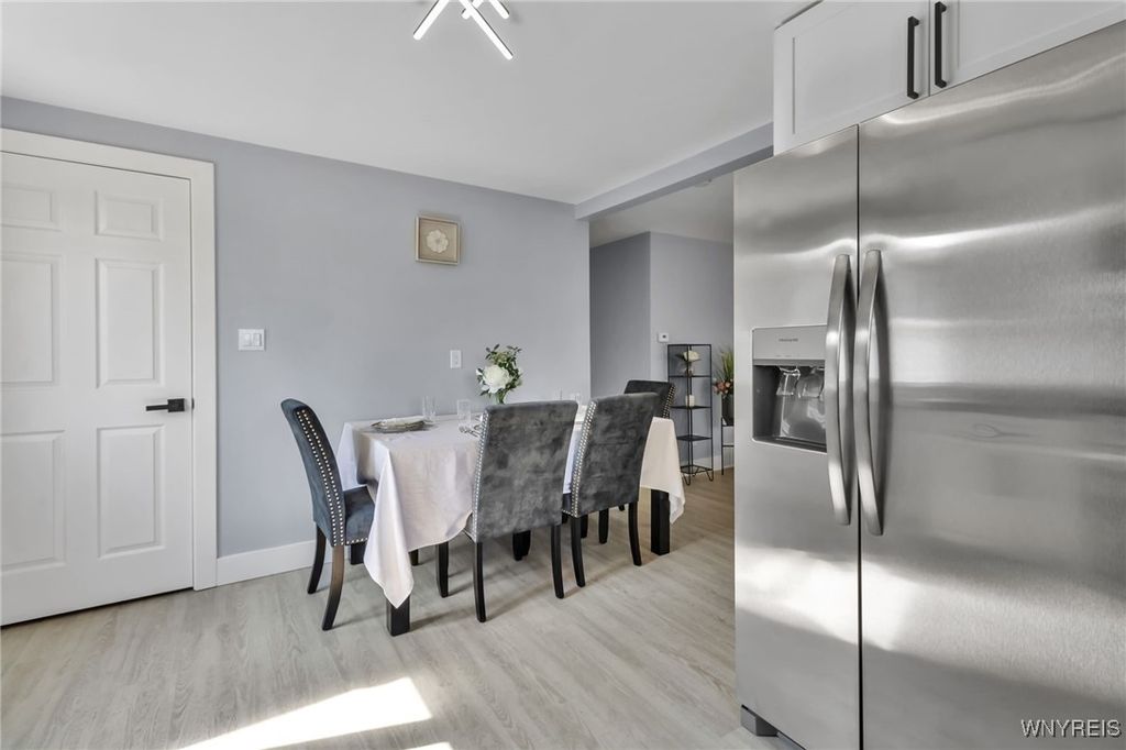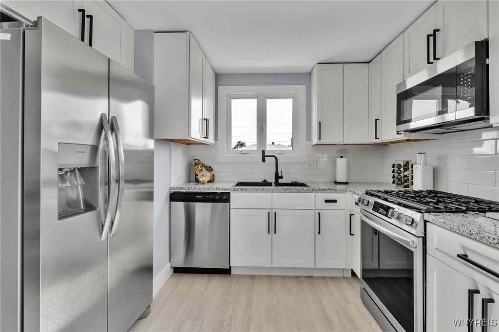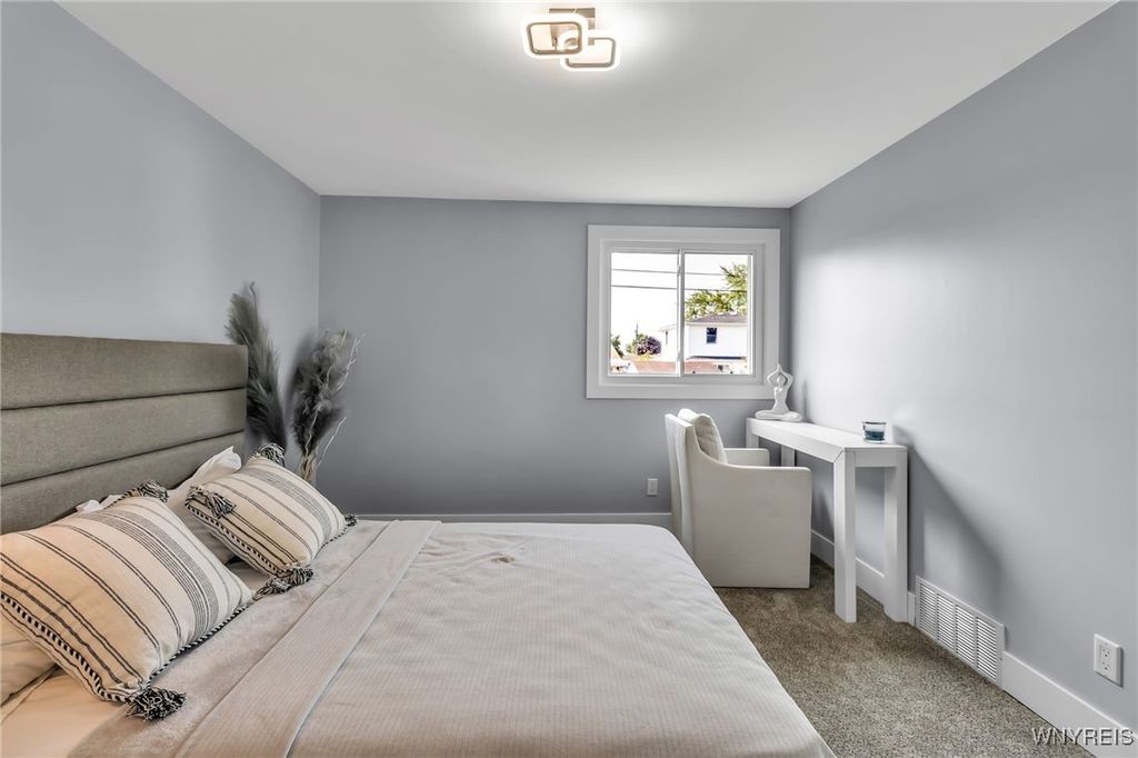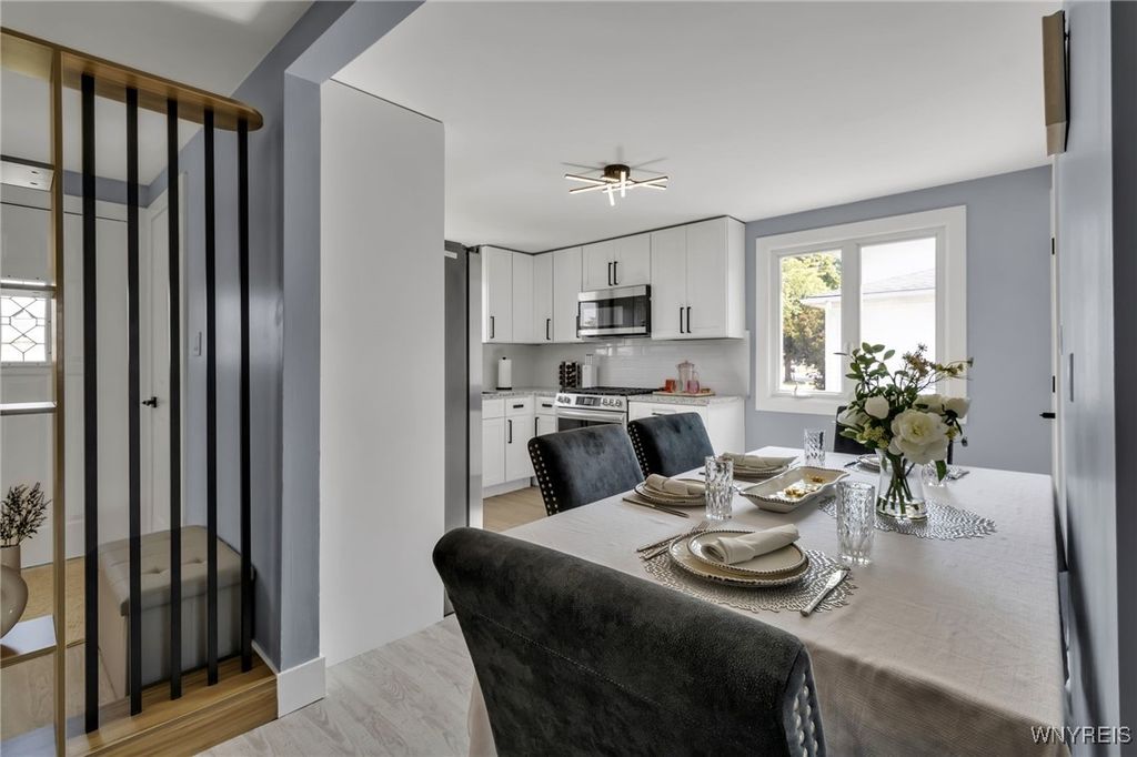 Welcome to 27 Basswood Drive in the Depew School District. This meticulously updated 3 bdrm 1 bath home is ideal for the first time home buyer or those looking to downsize. The front door welcomes you to the expansive living room that opens to the modern, eat-in kitchen, ideal for hosting. The kitchen showcases brand new white cabinets, a stylish tiled backsplash, granite counters and stainless steel appliances. Three spacious bedrooms each with ample storage space. Glamorous full bath with modern tile, LED mirror and double vanity. Enjoy outdoor living in the fully fenced backyard. Notable updates include a 2025-installed hot water tank, furnace, central A/C, electrical service fresh exterior paint, new vinyl front railings as well as ALL cosmetics. NO OFFER DEADLINE