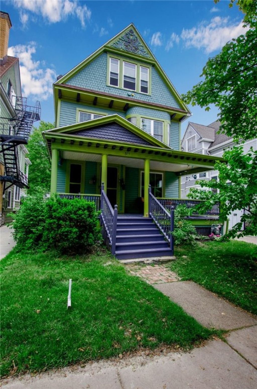 Gorgeous Victorian in sought after Elmwood Village with double wide driveway that can accommodate up to 4 cars!! Large open front porch enters into beautiful foyer with exquisite woodwork, half bath tucked under staircase. Formal sitting room with pocket door and lead glass window opens into formal living room with big bright windows and gas fireplace. Formal dining room with large cushioned bay window and built in liquor closet. William Morris wallpaper in kitchen and dining room. Ample kitchen with stainless steel appliances, LVT flooring and newer quartz countertops walks back into huge windowed walk in pantry! Exit out your back door to your private backyard with concrete patio for grilling, several raised herb/vegetable beds and fruit trees(2 apples, 1 peach, 1 persimmon). Upstairs you will find a light and bright large main bedroom with curved lead glass windows and three other nice sized bedrooms, all with ample closet space. Full bath with modern clawfoot soaking tub and modern vanity. Bonus bedroom and office/den/craft room in attic.Showings begin June 21st and offers are due Monday June 26th at 2pm. Please allow 24hrs for review of all offers.