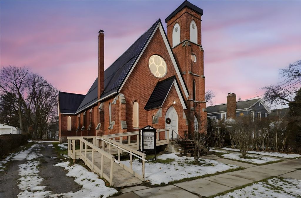 Let your ideas run wild as you step into history with this extraordinary opportunity to create a truly one-of-a-kind single-family residence. Formerly an iconic Baptist Church, this architectural gem is rich in character and brimming with potential for a dramatic and inspiring home transformation. At the heart of the building is a stunning original 1906 Barkhoff Church Organ Co. (Ohio) pipe organ, impeccably preserved and fully operational"”a rare and remarkable feature. The property's historical significance may qualify it for state and federal historic tax credits, offering valuable incentives for restoration and adaptive reuse. Recent updates include a brand-new metal roof, updated electrical and plumbing systems, and meticulously replicated 1869 front entry doors, all preserving the building's timeless craftsmanship while ensuring modern reliability. This is a rare opportunity to reimagine a historic landmark as a remarkable private residence, blending architectural heritage with modern living while shaping its next chapter.