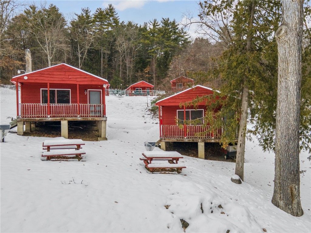 Investor Opportunity in Lake George. The Gold Eagle is for sale, a rare opportunity to own a well-established seasonal rental property in one of New York's most sought-after vacation destinations. The Gold Eagle has been family owned and operated for over 20 years and offers a proven setup for summer rental income just ½ mile from the Village of Lake George. The property includes a 4-bedroom, 2-bath main house with year-round living, featuring a living room with wood stove, dining area, kitchen, office/check-in space, and ample storage for cabin supplies. In addition, the property boasts 15 seasonal rental cabins, each equipped with a kitchenette (propane cooking), private front deck, and views toward Lake George directly across the street. Amenities include an in ground pool, small playground area, grills, outdoor furniture throughout the grounds, and plenty of parking for guests. Storage sheds, a one-car garage at main house, and a gas golf cart (included) support efficient property management. Situated on three lots totaling 5.67 acres, this property offers room for future expansion. Cabins operate seasonally from Memorial Day through Labor Day, while the main house is set up for year-round use. Taxes quoted include all three lots.