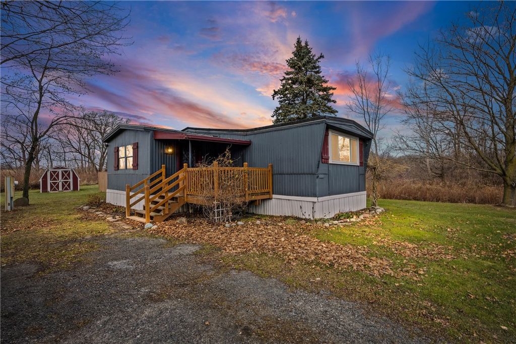 Open House: Sunday, January 4th, 10:00-11:30AM Affordable living with opportunity to add value! This 1983 manufactured home offers a functional layout with 2 bedrooms and 1 full bath, ideal for buyers seeking a manageable footprint and low monthly expenses. The eat-in kitchen features wood cabinetry and laminate countertops, opening comfortably into the main living space. Recent improvements over the last several years include new flooring, a double-sink vanity, and a double closet in the primary bedroom. The bathroom includes a convenient laundry area, maximizing efficiency and storage. Major components include a roof with 10+ years, furnace approximately 7 years old (professionally cleaned 2 years ago), and a hot water heater estimated at 3-4 years old. The front door is new. The refrigerator is approximately 5 years old. Dishwasher conveys AS-IS. Exterior features include a front porch and storage shed. Utilities include NYSEG electric, propane heat (leased through Superior with an active agreement), and sewer and trash included in the lot rent. Lot rent is $585.40/month, with water billed at $25 quarterly. Please note: replacement windows are needed, presenting an opportunity for future improvement.