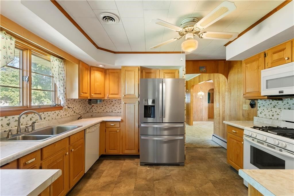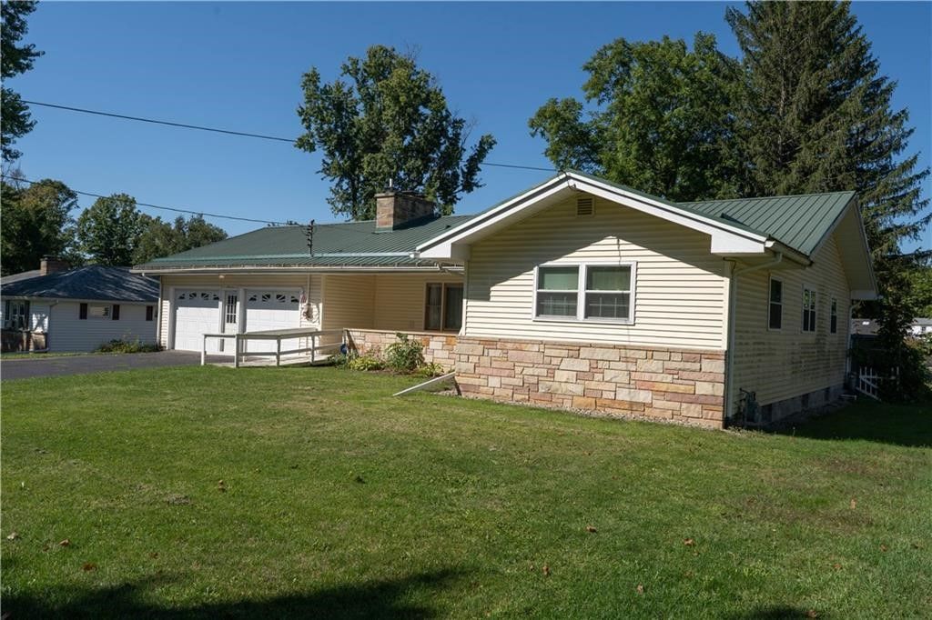 Welcome to this well-maintained ranch home in a prime Village of Arkport location! Featuring 3 spacious bedrooms, 1 full bath and 2 half baths, this home offers comfortable one-floor living with the added convenience of a first-floor laundry room located next to a half bath. The oversized living room is the heart of the home, highlighted by a custom fireplace-- perfect for cozy nights or entertaining. The kitchen features beautiful Amish-made cabinetry and a complete appliance package. The half-finished basement adds even more living and entertaining space with a bar and an additional fireplace. Outside, enjoy a fenced in backyard, covered rear patio, and the convenience of an attached 2 car garage. Additional highlights include central air, an updated metal roof, and a hot water heater approximately 5 years old. A solid home in a sought-after location-- this one checks all the boxes!