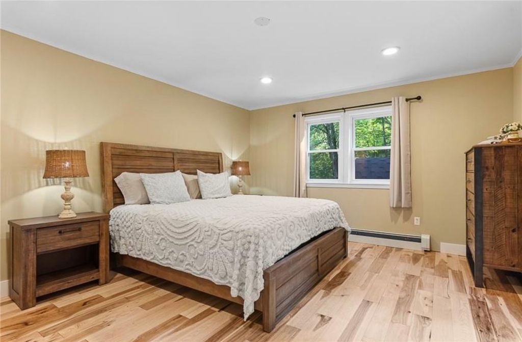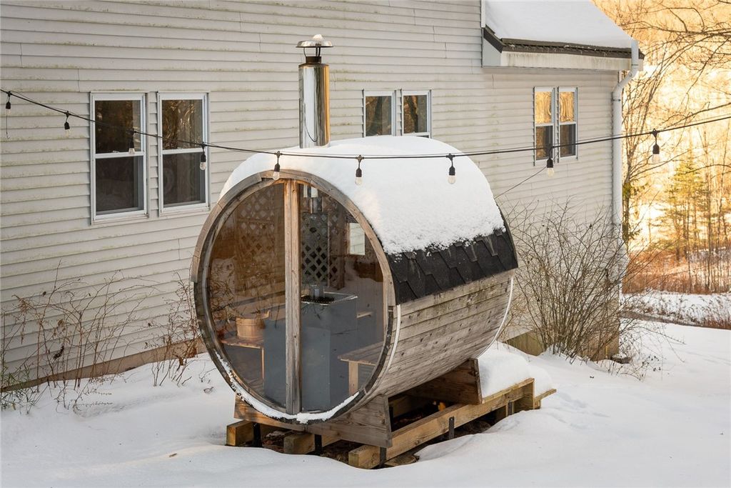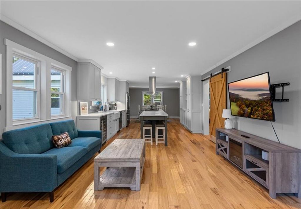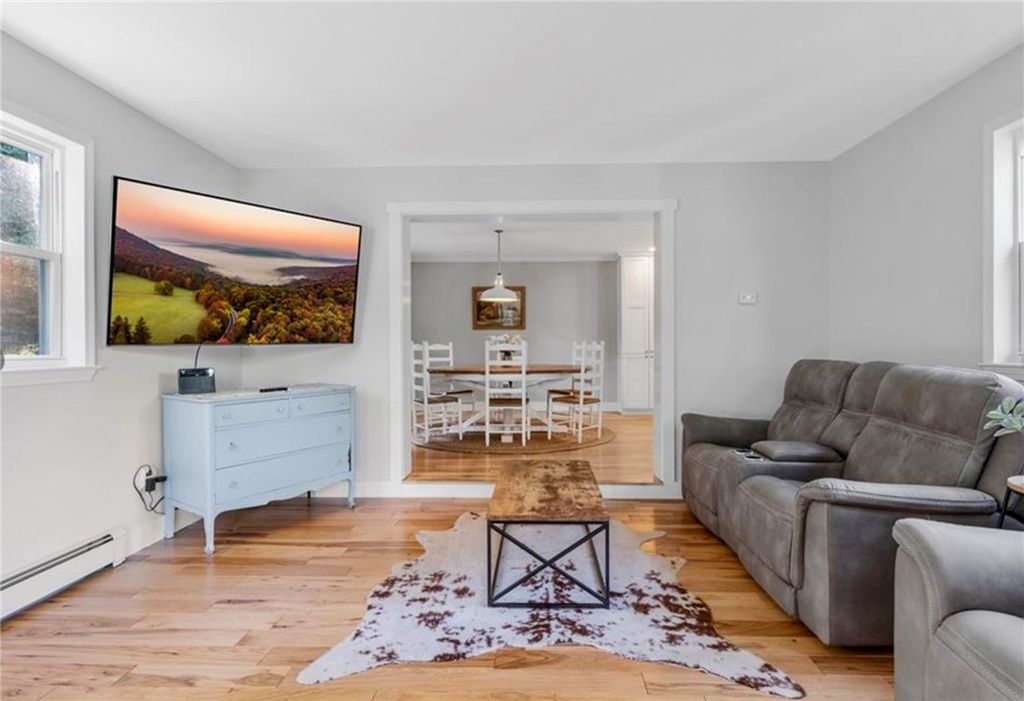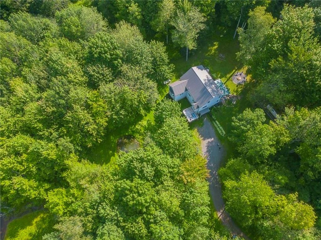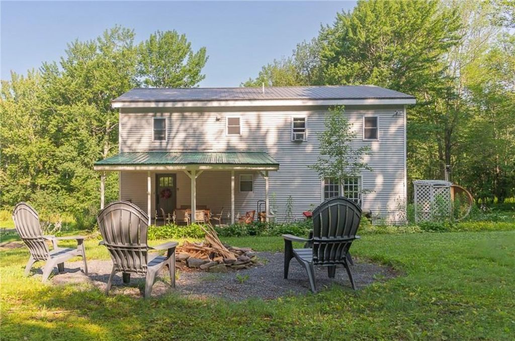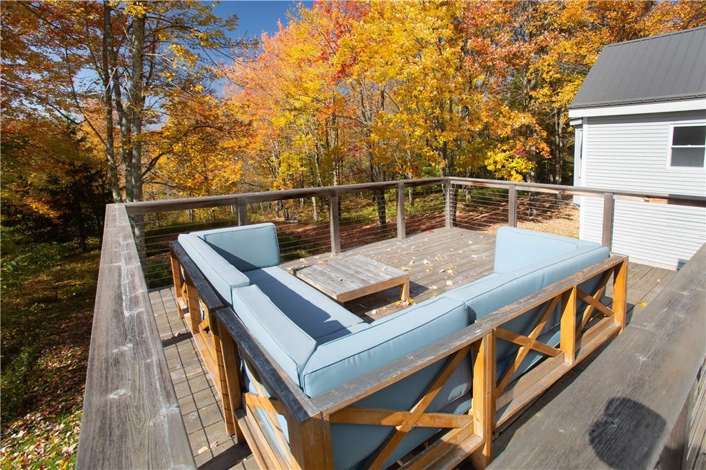 Set on 14.14 private acres at the end of a town-maintained dead-end road in the town of Bovina, this contemporary saltbox offers a rare combination of privacy, comfort, and proven short-term rental performance in one of the Catskills' most desirable destinations. The home is thoughtfully set back from the road, creating a peaceful sense of arrival while remaining easily accessible year-round. A covered front porch opens to a welcoming foyer with a half bath, laundry area, and access to the upper level. The main living space features an open-concept layout designed for both everyday living and entertaining, with a seamless flow between the living room, kitchen, and dining area. The kitchen is anchored by a large island with seating, solid-surface countertops, and quality appliances, making it equally functional for hosting guests or managing a rental property. Just off the dining area, a flexible family or media room overlooks the spring-fed pond and surrounding landscape, offering a quiet place to unwind. The first-floor primary suite is privately situated and includes its own outdoor access to a terrace and cedar barrel sauna, creating a spa-like experience that has been especially popular with short-term rental guests. Upstairs, a spacious secondary living area connects to three additional bedrooms, a full bath, and generous storage, allowing for comfortable accommodations for multiple guests or extended stays. The layout supports a variety of uses, from full-time residence to weekend retreat or income-producing property. The unfinished lower level and garage provide excellent storage and practical year-round functionality, with clear potential for a mudroom or gear space, ideal for Catskills The surrounding acreage provides ample space for recreation, privacy, and future possibilities, while the location offers convenient access to Delhi, Andes, and Stamford, nearby ski mountains, wedding venues, and the region's vibrant arts and food scene. With a strong rental history, a versatile floor plan, and a setting that captures the best of Catskills living, this property presents a compelling opportunity for both lifestyle buyers and investors.