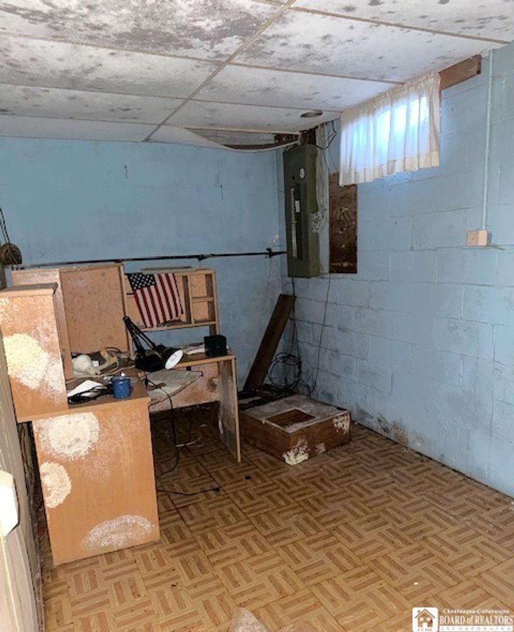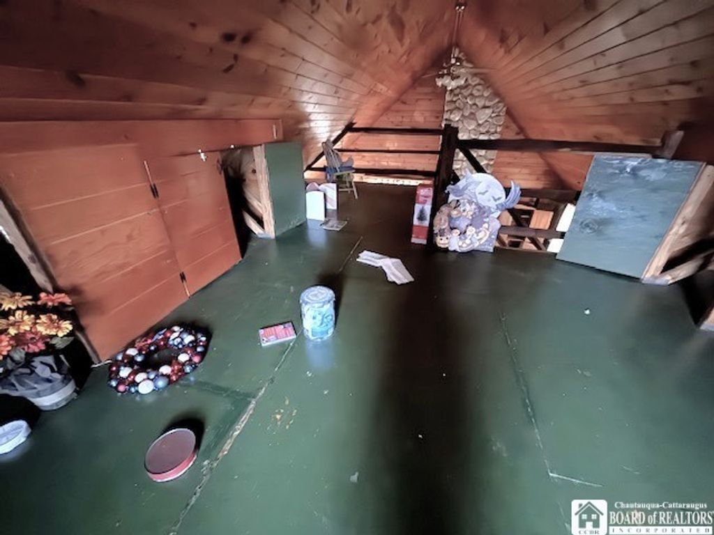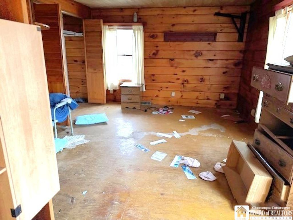 If you have ever wanted to find a cute little log home in the countryside on 21 acres for all the privacy you need, here is your chance! This Property needs work but it is priced accordingly! Ready for the tour? Come on in!: The ground floor has a kitchen, living room with fireplace, bathroom and bedroom. Upstairs is a loft and 2nd bedroom. A full basement has the laundry room and an office. Outside there is an old automotive shop, barn and garage offering potential for you to do hobbies, crafting, auto or boat storage or a repair side business. Due to extended vacancy we do not know what functions in the house and barns and what does not. Let your ideas work, think potential, it's a great start for your home in the heart of Chautauqua County! Chautauqua Lake is not too far, and the Chautauqua Institution is close by as well! Strap on your tool belt, get your design imagination going and transform this property into your little beauty! " For the first 30 day listing period of this property, the seller will only accept offers from Owner-Occupant Buyers, governmental entities, including their instrumentalities, and Nonprofit Organizations." This 30-day initial period ends on March 5, 2026. 12 of the acres on this rear parcel are wetlands...wetlands are great for hunting but are not buildable. Sold completely As-Is, Bank will not clean out house or garage, do any repairs or warranty well and septic- buyer's responsibility...Boundaries drawn are estimated boundaries and buyers are encouraged to have a survey done for accuracy.
