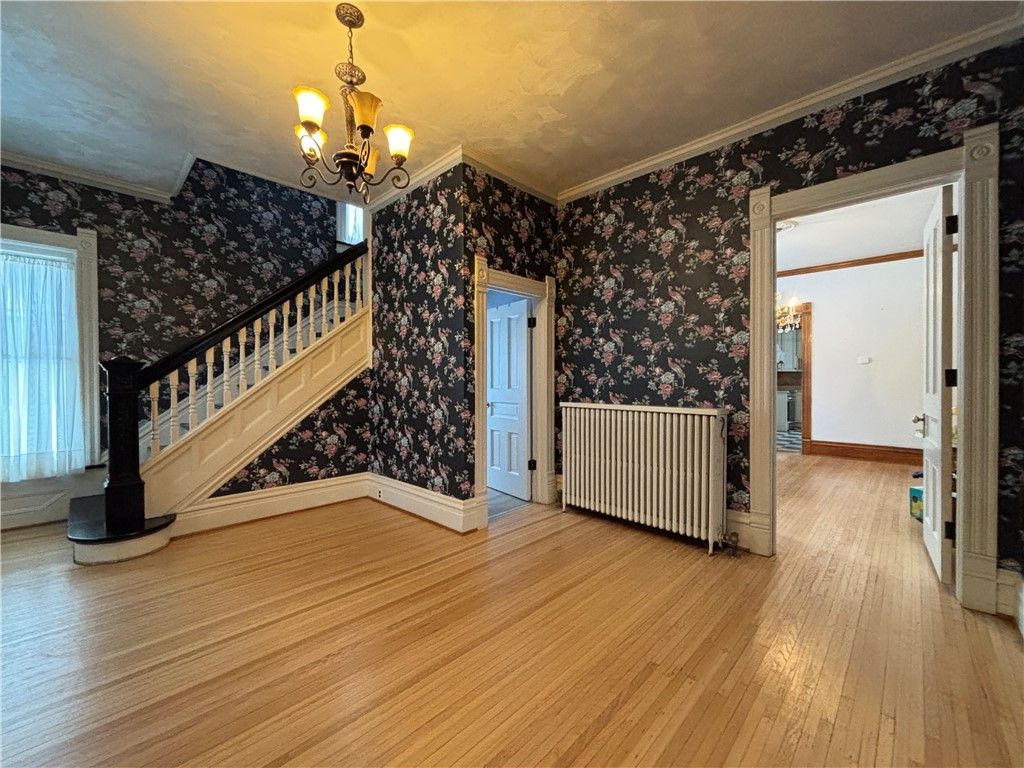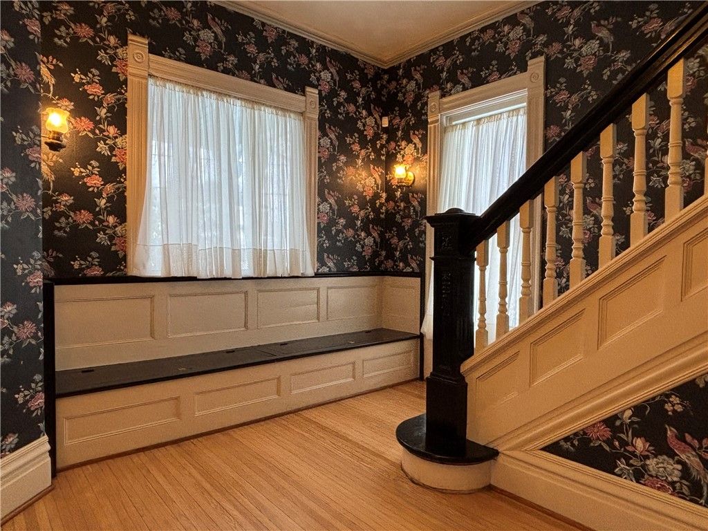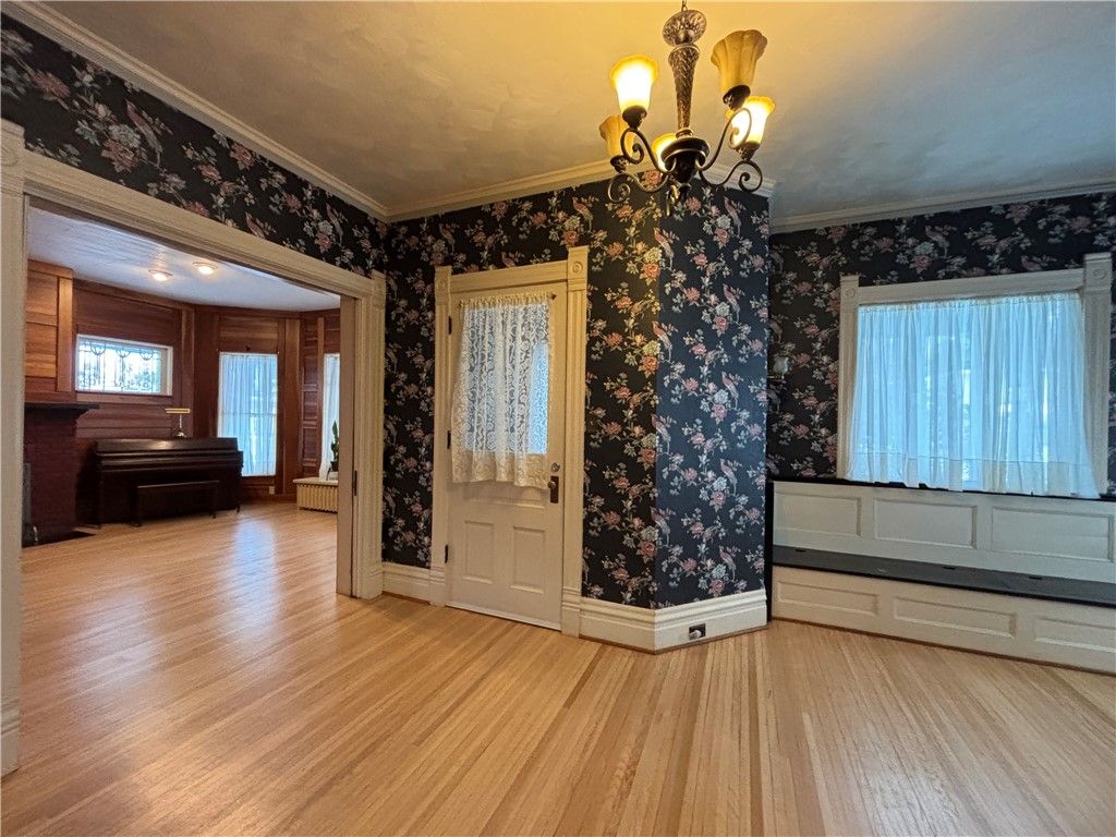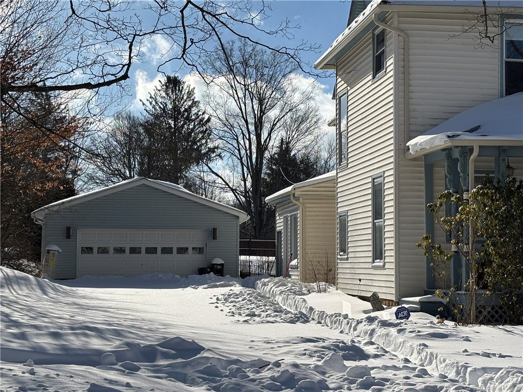 Elegant Victorian home with an impressive amount of living space offering 4 bedrooms, 2.5 baths, and all the conveniences of in town living on a generous .46 acre lot. There is a 2-car detached garage with a convenient location not far from the side kitchen entrance. The roof was replaced in 2013, adding peace of mind for years to come. A spacious foyer welcomes you inside, with a cleverly tucked-away half bath beneath the staircase. The extra-large kitchen provides abundant space and comes fully equipped with a refrigerator, gas range/oven, dishwasher, microwave, and garbage disposal. Heated floors in the mudroom add a touch of warmth and comfort during the colder months. A formal dining room, six fireplaces, two sets of pocket doors, and hardwood floors enhance the home's timeless charm. All four bedrooms include closets, and the second-floor laundry with washer and dryer keeps daily living convenient and out of sight from guests. Many recent improvements both inside and outside including refinished hardwood floors downstairs, new LVP upstairs, fresh paint throughout, upgraded appliances, windows, sewage lines, gutters, various fixtures, and much more! This home is heated with gas hot water radiator/baseboard heat, complemented by a supplemental wood boiler. Additional storage and potential await in the full basement and walk-up attic. Outdoor features include a covered wrap-around front porch, paver block patio, garden, double sized fully fenced backyard, and off-street parking on the blacktop driveway. Only 5 minutes from the Knox & Kane Rail Trail"”perfect for walking, biking, and weekend adventures.