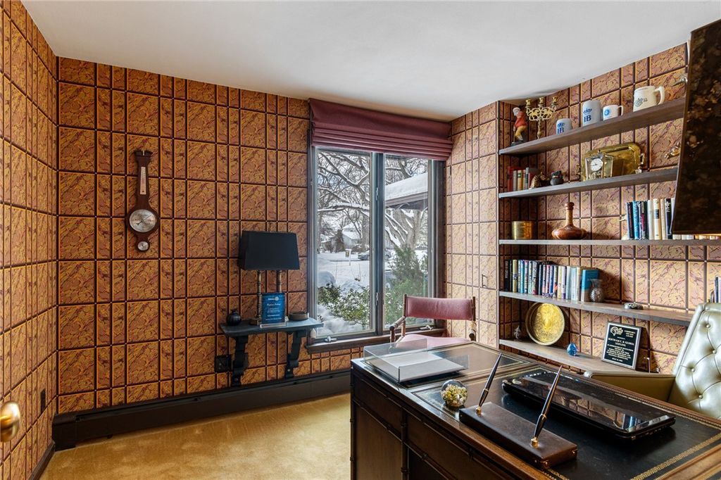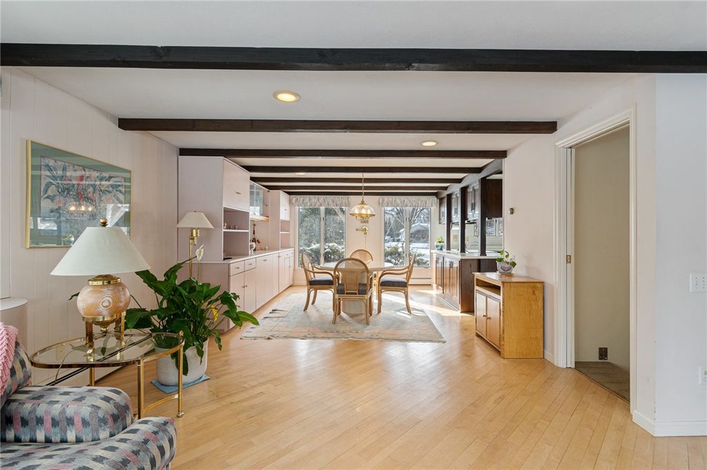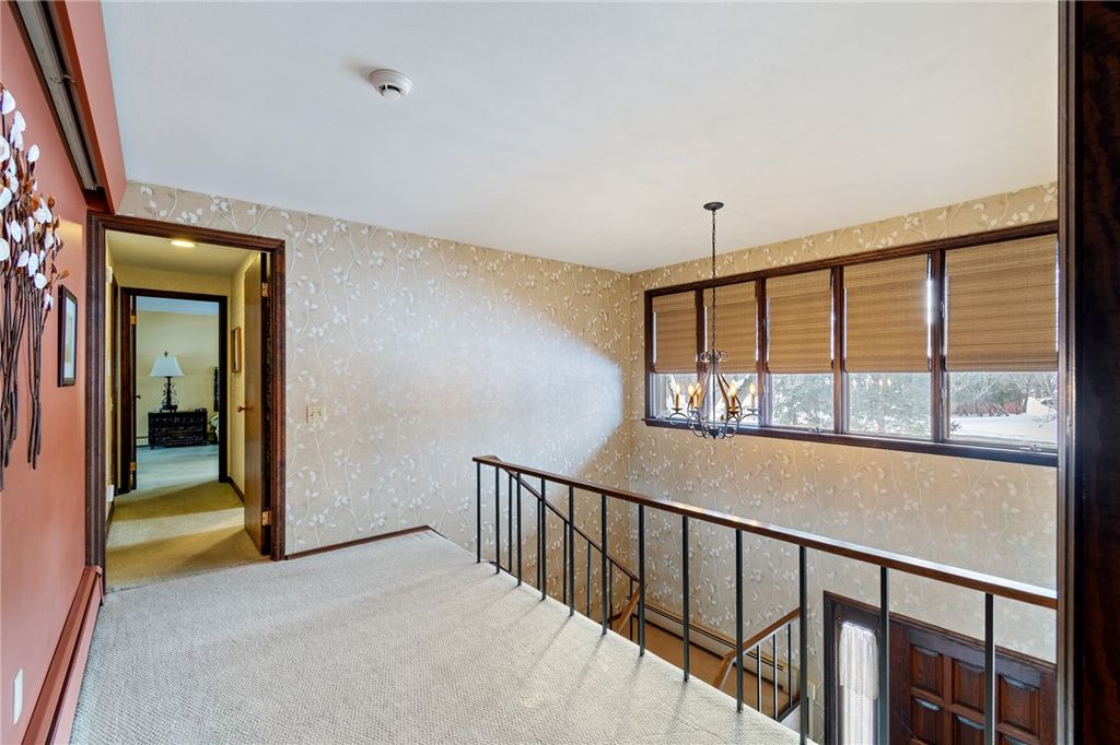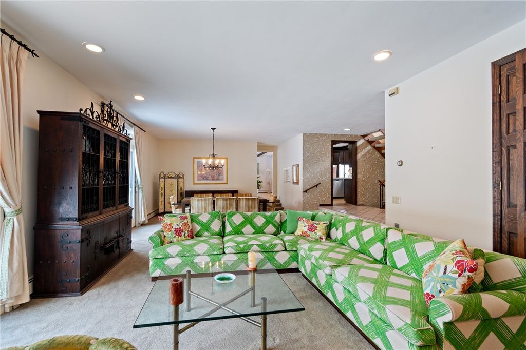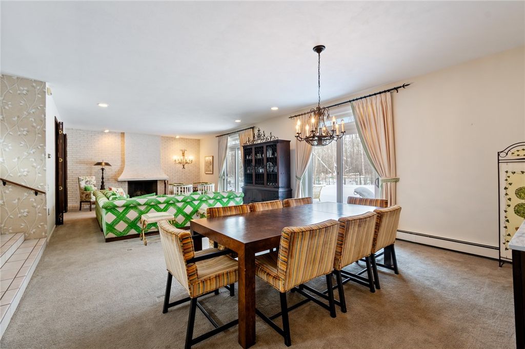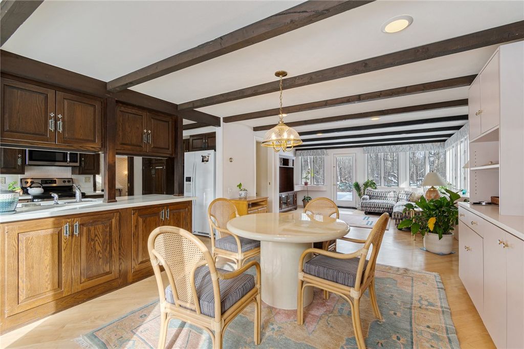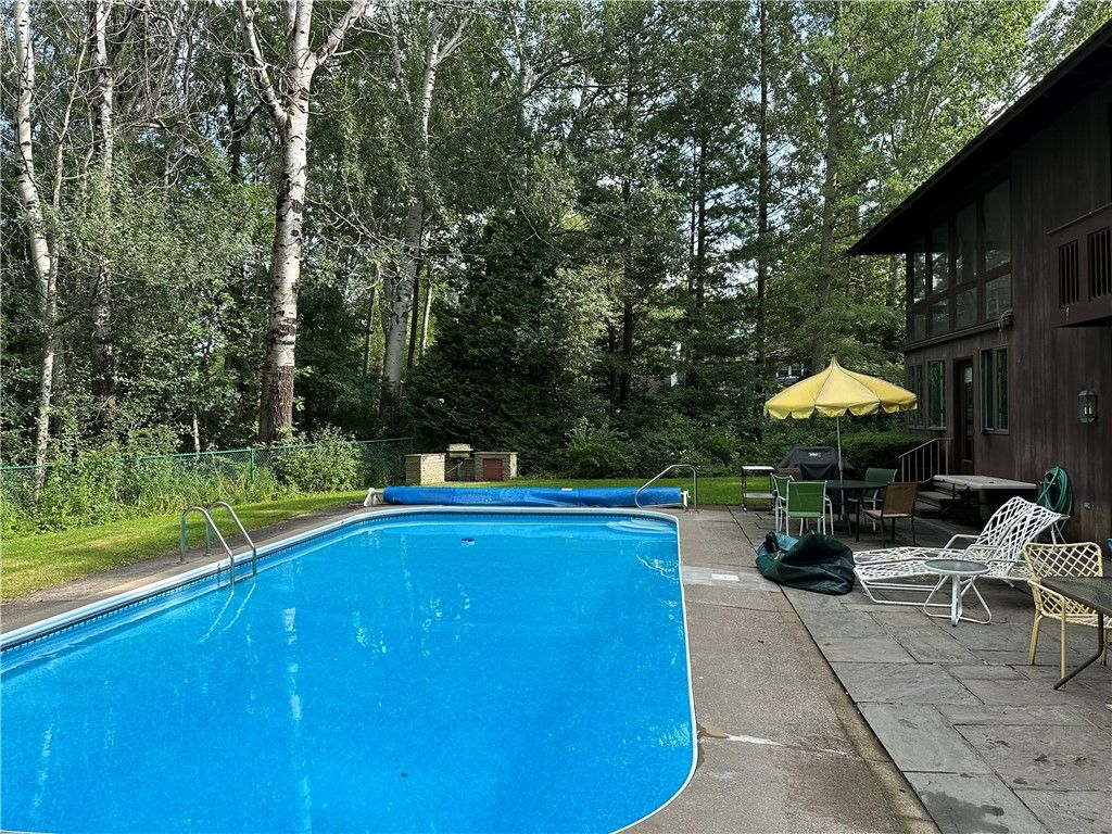 This exceptional contemporary redwood sided home offers over 3,000 square feet of thoughtfully designed living space, set on a private and beautifully manicured 1.1-acre lot. A dramatic large foyer welcomes you into an open and expansive living room with wood burning fireplace and dining room combination, complete with a wet bar and walls of glass sliding doors that lead directly to a private 18x36 inground pool area. The outdoor space is ideal for entertaining, featuring a built-in fire pit and gas cooking area, all surrounded by peaceful natural scenery. The spacious eat-in kitchen is equipped with Corian countertops, plenty of cabinets, a Jenn-Air grill, and flows seamlessly into the open seating den area. Hardwood floors and lovely views of the scenic backyard create a warm and inviting atmosphere. The first floor also includes a dedicated office, a convenient half bath, and direct access to the insulated two-car garage. The second level opens to a striking foyer balcony overlooking the main living space. The generous primary suite features a full ensuite bath with double vanity, walk-in shower, dressing room, cedar closet, and a private screened-in porch/sunroom"”perfect for relaxing in total privacy. Three additional bedrooms, all nicely sized with ample closet space, share a full bath with a jacuzzi tub and double vanity. All bedrooms are equipped with individual air conditioning units for personalized comfort. The finished lower level offers an abundance of additional living and storage space, including a large recreation room ideal for games and lounging, a walk-in pantry, laundry room, dedicated ping pong room, and extensive storage areas. Built and lovingly maintained by the same family since 1970, this home reflects 56 years of pride of ownership. With its nicely manicured grounds, private pool setting, and timeless design, this property truly has it all and offers a rare opportunity to own a well-cared-for home in a serene and picturesque setting.