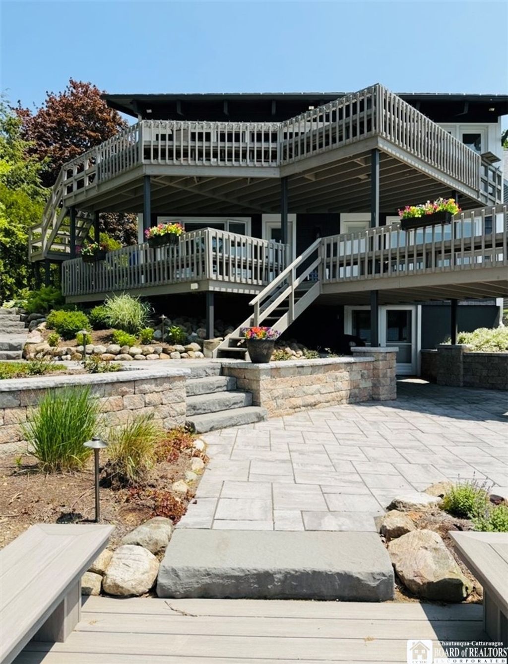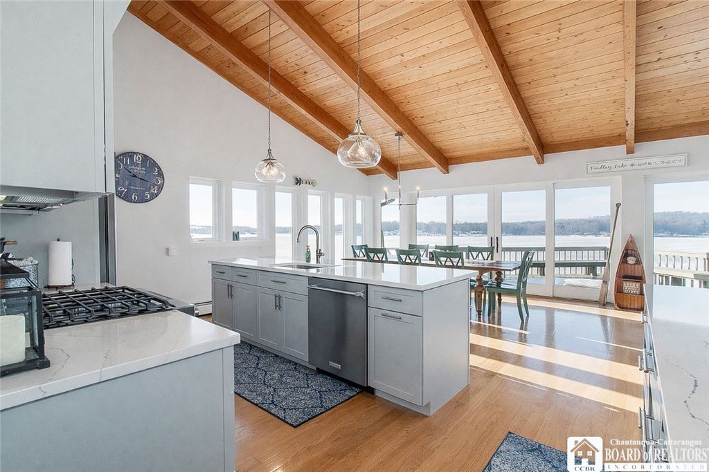 Commanding panoramic, unobstructed lake views, this distinguished waterfront residence offers a rare opportunity to own a refined retreat where architecture, setting, and lifestyle converge. The home features five bedrooms and four-and-a-half baths, thoughtfully designed to maximize light, views, and effortless elegance. Two luxurious primary suites serve as private sanctuaries, each with serene water views and beautifully appointed en-suite baths"”ideal for gracious hosting or multigenerational living. Expansive, light-filled interiors frame the lake through walls of glass, creating a seamless dialogue between indoors and out. The exterior grounds are equally compelling, featuring professionally designed, low-maintenance landscaping and elegant hardscape that enhance the property's natural beauty while allowing for lock-and-leave ease. With 80 feet of direct lake frontage and a private dock, the estate offers immediate access to the water, whether for boating, swimming, or quiet mornings at the shoreline. Outdoor spaces are curated for both understated entertaining and peaceful retreat"”where sunrise reflections and sunset horizons define daily living. Rare in its combination of panoramic views, dockable frontage, dual primary suites, and effortless maintenance, this exceptional property represents a timeless lakefront legacy.