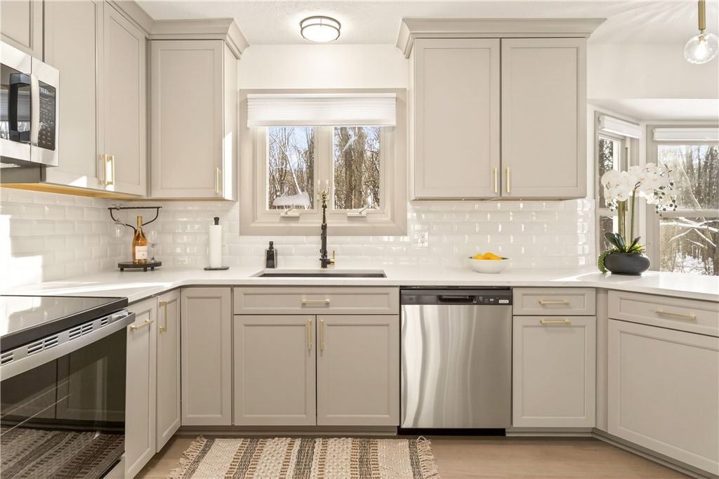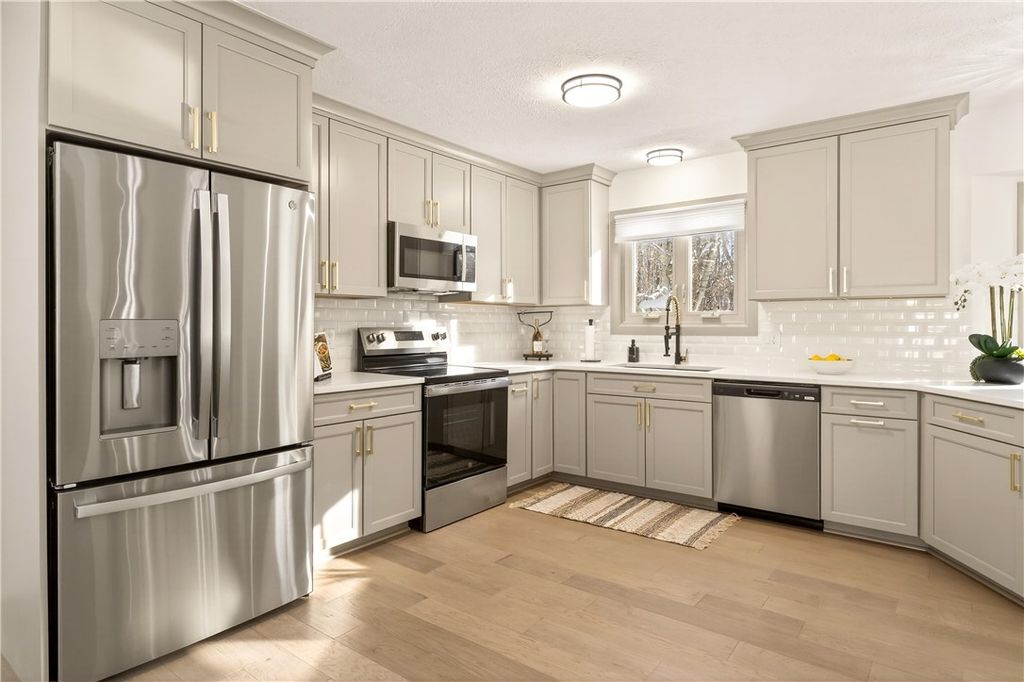 Be prepared to be wowed by this completely remodeled showstopper, offering the perfect blend of luxury, privacy, and convenience. Ideally located near town amenities yet tucked away on a beautiful private drive, this stunning residence sits on a picturesque, wooded 0.84 acre lot. Double door entry welcomes you into an expansive open concept living and dining area, thoughtfully designed for both everyday comfort and elegant entertaining. The heart of the home is the oversized, all new kitchen, featuring sleek cabinetry, premium finishes, and stainless steel appliances, all overlooking a spacious family room anchored by a stone gas fireplace. Just off the garage entry is your home office that provides the ideal space for remote work or an in home business. The first floor is completed by a convenient laundry room and stylish powder room. Retreat to the primary suite through French doors, where you'll find a luxurious en-suite bath designed to impress. The finished basement offers exceptional bonus space perfect for a home theater, game room, or additional entertaining area. Enjoy peace of mind with updated utilities and a hard-wired generator for worry free living. Outdoor living is just as impressive, with a large deck overlooking your private, wooded backyard ideal for relaxing or hosting guests. This home has been fully transformed with a new kitchen, bathrooms, lighting, flooring, carpeting, fresh paint, and countless upgrades throughout. A rare opportunity to own a truly turn key, high end home that must be seen to be fully appreciated. Delayed Negotiations until Monday 2/9 at Noon. Open House Saturday 2/7 & Sunday 2/8 12:00-3:00pm.