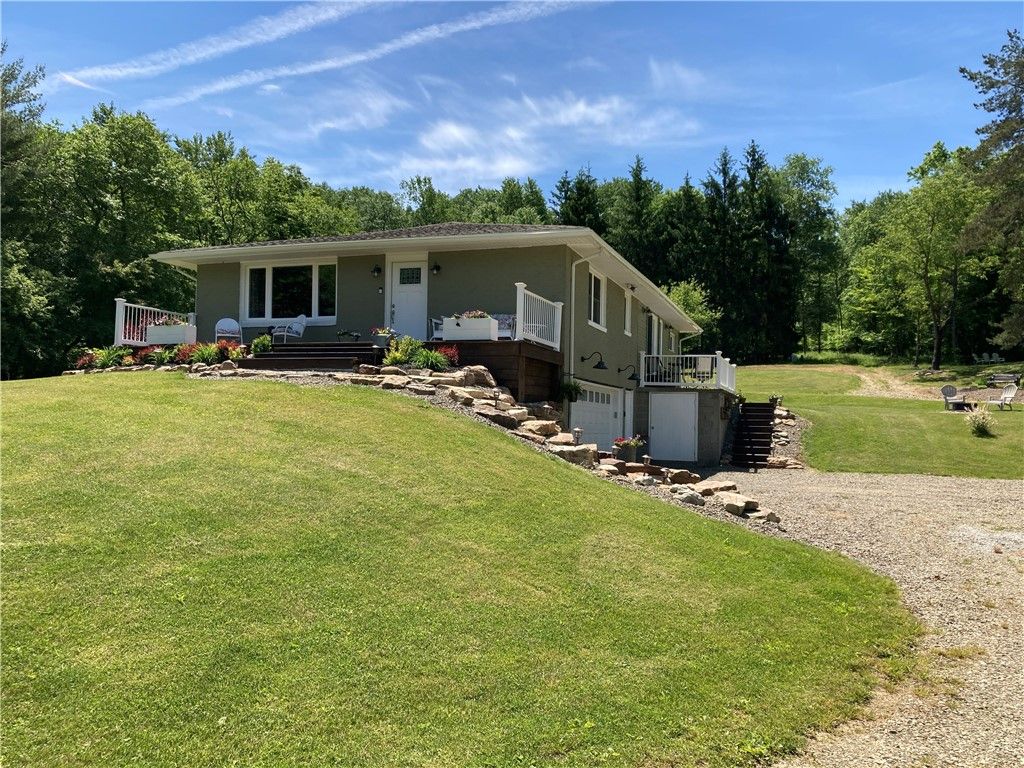 We are pleased to present a true Cattaraugus County country living gem, offering privacy, recreation, and a move-in-ready home set in a peaceful rural setting. Comprised of two parcels, this expansive property provides exceptional outdoor opportunity right out your back door, making it especially attractive to hunters, nature lovers, and those seeking a quieter lifestyle. A long, private driveway leads to the home, which is elevated on a hillside and complemented by an even higher pond offering scenic northern views. The wooded acreage consists primarily of mixed hardwoods and hemlock, with a food plot already in place, ideal for deer hunting and wildlife observation. The 1,740 sq ft home was originally built in 1971 and completely reconstructed in 2020, creating a worry-free primary residence or country retreat. The 2-bedroom, 2-bathroom layout features LVP and carpet flooring, granite countertops, stainless steel appliances, elevated ceilings, recessed and fan lighting throughout. Improvements include a new well, septic system, windows, roof, Trex deck, on-demand water heater, LP forced-air furnace, central A/C, and spray foam insulation, offering comfort and efficiency year-round. Enhanced by covered porches and decks, with additional storage provided by a utility shed. With approximately 503 feet of road frontage, a large and deep parcel, and close proximity to the Town of Frewsburg, this property balances seclusion with convenience. Located just minutes from the Allegany Reservoir and the Onoville Marina, boating and fishing are easily accessible. An additional 4,227 acres of South valley State Forest is less an a quarter mile from you door. Whether you're looking to relocate, work remotely, enjoy hunting and recreation, or simply relax in the quiet hills of Cattaraugus County, this property delivers the complete country lifestyle experience. Timber and GMO rights convey, Pond, 3.24 miles to Allegany Reservoir, 7.4 miles to Frewsburg, Disclaimer: Map illustrations are for reference purposes only and not the representations of the Listing agent or brokerage. Parties should be advised to confirm Illustrations with licensed professional service providers.