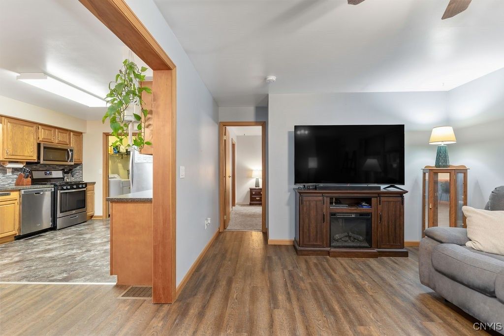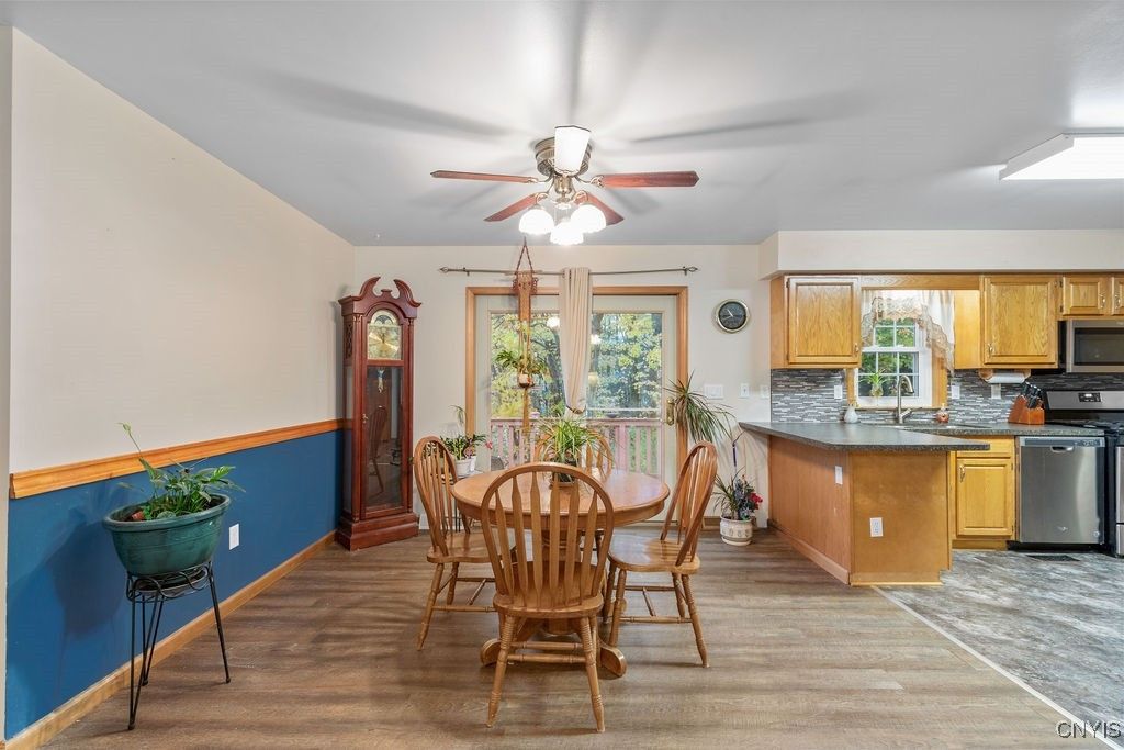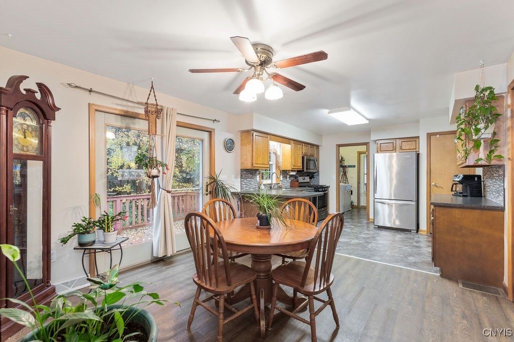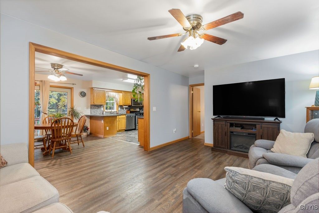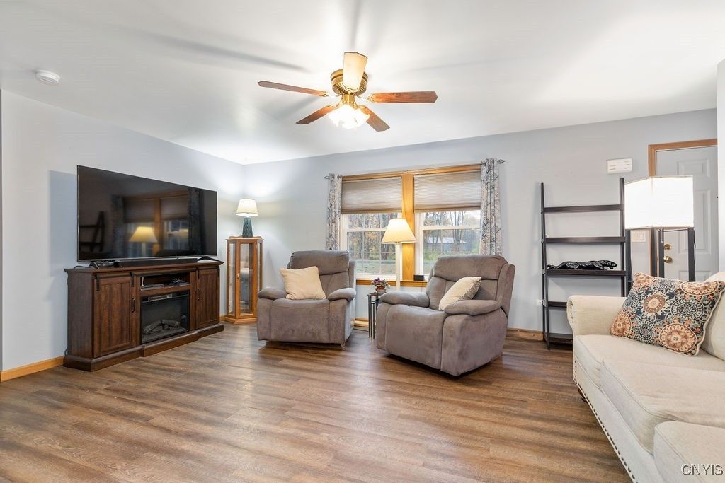 If you are looking for a ranch with the possibility of a walkout finished basement, then this is your home! 3 bedroom 2 full bath home on 1.65 acres. So many great updates! Flooring, paint, new windows in 2021, updated both full bathrooms in 2021, remodeled kitchen in 2021, Furnace 2018 (as per previous owners), and more. Kitchen has been nicely remodeled with updated appliances as well as a breakfast bar with eating area. Plenty of counter space and nice cupboard space with a sizeable pantry. Eat in area with sliding glass doors leading out to your beautiful deck overlooking your large yard with wooded area. Primary bedroom has lovely windows and a full primary bath. Two more good sized bedrooms with another full bath, Spacious living room, with great natural light throughout. This is such a move in ready home! Enjoy one floor living with first floor laundry or finish the amazing full walkout basement for a whole extra floor of living space. Extra-large with tall ceilings, this walkout basement could be great for a family room, den/office/rec room, possible additional bedroom, or whatever you desire. All of this and central air conditioning as well! Step outside to enjoy so much more to love about this home! New large 3 stall garage built in 2021 with electric service, as well a large outbuilding to store all of your lawn equipment. tools, recreation vehicles. etc... Current owners had public water hooked up. This home is located close to Route 81 and Route 11 for easy access to shopping, dining, recreation, banks, coffee shops, music in the park, and more. Located close to snowmobile trails (great for walking and dog walking as well), Oneida lake for all of you who love fishing and boating, as well as just a short drive to Lake Ontario, Salmon River Falls, apple orchards, a local winery, and the Salmon River! Drive in another direction and go to the city for entertainment, SU sports and more amazing dining and shopping! This home is truly the best of both worlds...feels like country but close to so much!