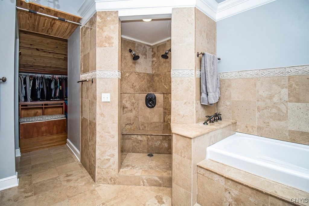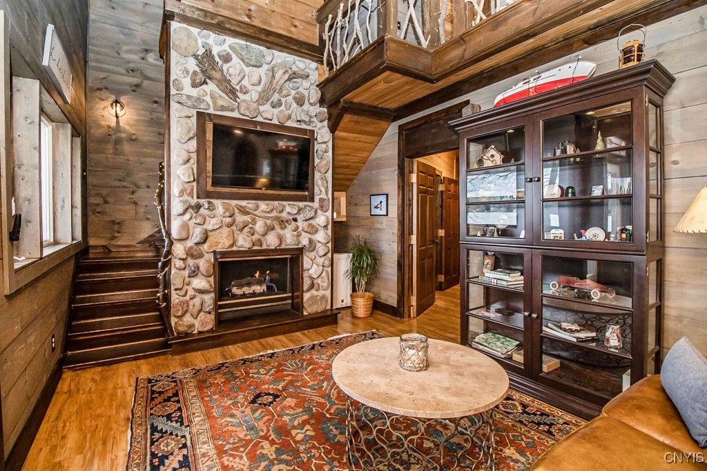 Set on just under 3 private acres with 200 feet of pristine shoreline, this exceptional LAKEFRONT ESTATE offers 7,848 sq. ft. of living space designed for flexibility, comfort, and unforgettable views. The property includes a main residence of just over 5,000 sq. ft. and a separate 2700-sq. ft. living space known as *The Lodge*, connected by a 2nd floor breezeway or accessible through its own main-level entrance"”ideal for extended family, guests, or income potential. The main house features an open and inviting floor plan centered around a light-filled great rm w/a dramatic picture window overlooking the lake, a wood-burning fireplace and a formal dining area. The great room flows into a spacious eat-in kitchen w/abundant cabinetry, a large island, dual breakfast bars, and a gas fireplace in the dining area. This level also offers a bedrm and a full bath. A back staircase leads from the kitchen to a loft bedrm and office area, while the front staircase brings you to a stunning primary suite w/sweeping lake view, a sitting area, a spa-like ensuite bath, and a walk-in closet w/custom built-ins. The walkout lower level opens directly to the lake and includes a comfortable family rm w/a 3rd fireplace, an additional bedrm, and full bath, perfect for relaxed lakefront living. The Lodge delivers a warm Adirondack ambiance w/a soaring 2-story gas fireplace anchoring the open kitchen, dining, and family rm. A full bath is located on the main level, while a striking timber staircase leads to 2 bedrooms and 2 baths above. A 3rd-floor space offers additional sleeping or recreational flexibility. Outdoors, the property truly shines w/expansive lakeside decks, manicured lawns gently sloping to the shoreline, a 2-story boathouse, and multiple docks"”providing everything needed to enjoy life on Cazenovia Lake. Wake to the sunrise over the water, spend the day boating, and end the evening by the fire pit, toasting marshmallows. Also included is a .96-acre approved building lot on the west side of the property, NOT part of the total 2.43 acres, offering additional opportunity for future expansion. SHOWINGS BEGIN 1/2/2026.